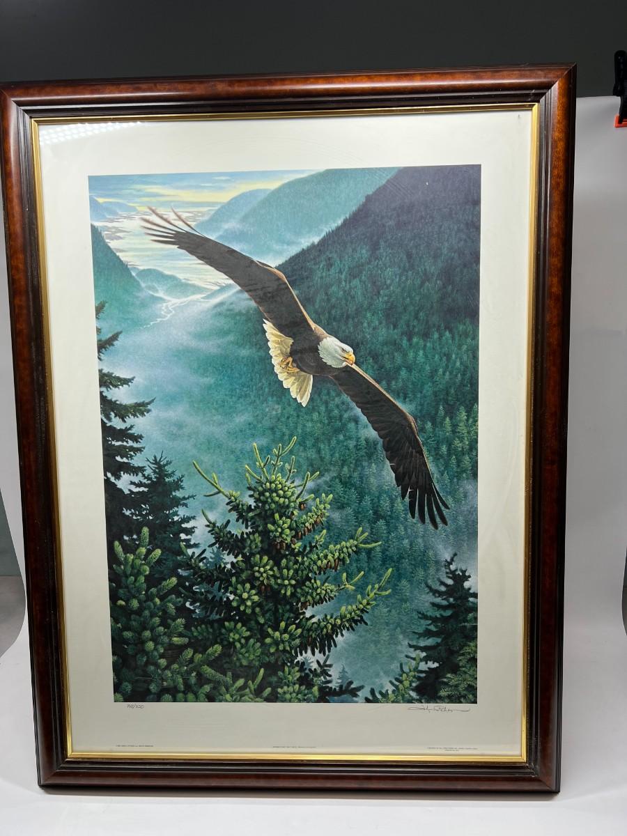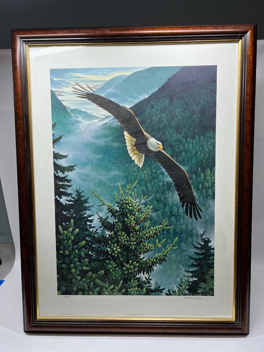 Large Vintage 1982 John C. Pitcher Morning Flight Bald Eagle in Flight Signed & Numbered