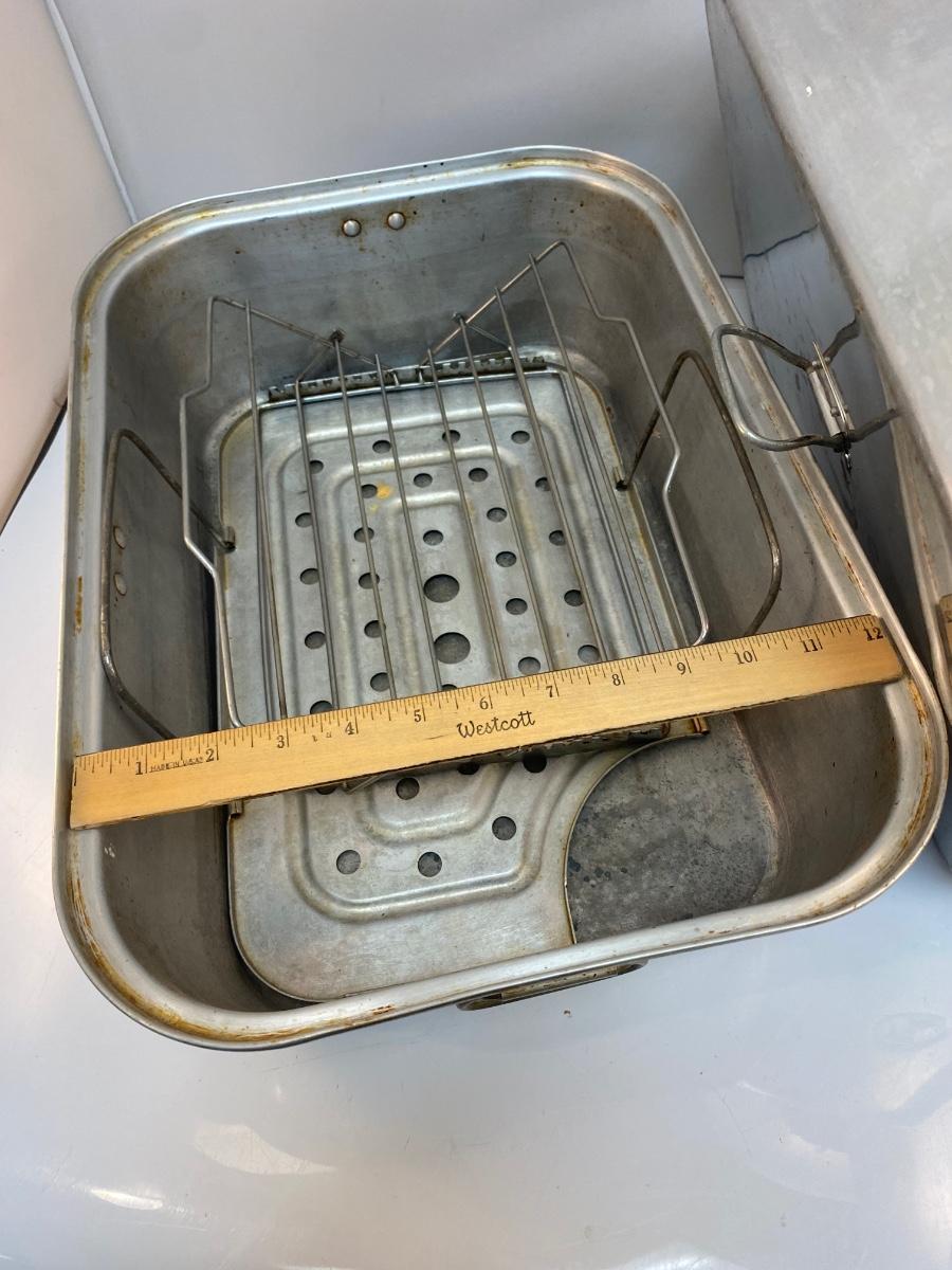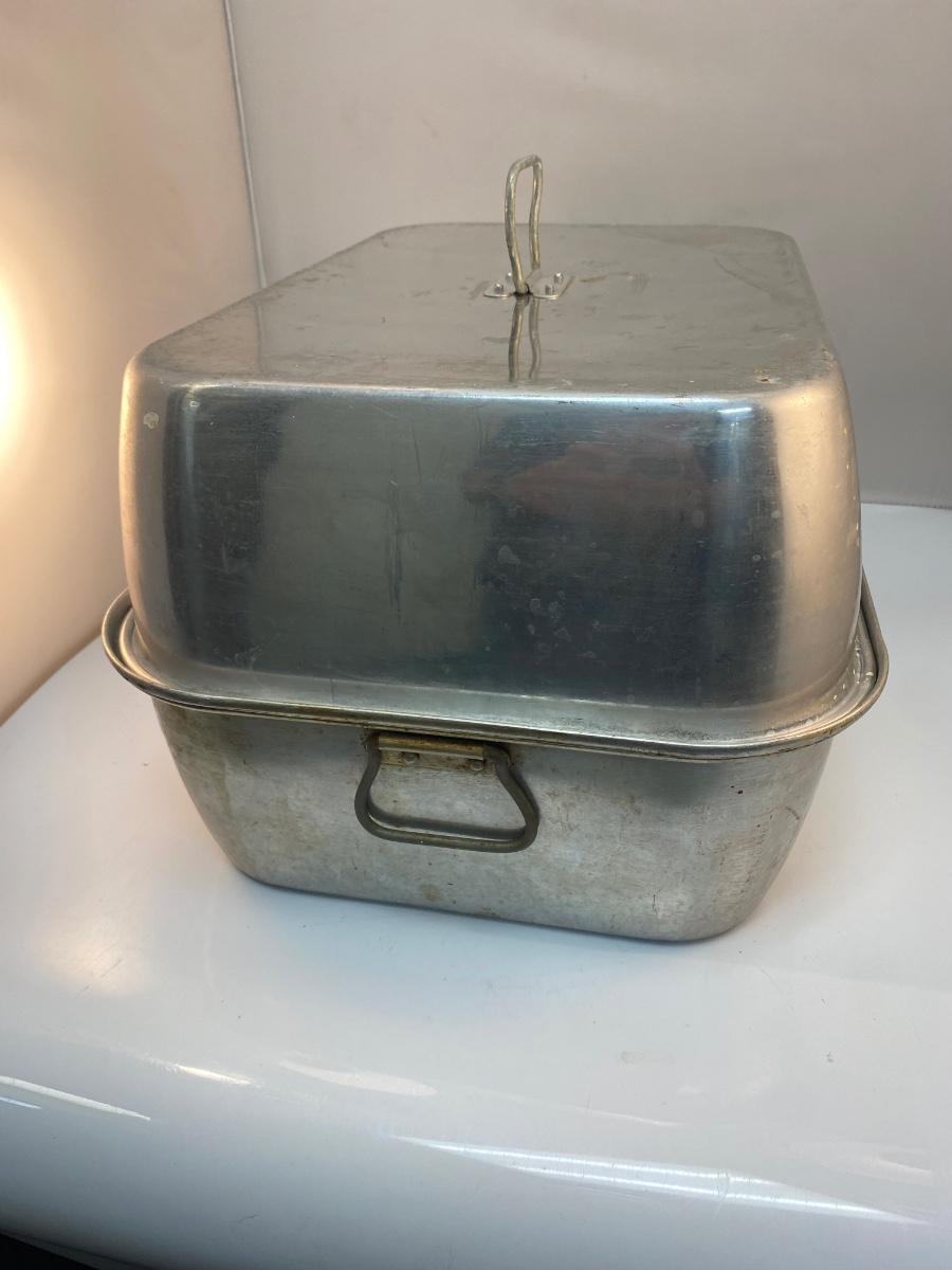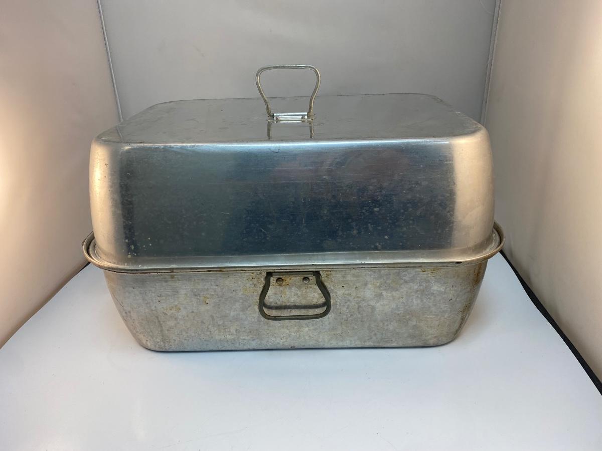 Large Vintage Aluminum Roasting Pan with Racks & Lid