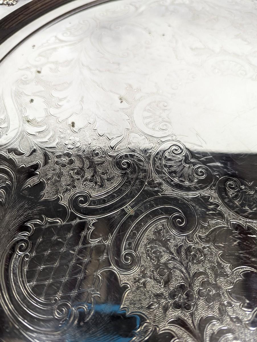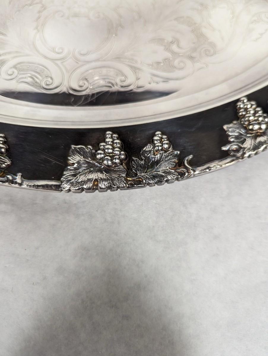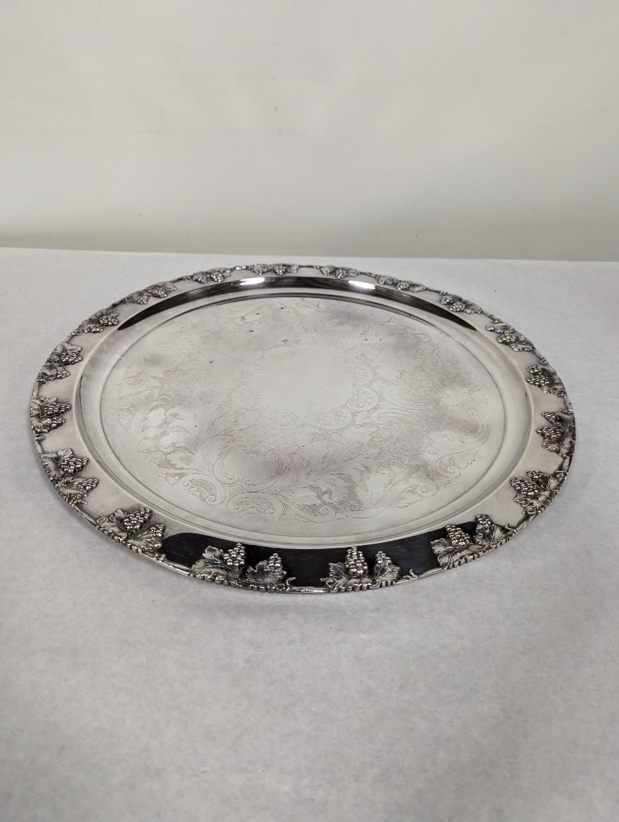 Large Vintage American Crescent Silverware Silverplate Grapevine Round Tray