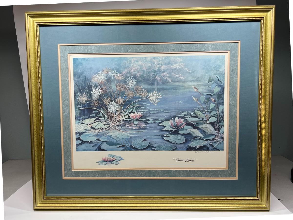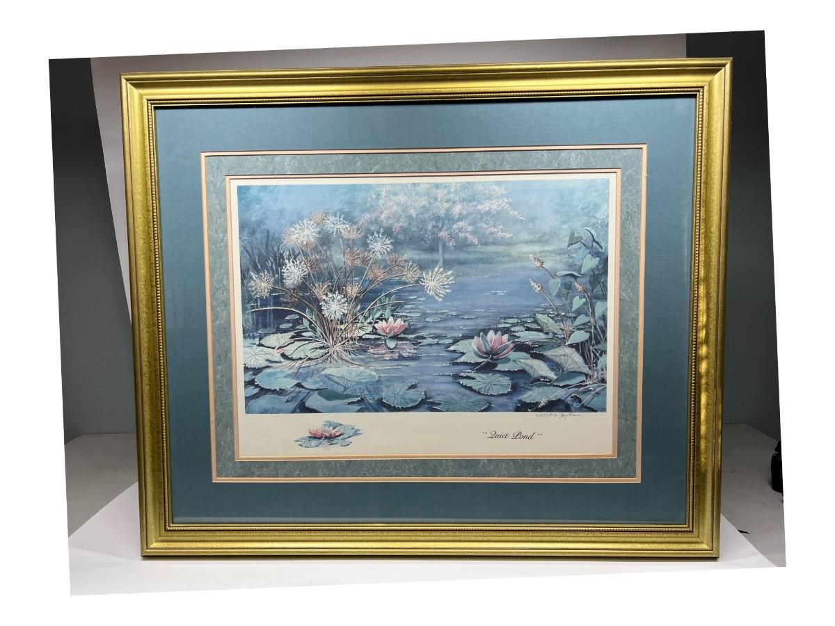 Large Vintage Art Print Quiet Pond by Joy Evans Signed and Numbered Framed Artwork