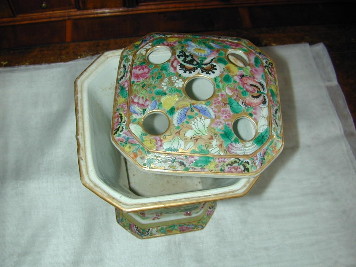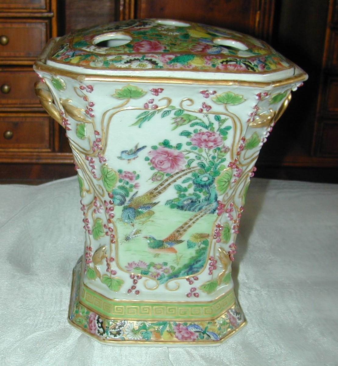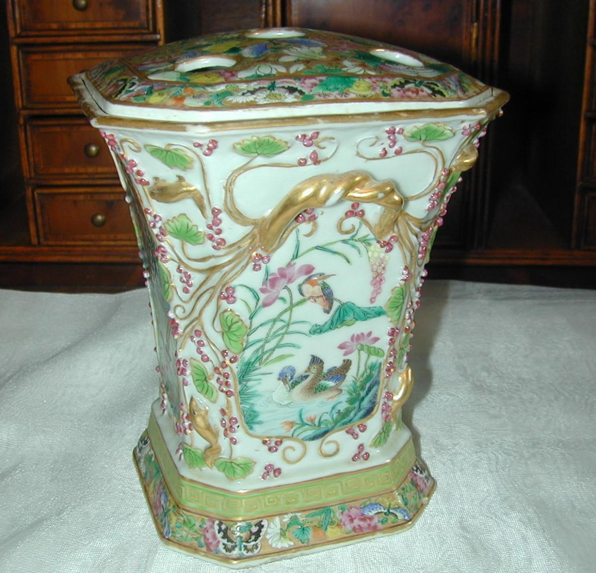 Large Vintage Asian Square Potpourri Jar - 8.5" Tall & 7" Square