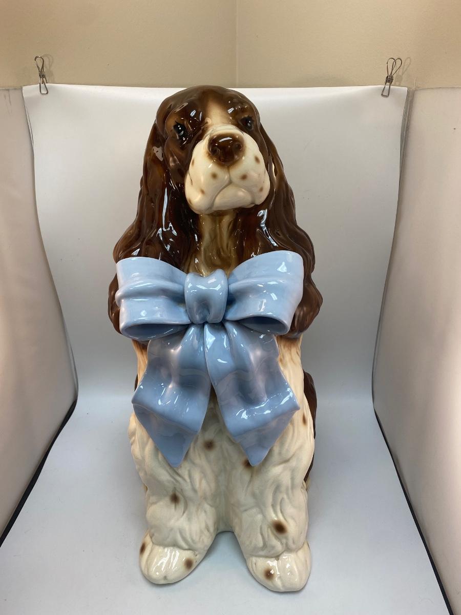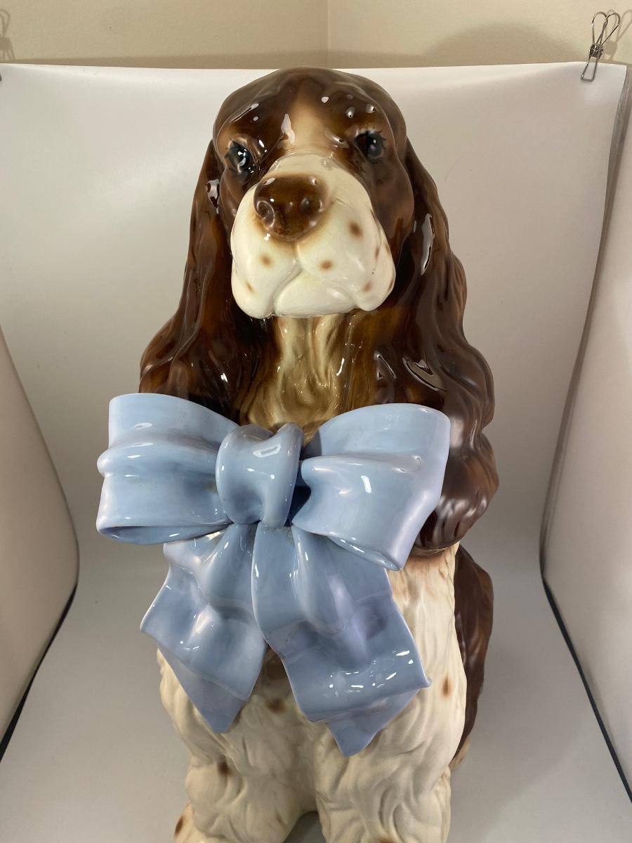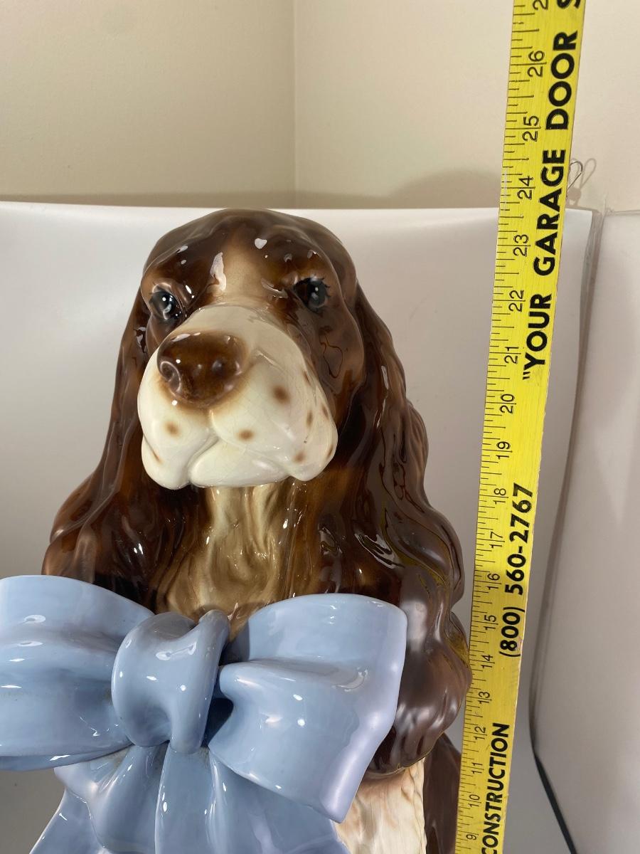 Large Rare Vintage BetLar Inc Life-sized Ceramic Springer Spaniel Dog Wearing Blue Bow Statue