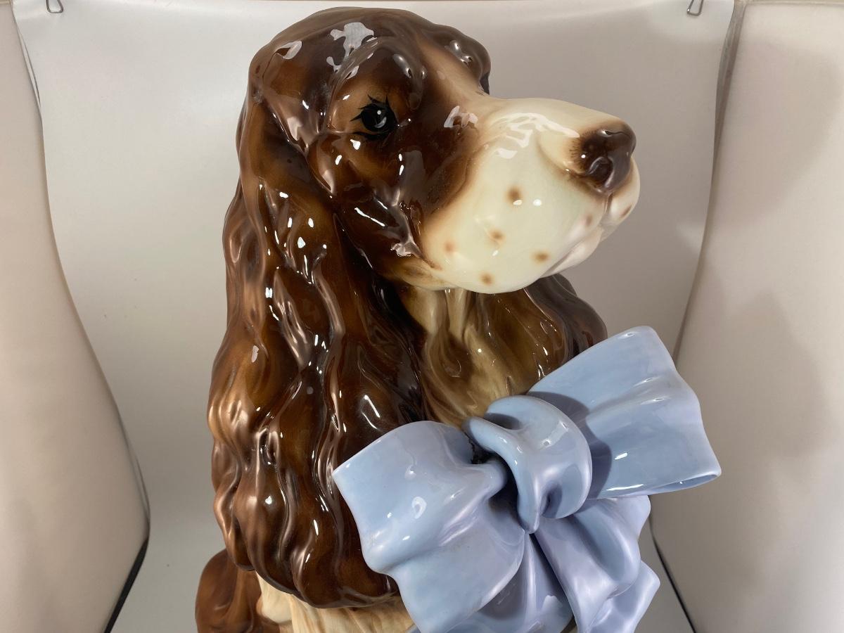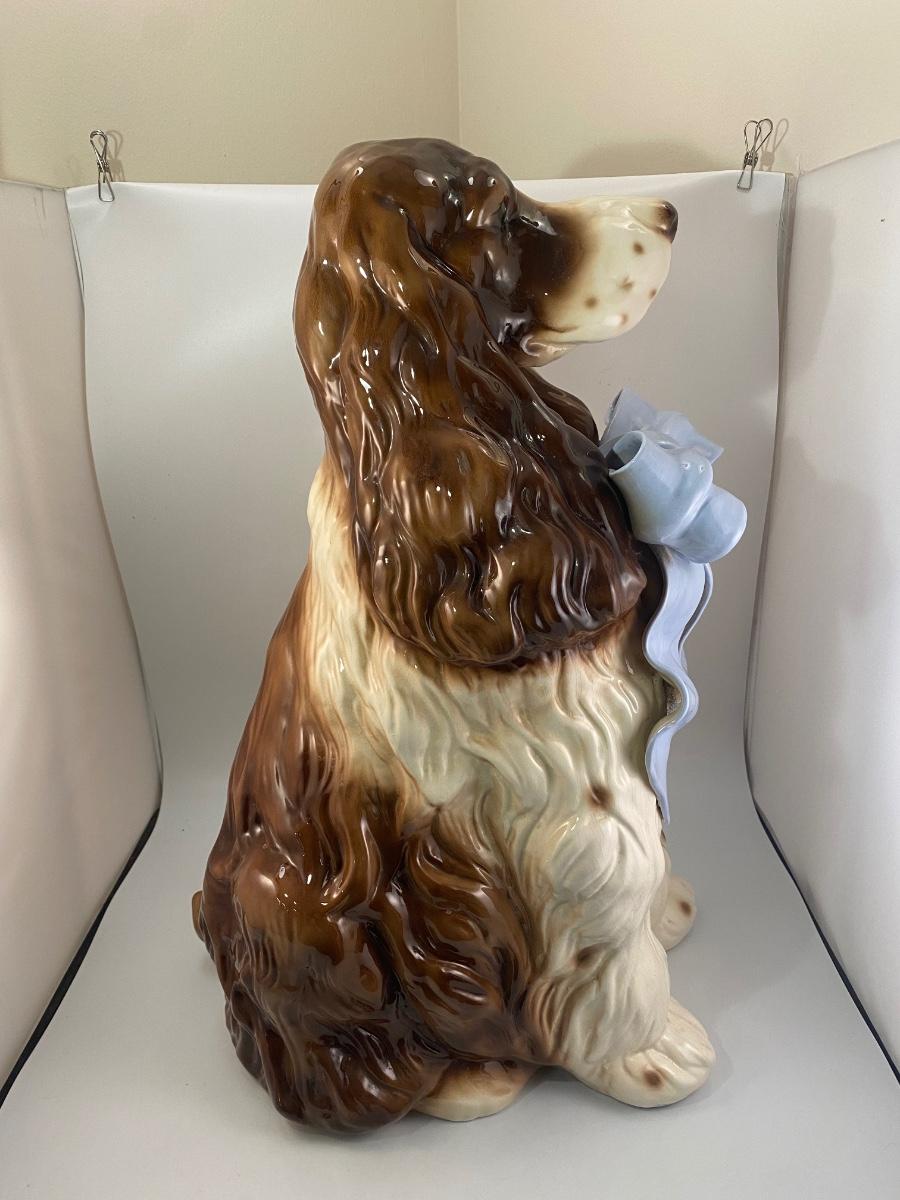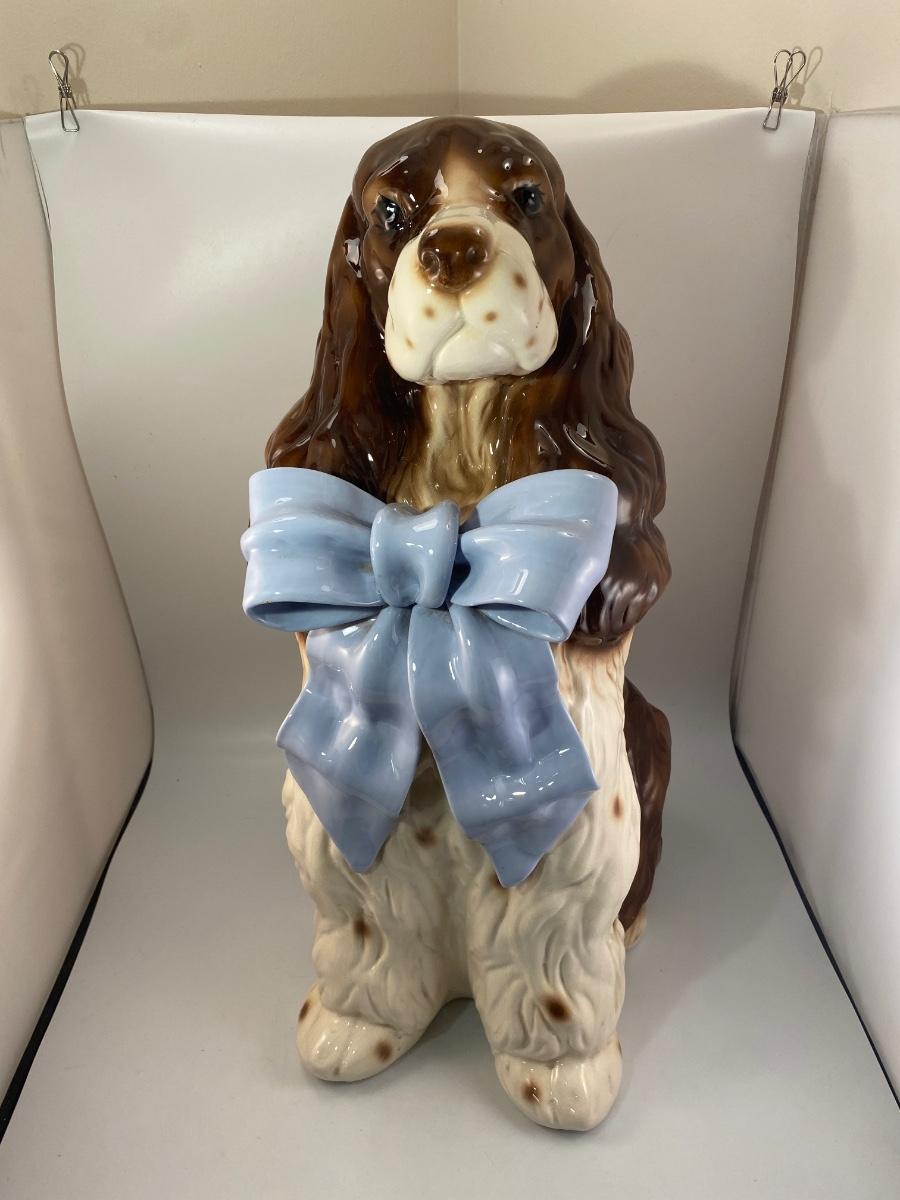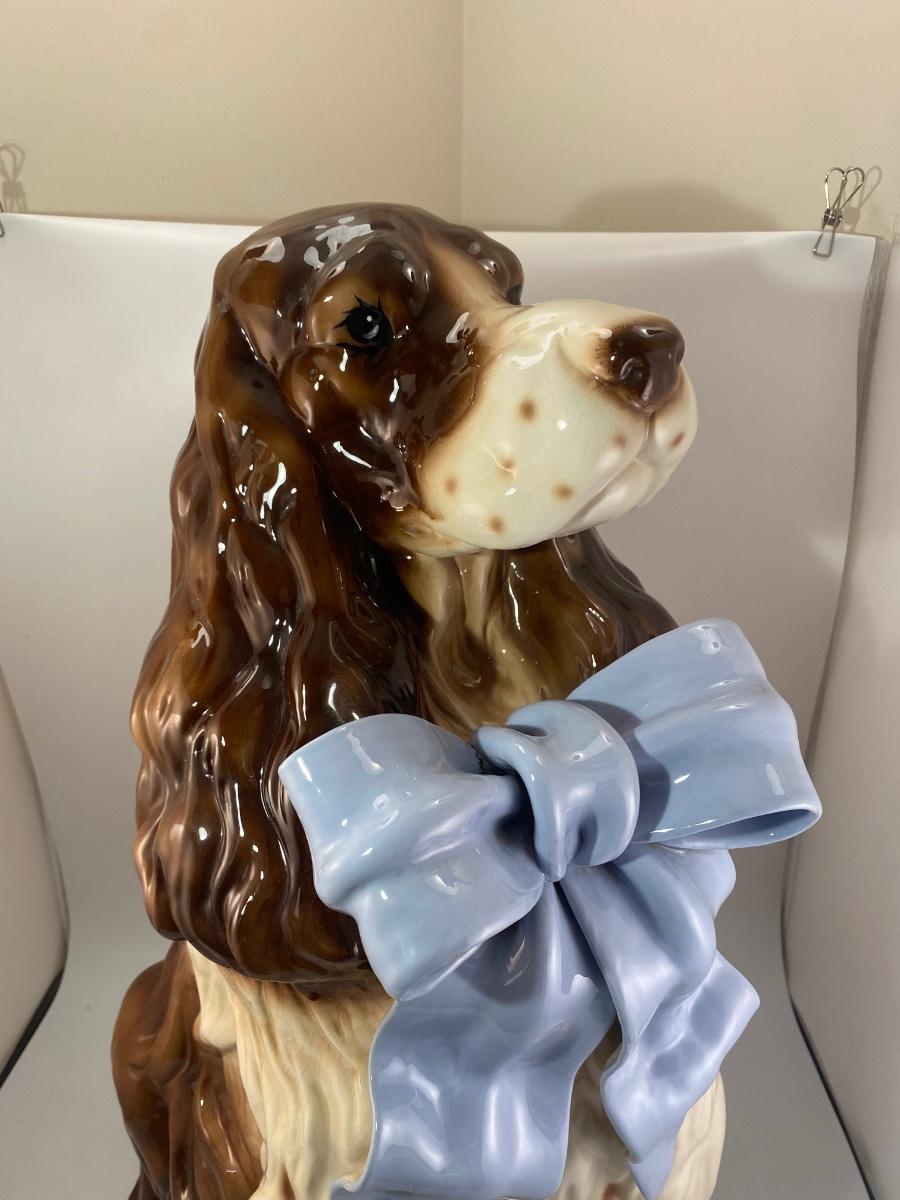 Large Rare Vintage BetLar Inc Life-sized Ceramic Springer Spaniel Dog Wearing Blue Bow Statue