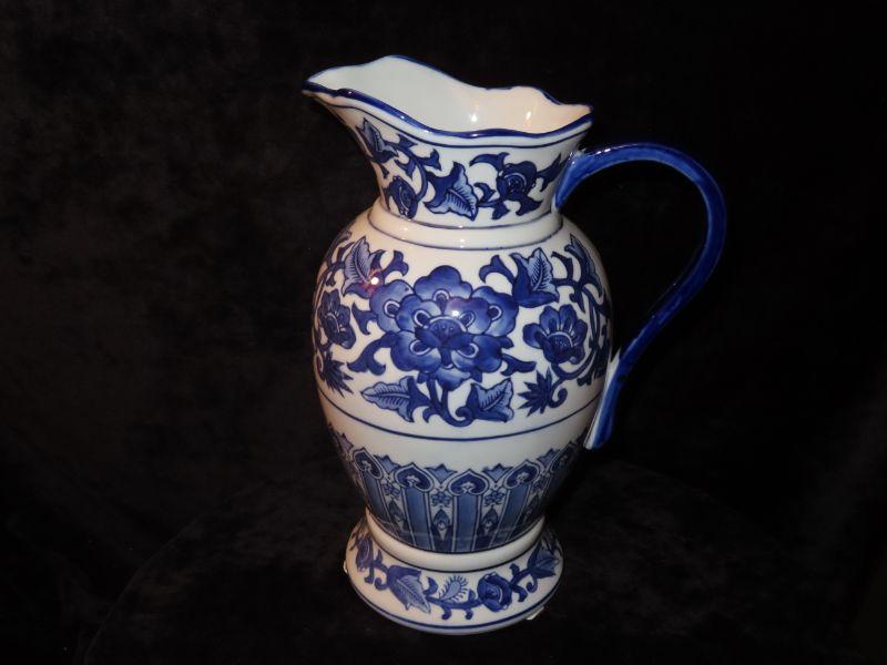 Large Vintage Blue and White Pitcher