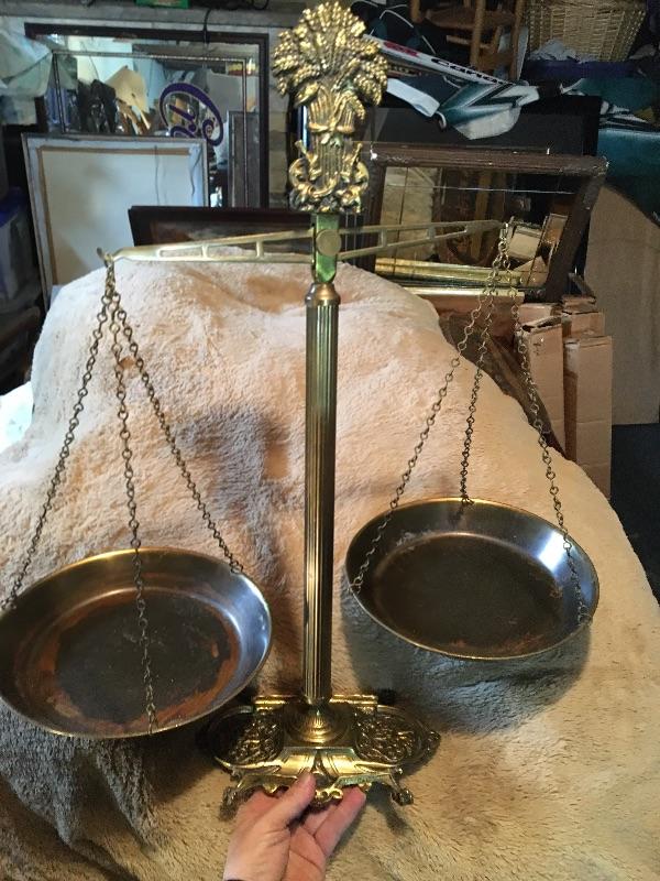 Large Vintage Brass 25” Store Display or Lawyer Scale. LOT 44