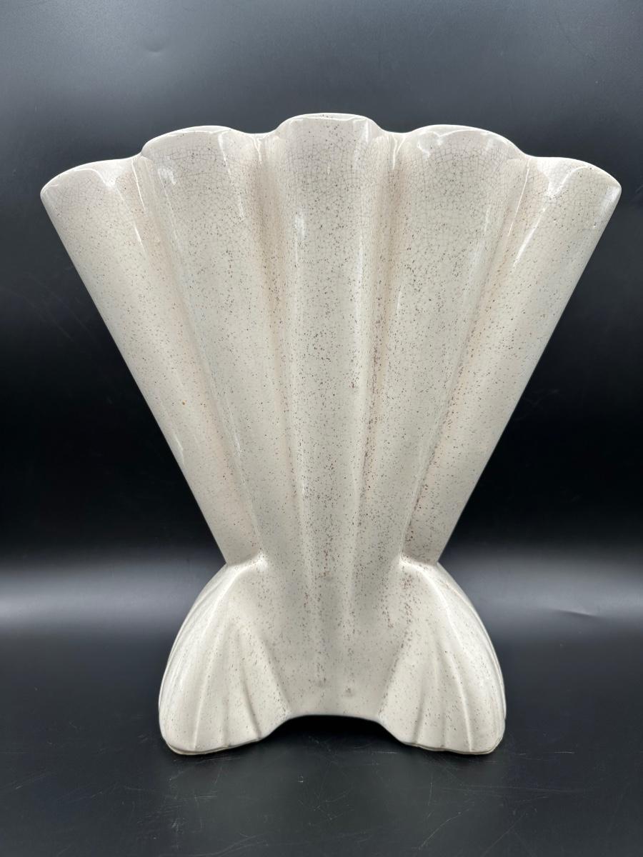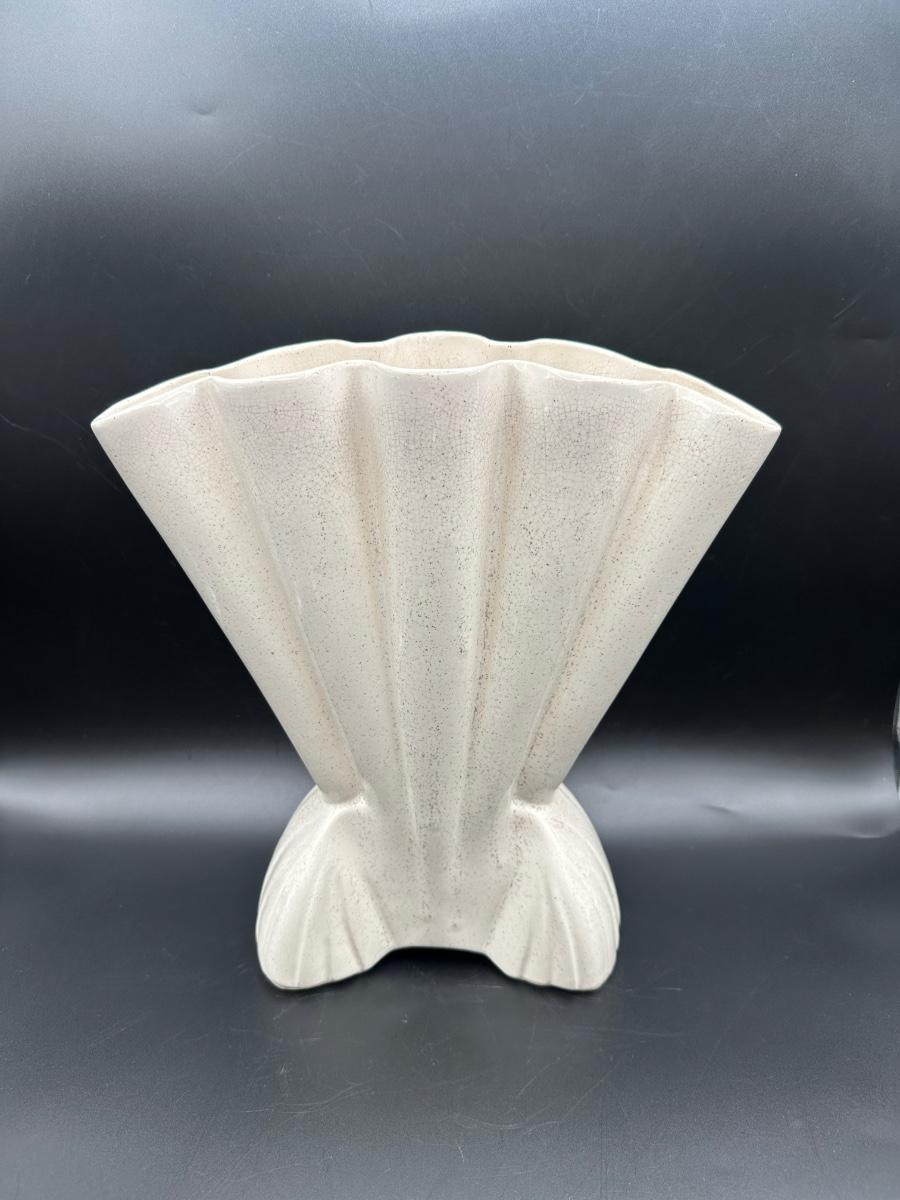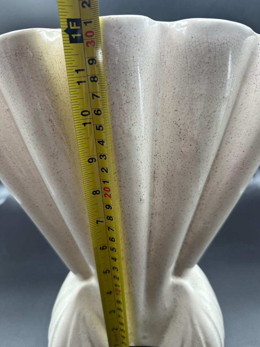 Large Vintage Brush Pottery Gladiola Fan Vase, ceramic.