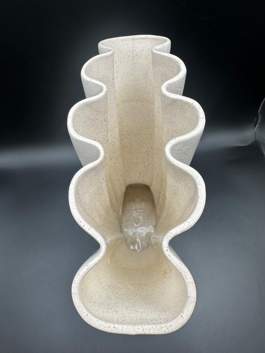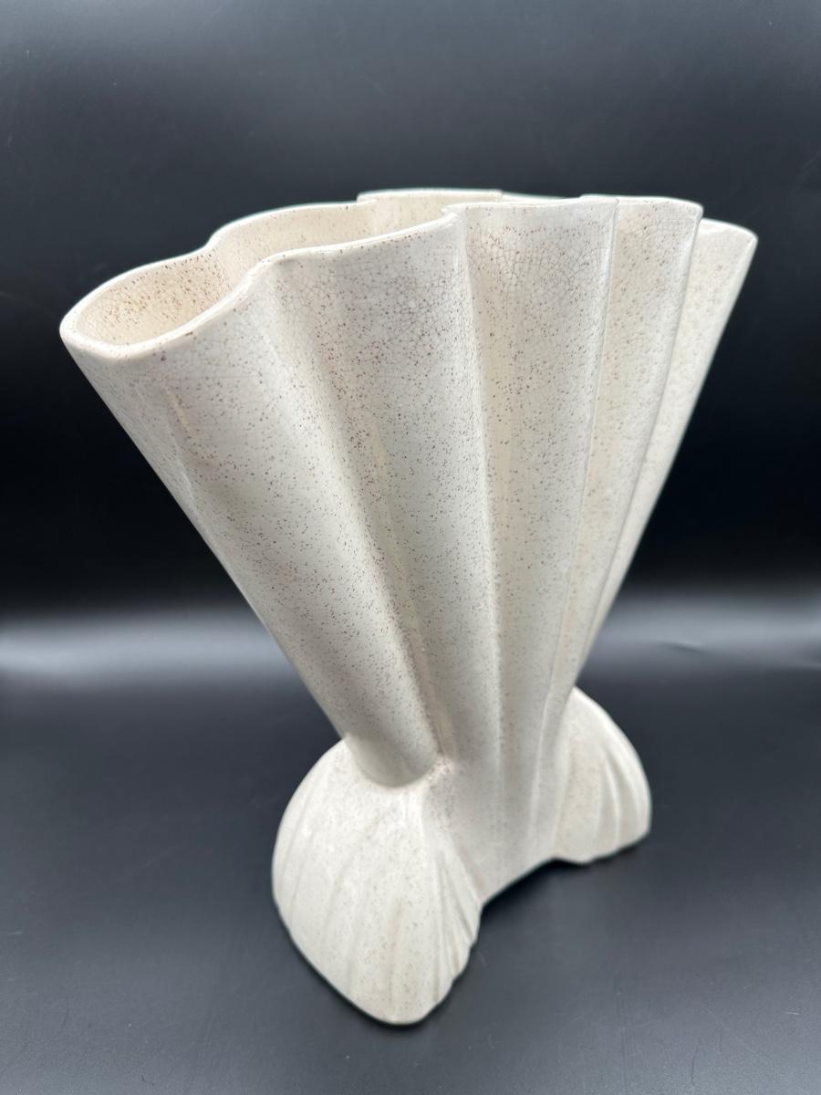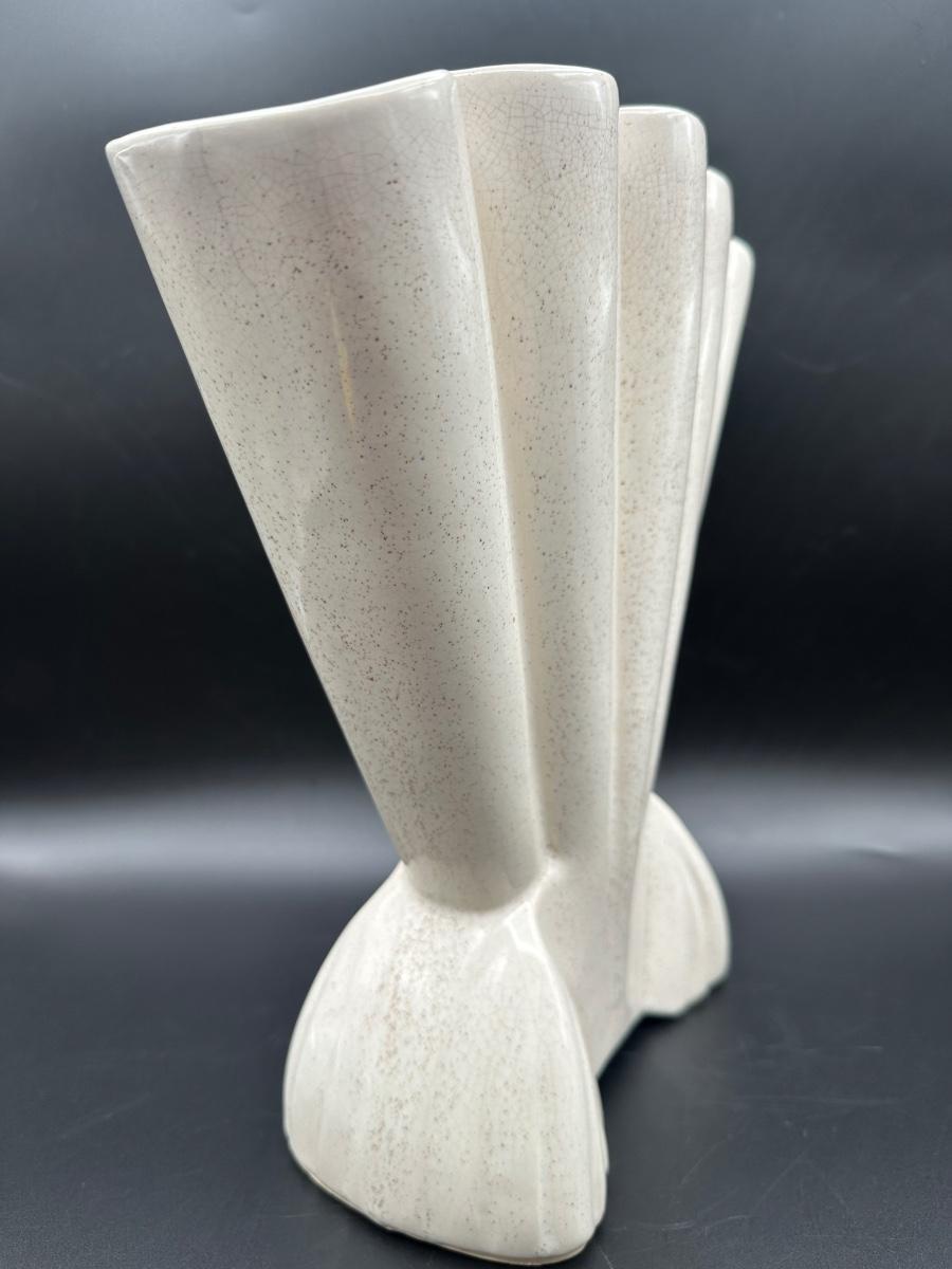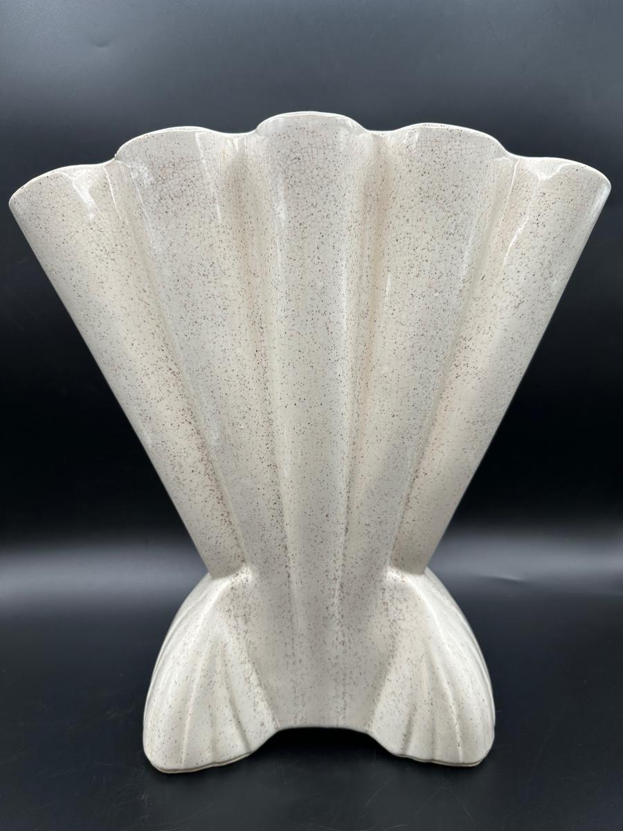 Large Vintage Brush Pottery Gladiola Fan Vase, ceramic.