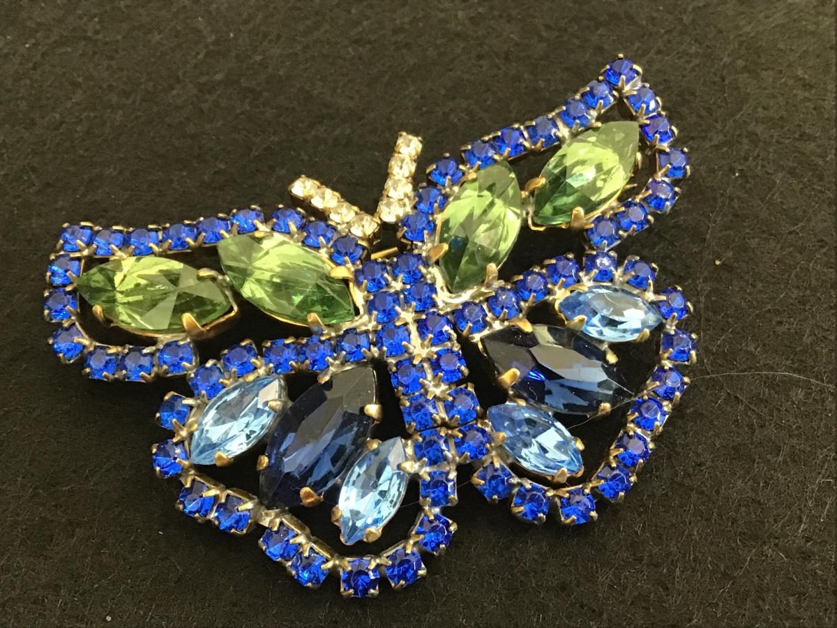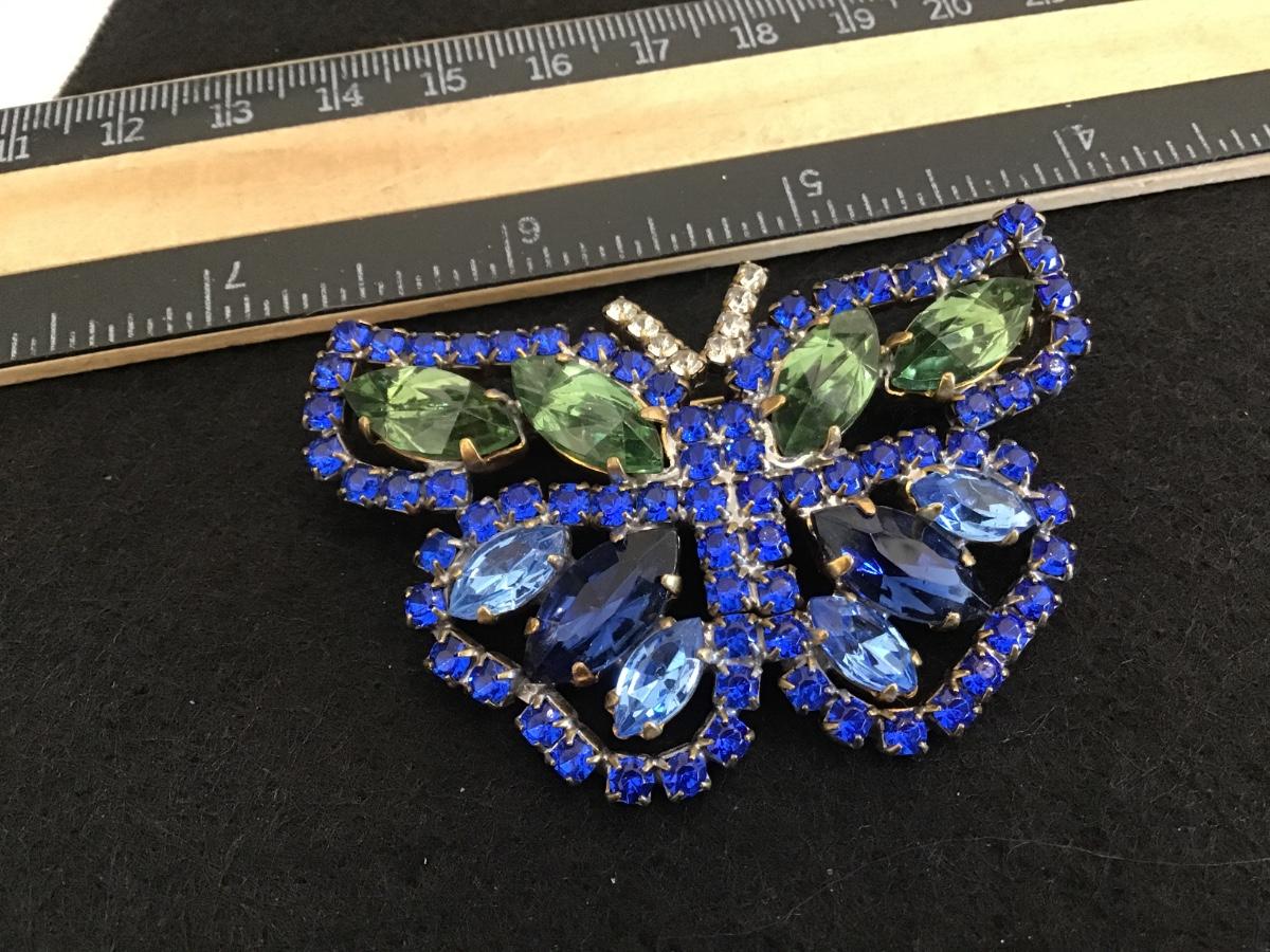 Large Vintage Butterfly Rhinestone Brooch