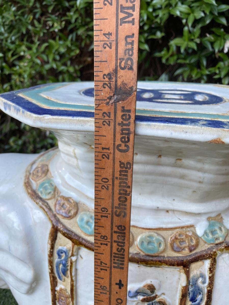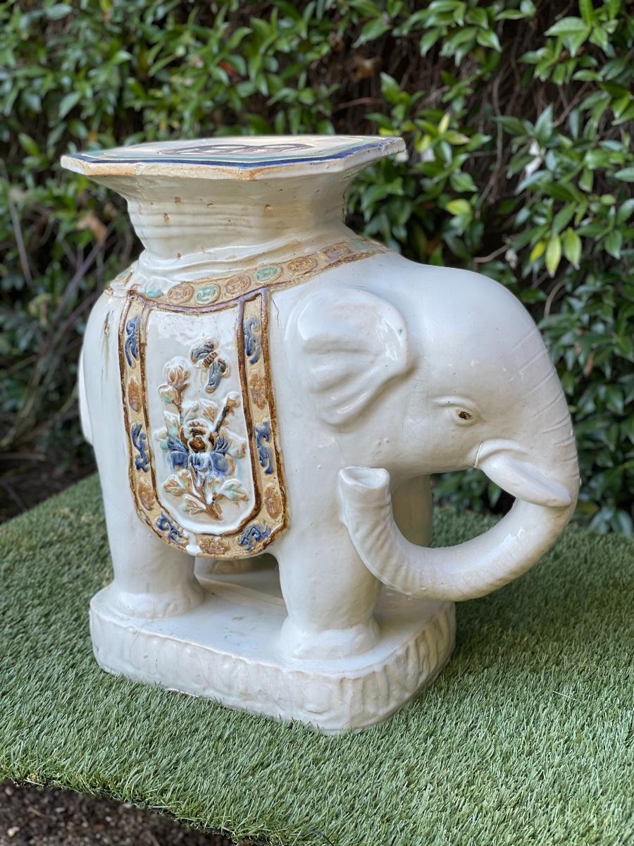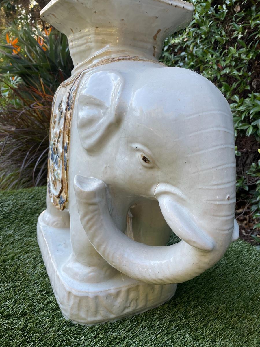LARGE VINTAGE CERAMIC ASIAN ELEPHANT CHINOISERIE PLANT STAND STOOL