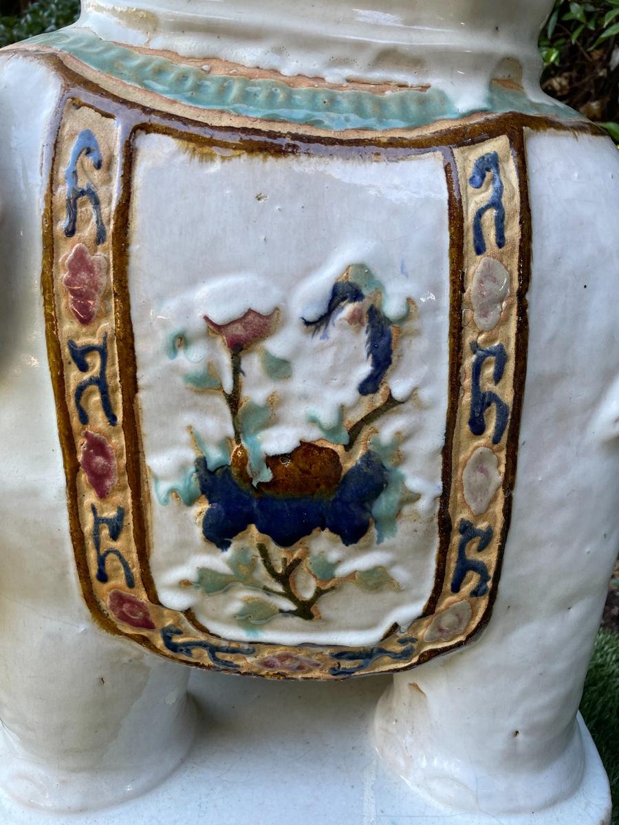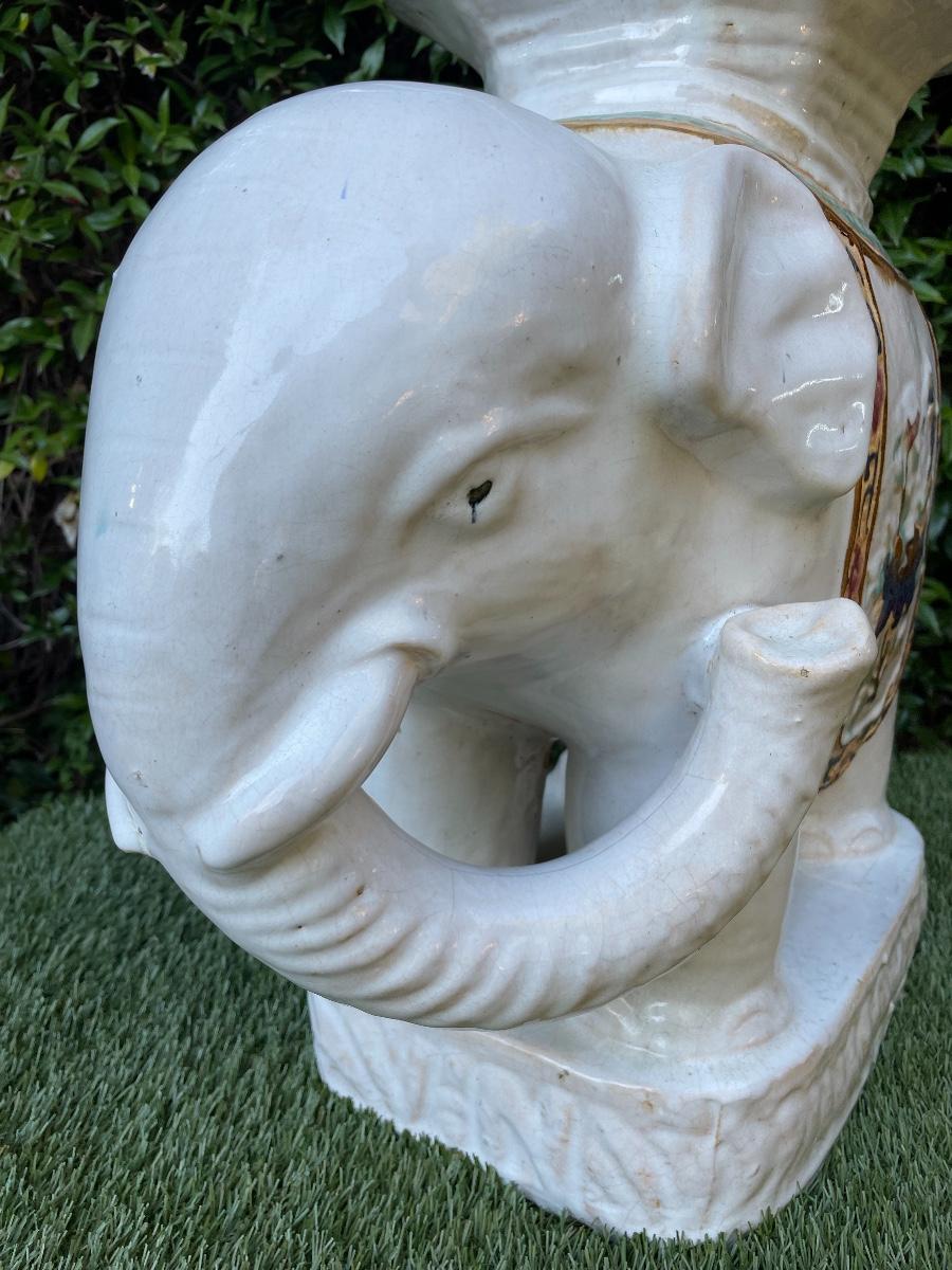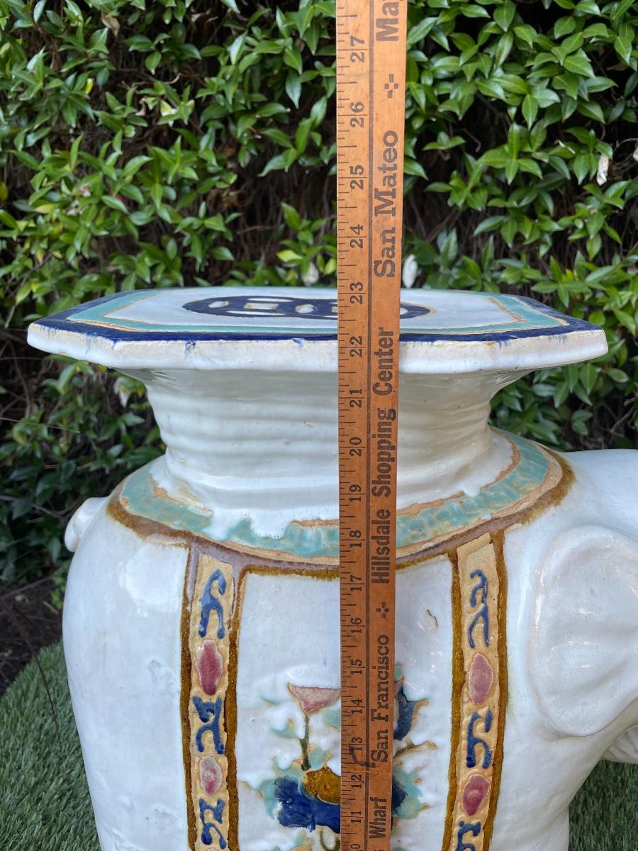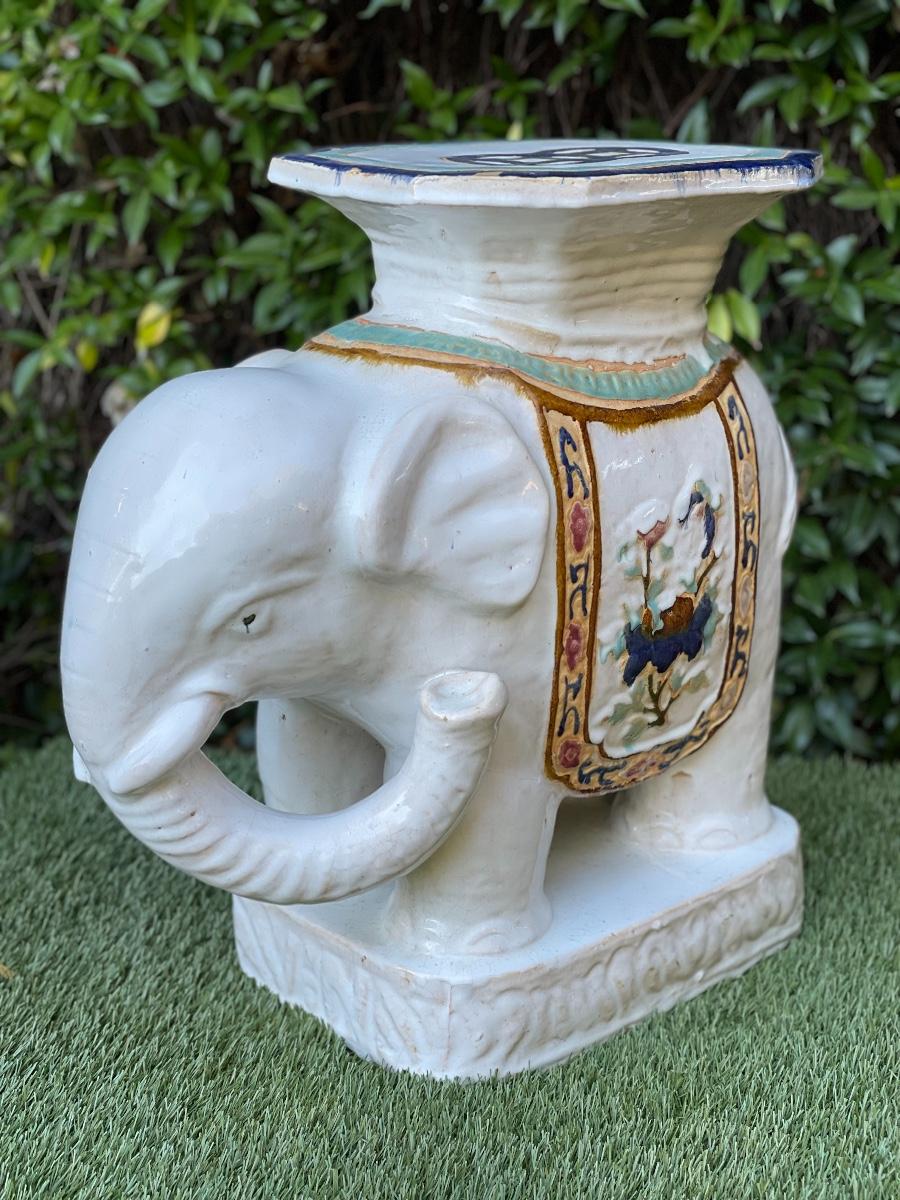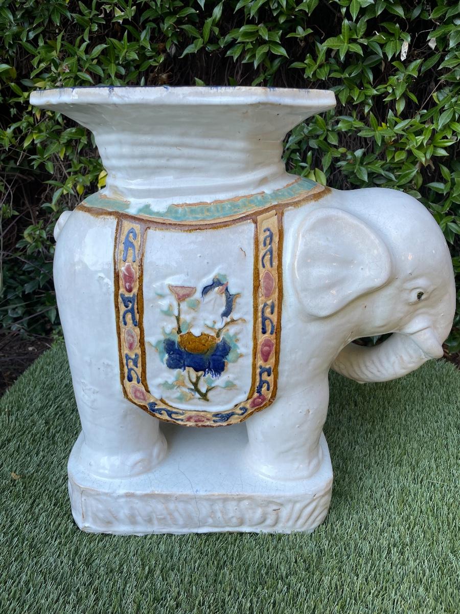 LARGE VINTAGE CERAMIC ASIAN ELEPHANT CHINOISERIE PLANT STAND STOOL