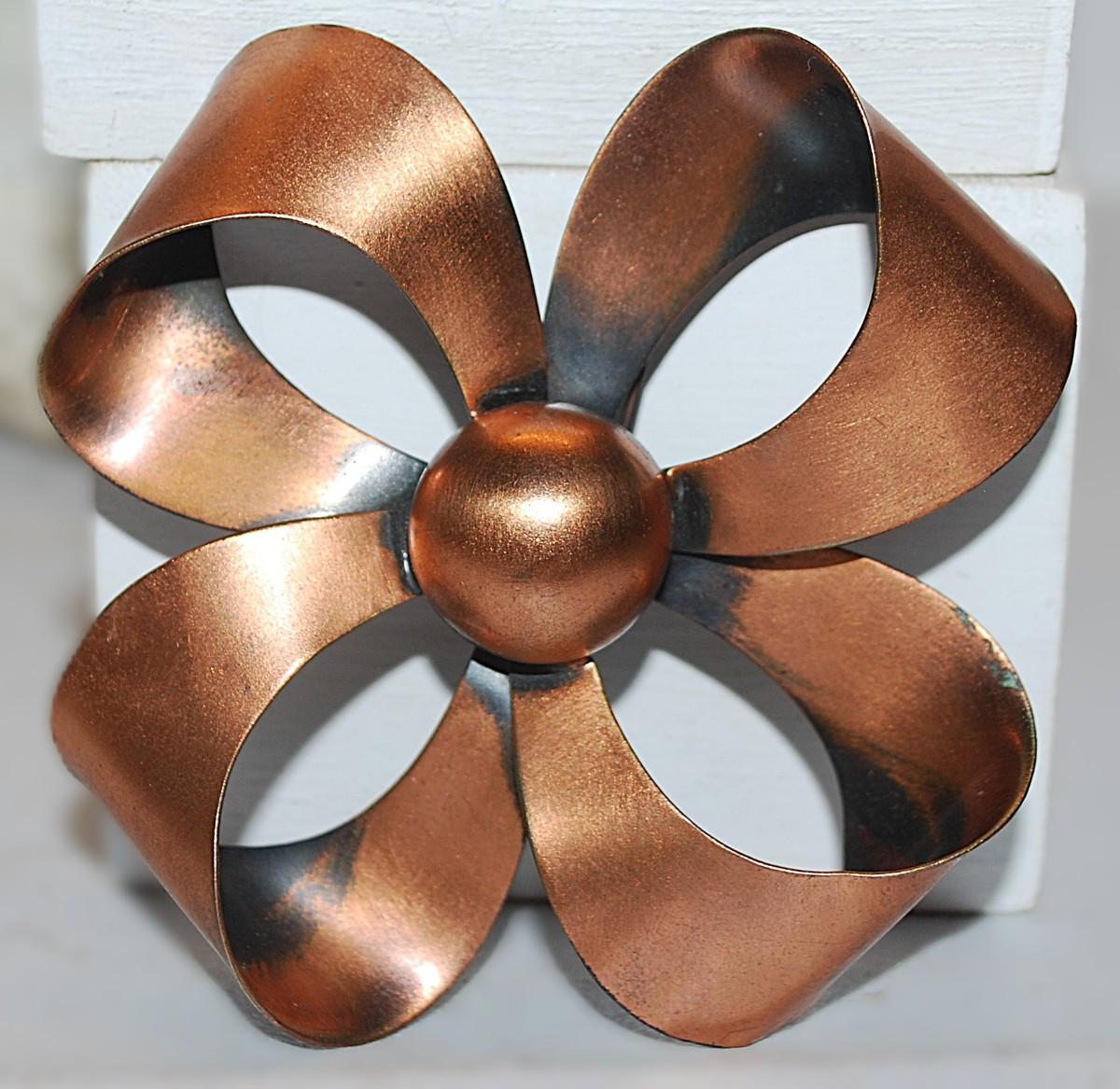 Large VINTAGE Copper-Style 4 Rolls Ribbon BOW BROOCH (3½" Diam.) with Center Half Globe