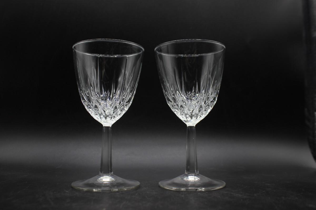 Large Vintage Crystal Pressed Glass Decanter with Pair of Goblet Drink Wine Glasses