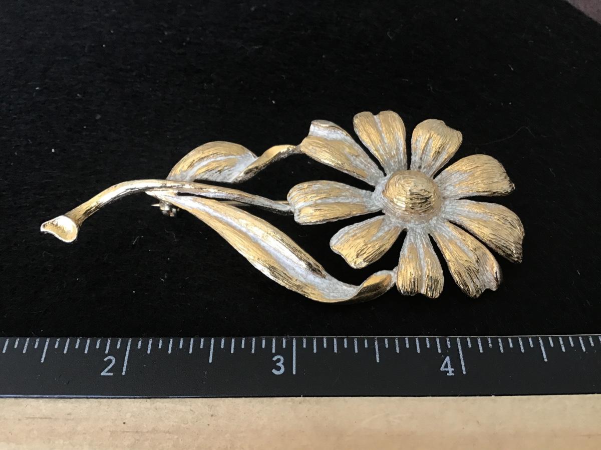 Park Lane Large Vintage Daisy Brooch White wash Look
