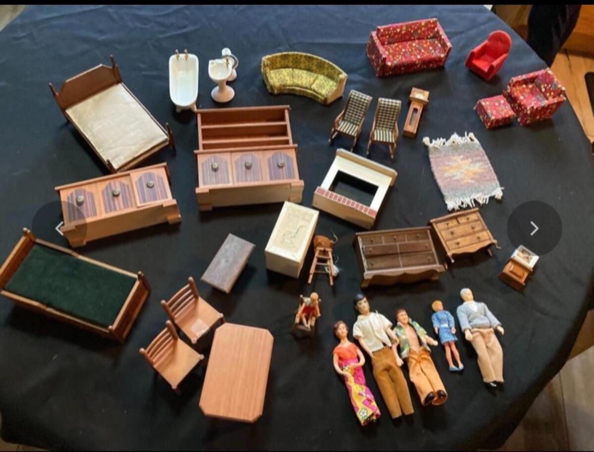 Large Vintage Doll Furniture and Figurine Lot INCLUDES Custom House!