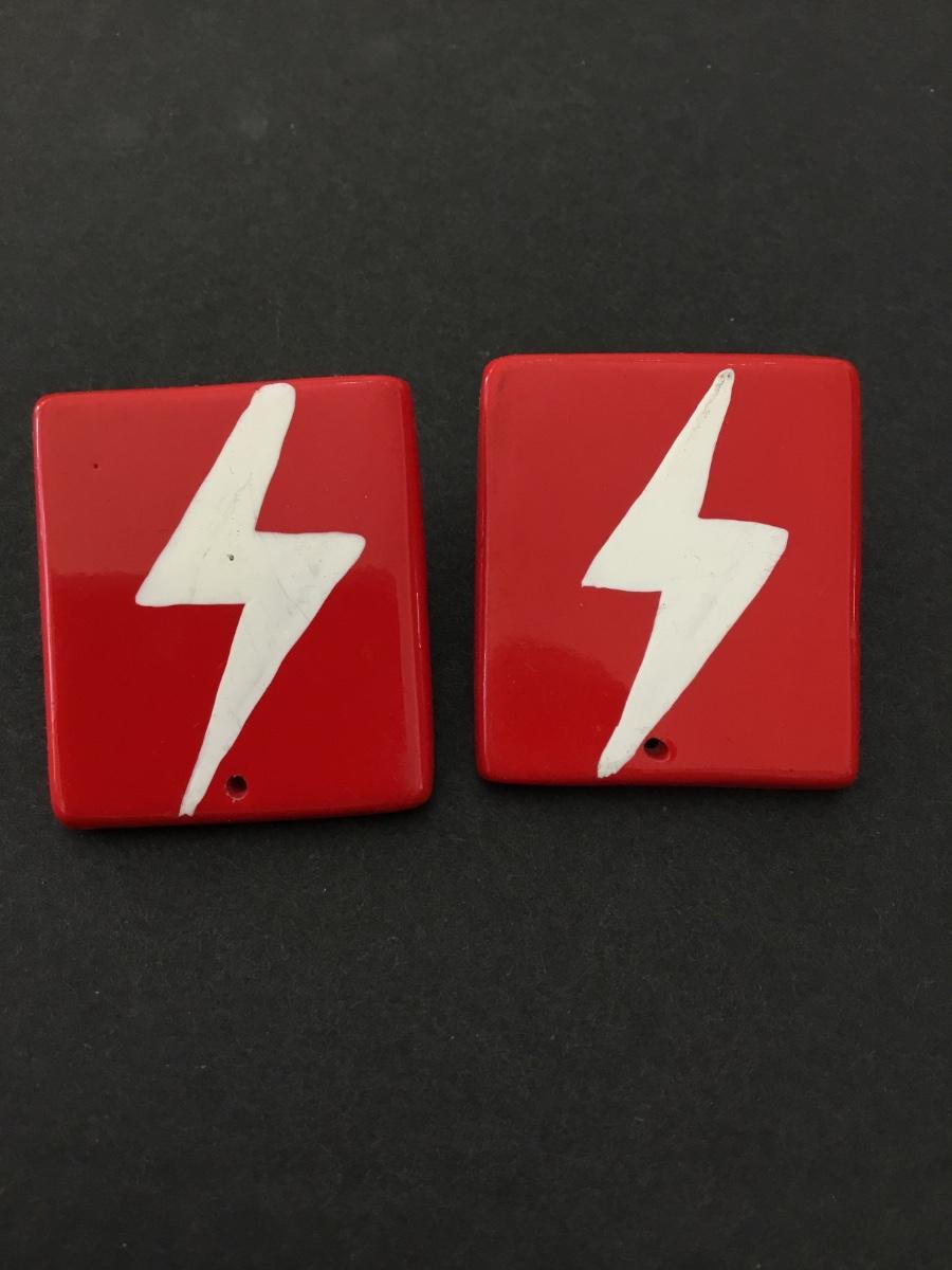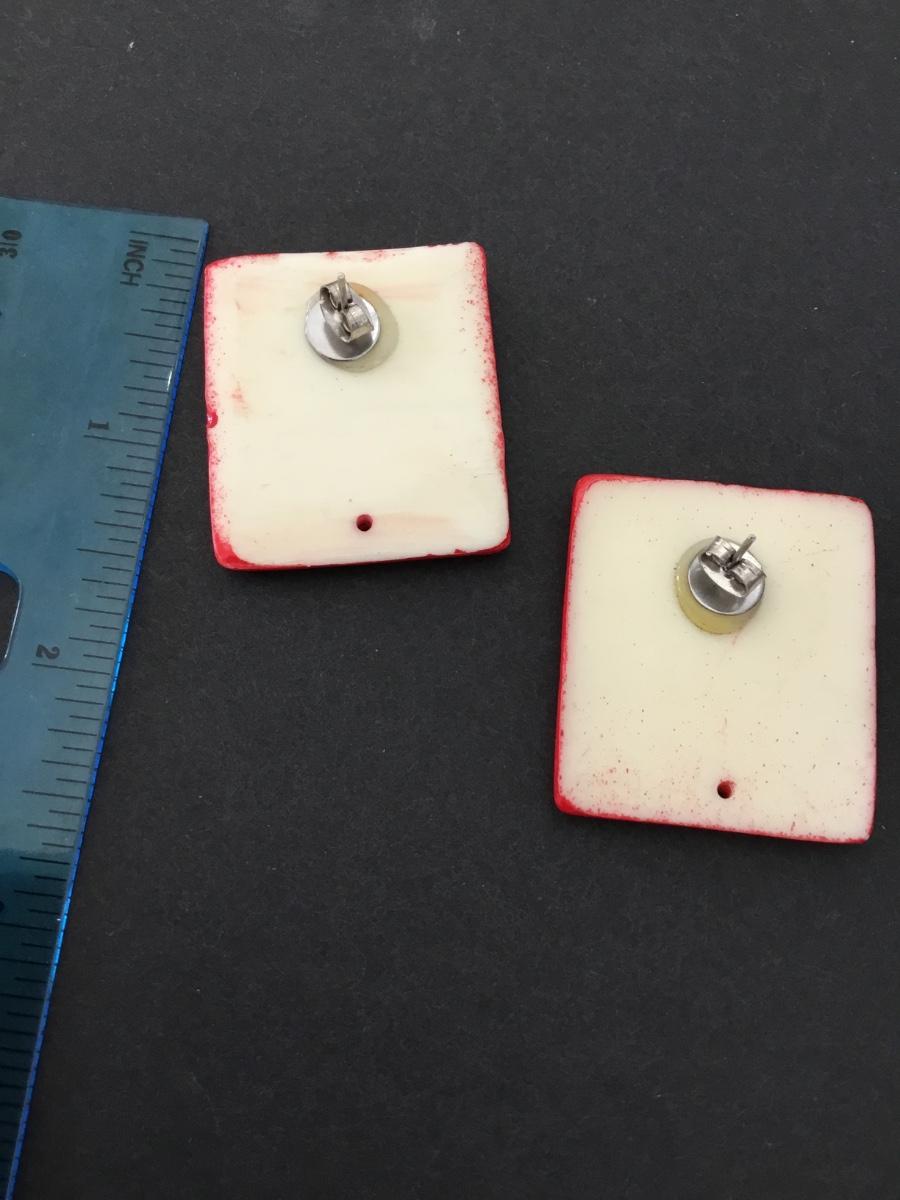 Large vintage enamel, lightning bolt Lucite, tape, square statement, earrings