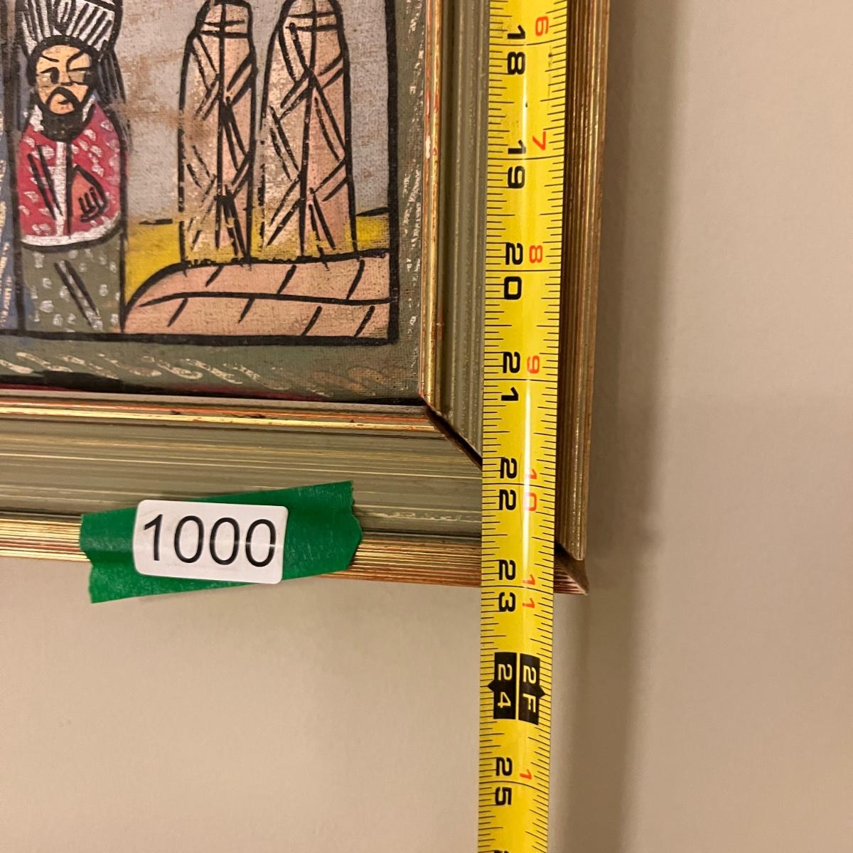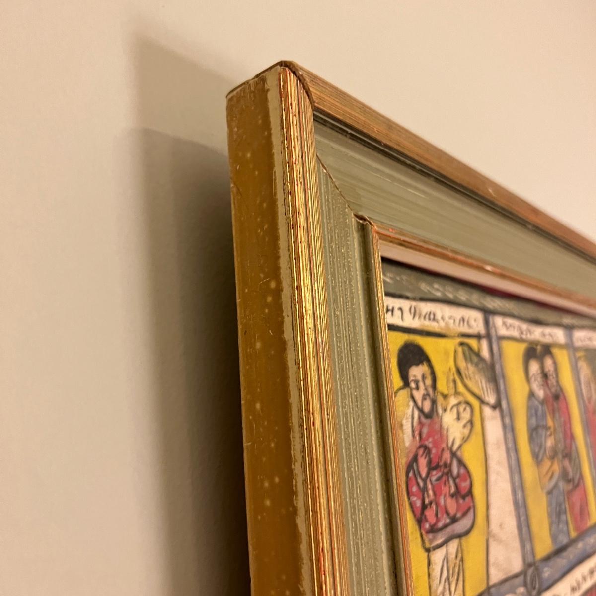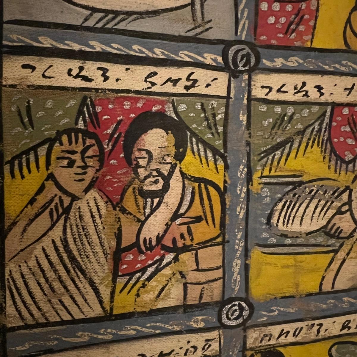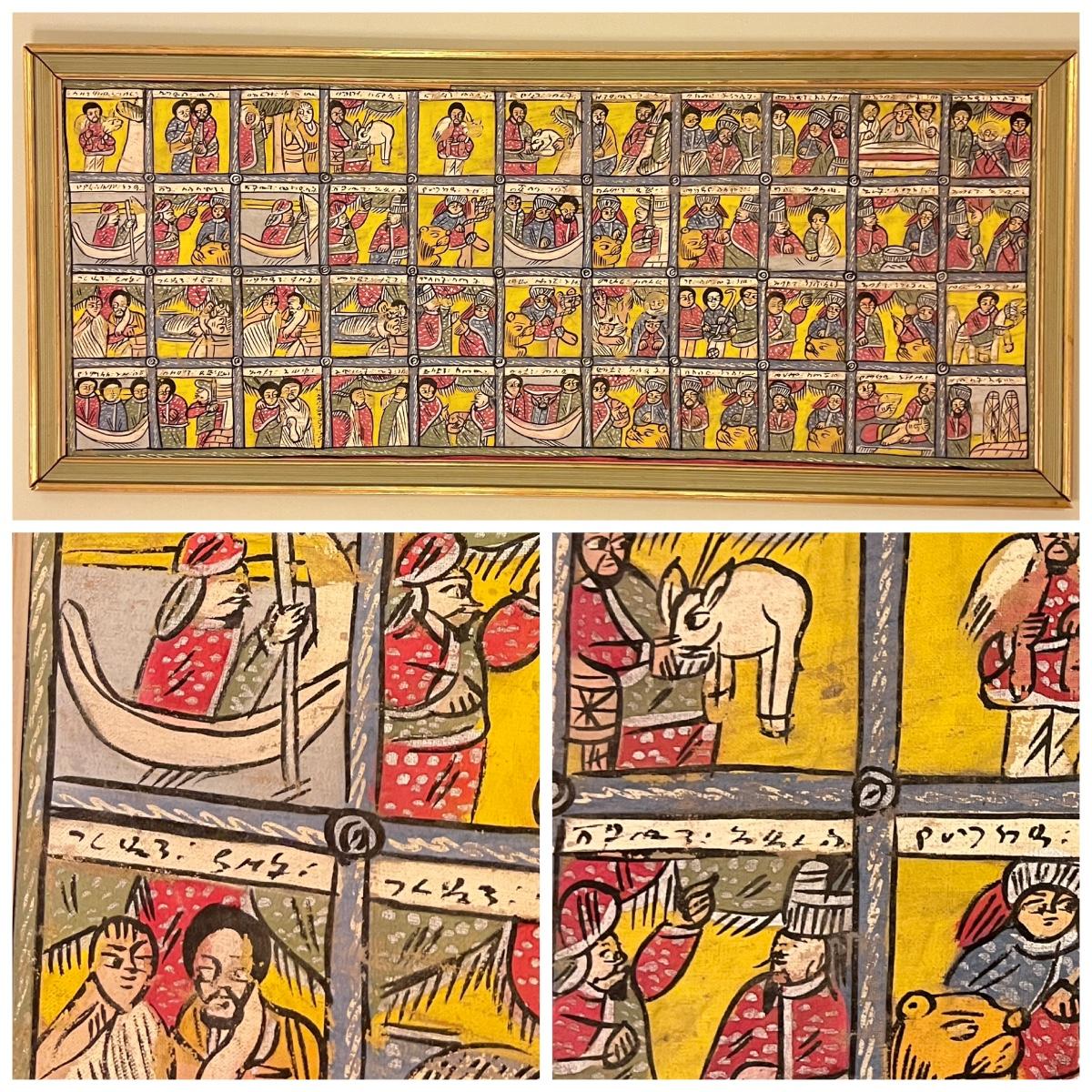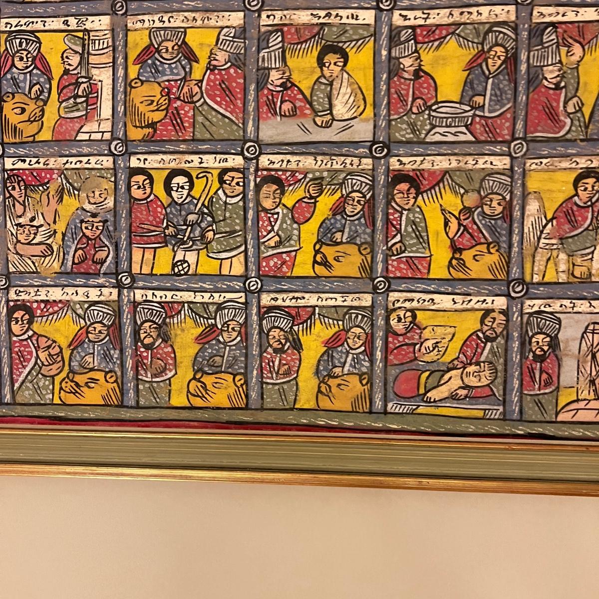 Large Vintage Ethiopian Painting on Wood King Solomon Narrative 23”x53”