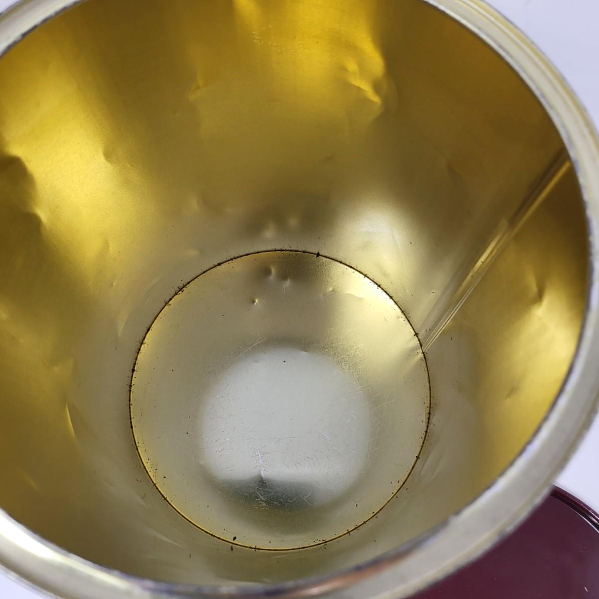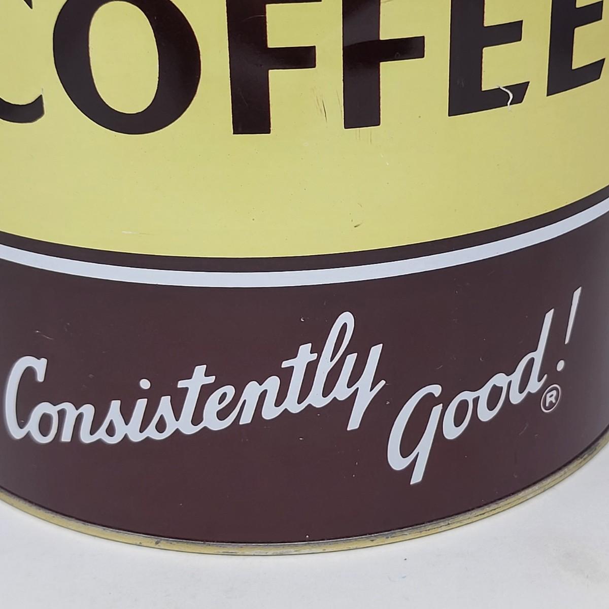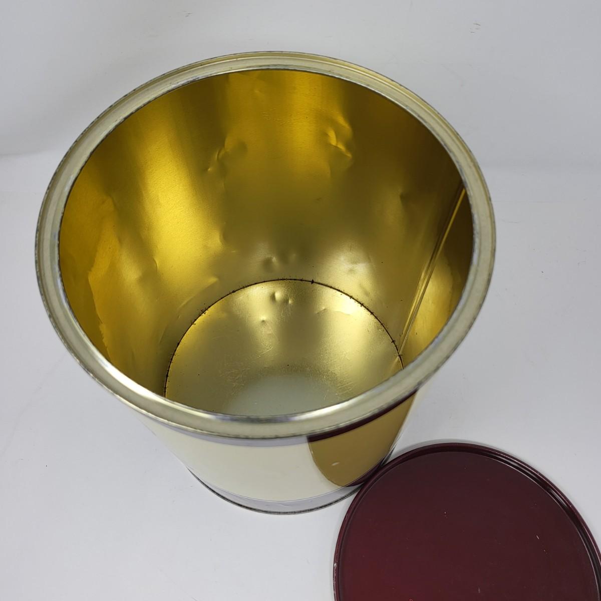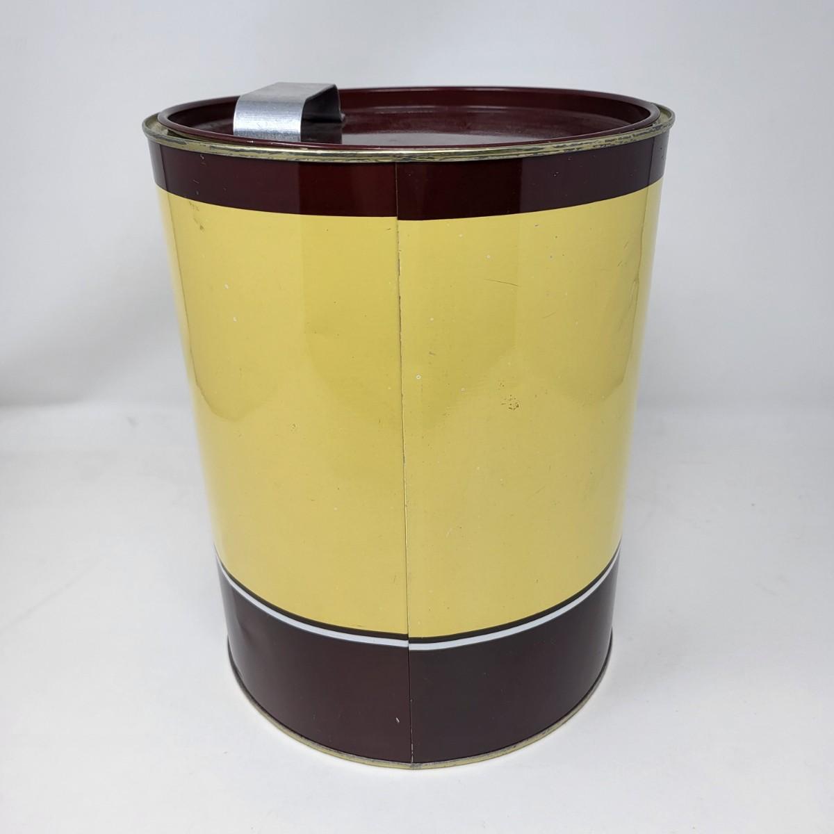 Collectible tin is 10" tall x 8" round. Has lid. No rust, good condition with minor wear to exterior.
