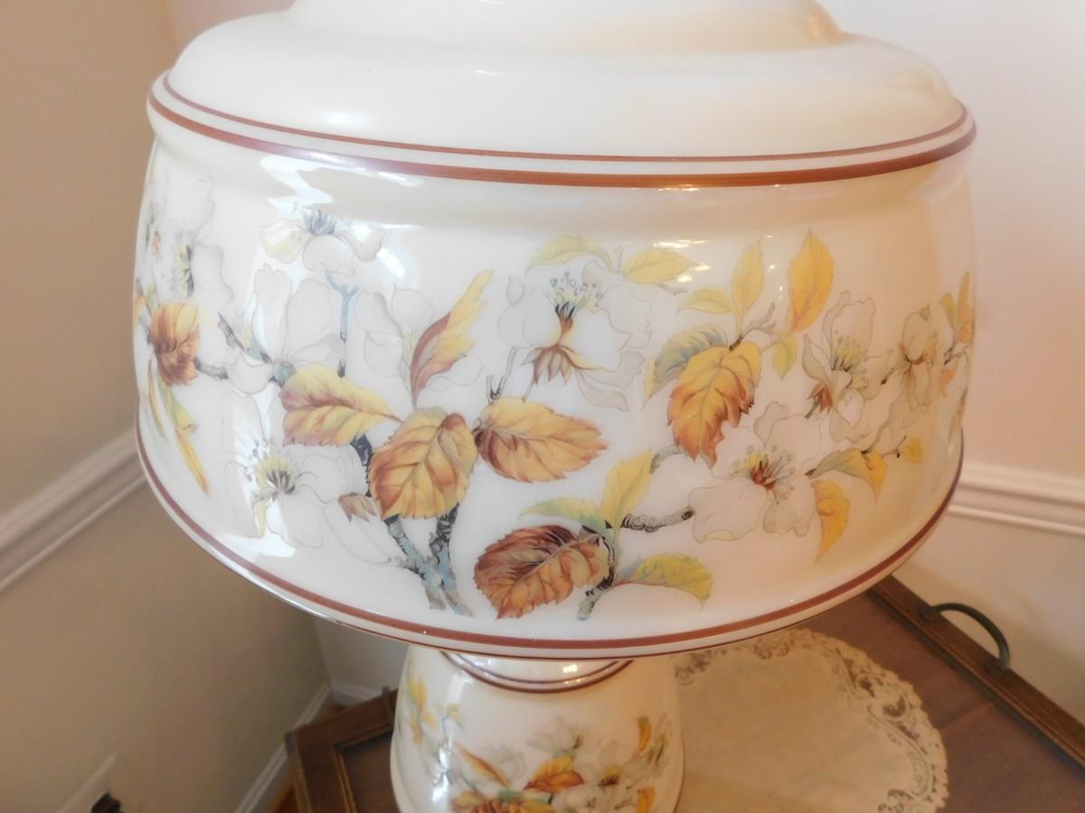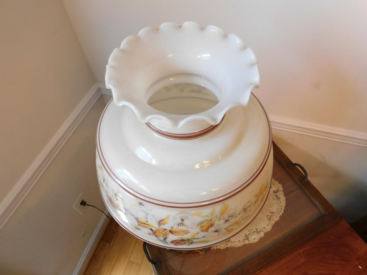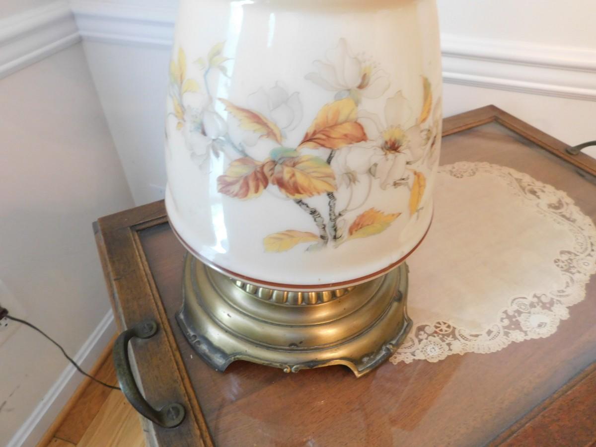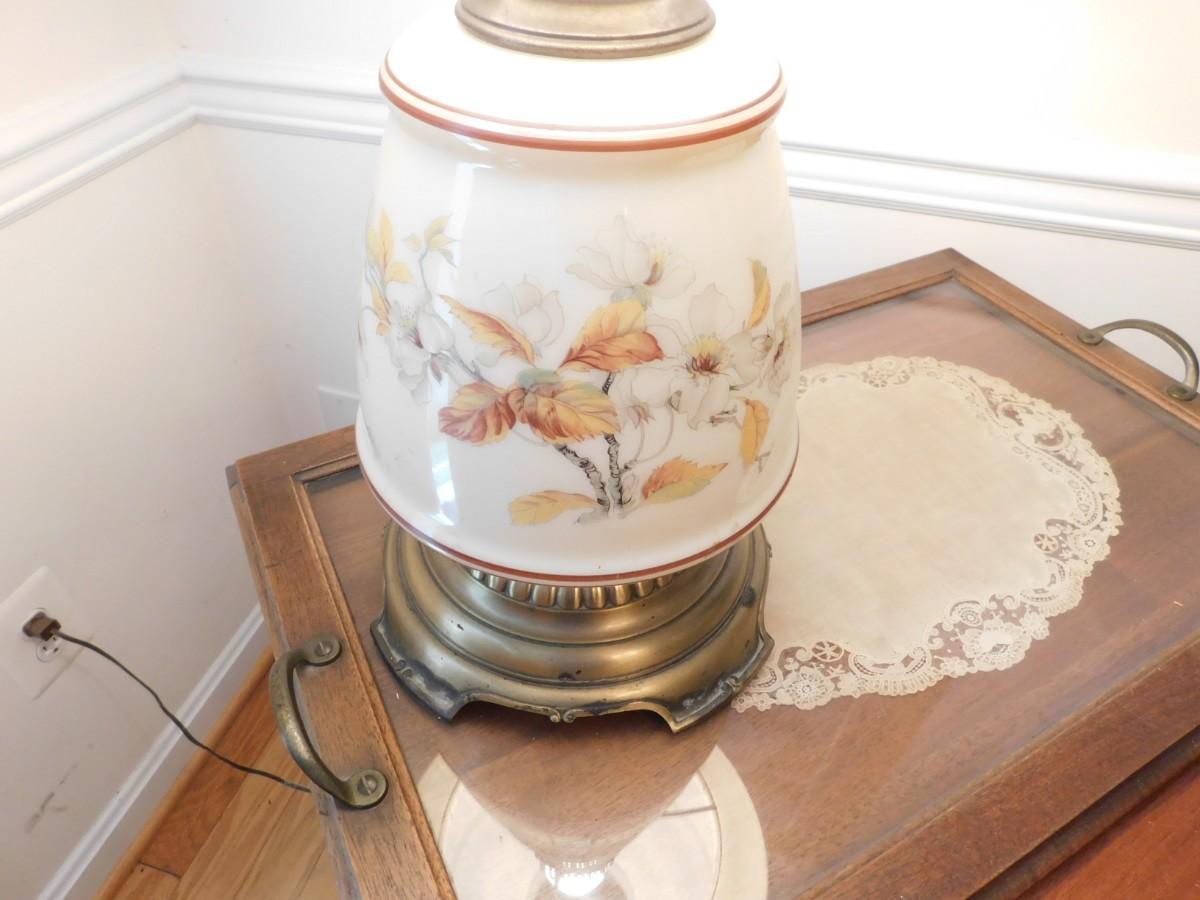 Large VIntage Floral Glass Shade Lamp TOP & BOTTOM LIGHTS
