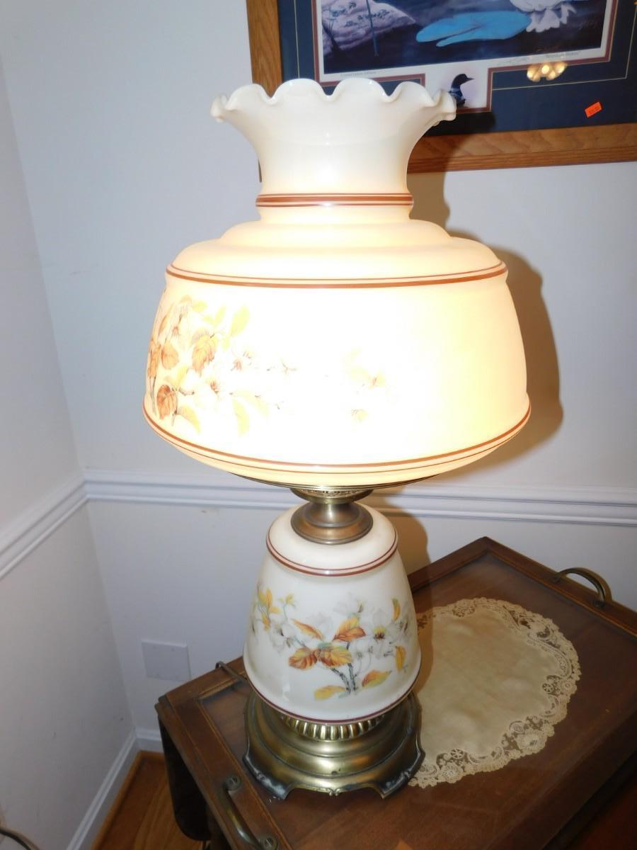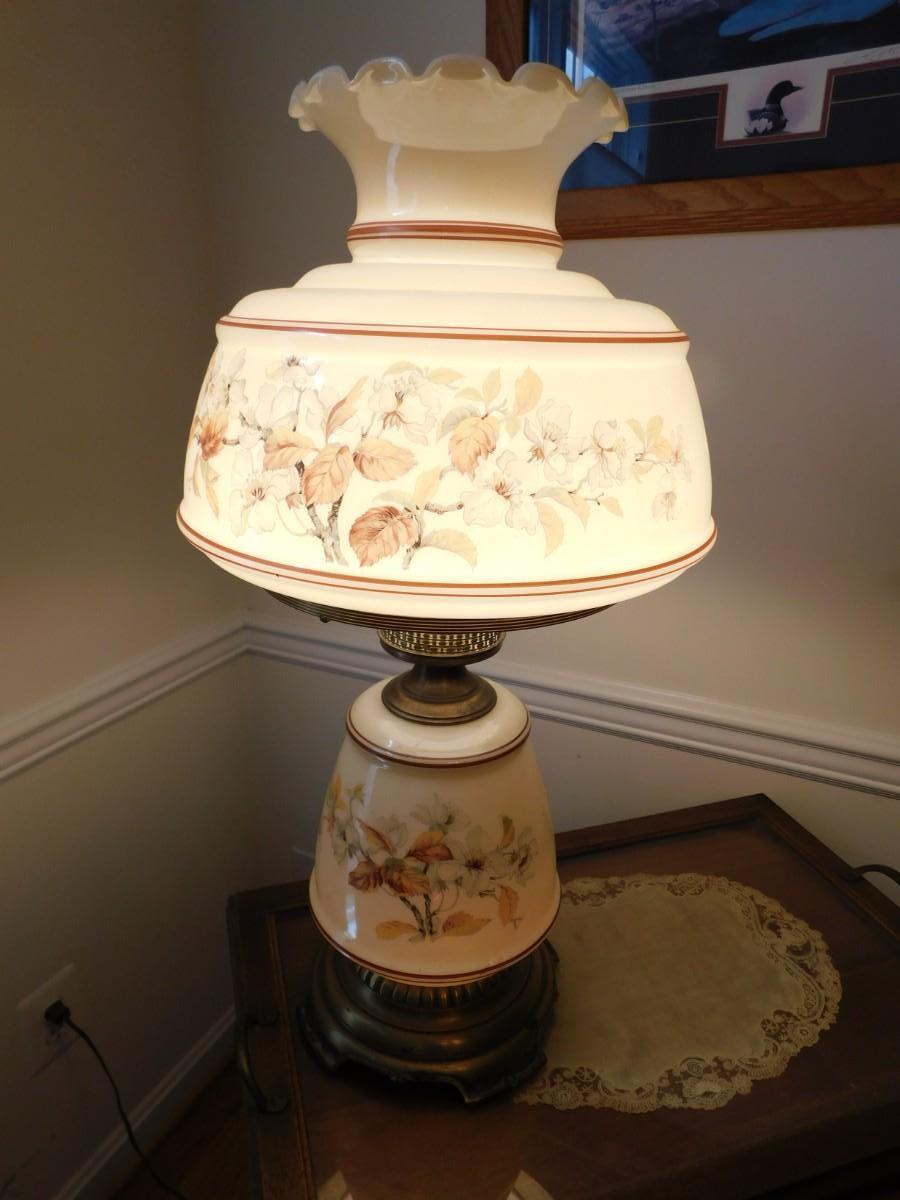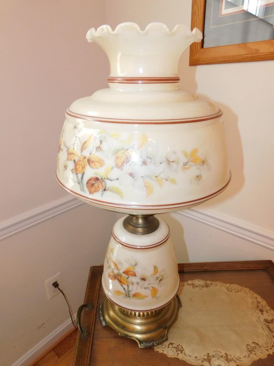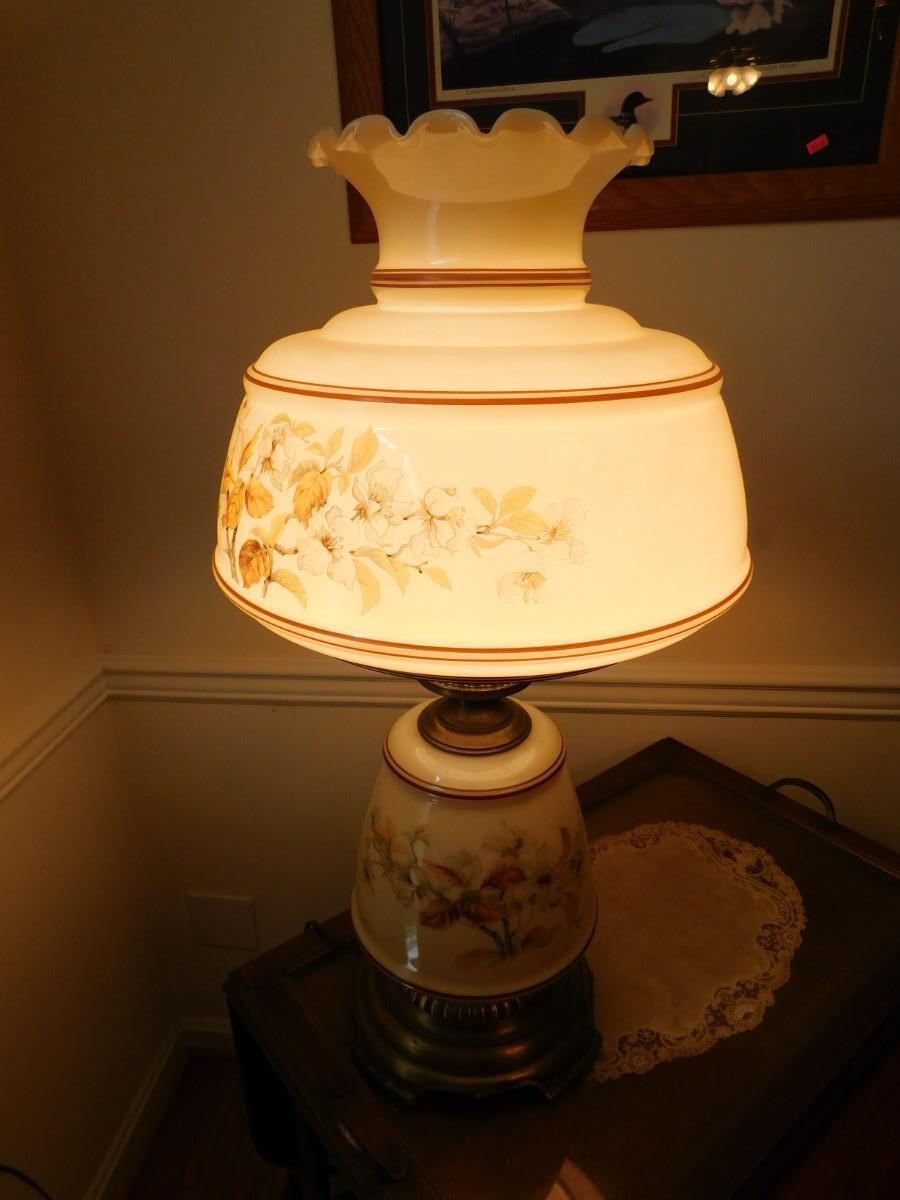 Large VIntage Floral Glass Shade Lamp TOP & BOTTOM LIGHTS