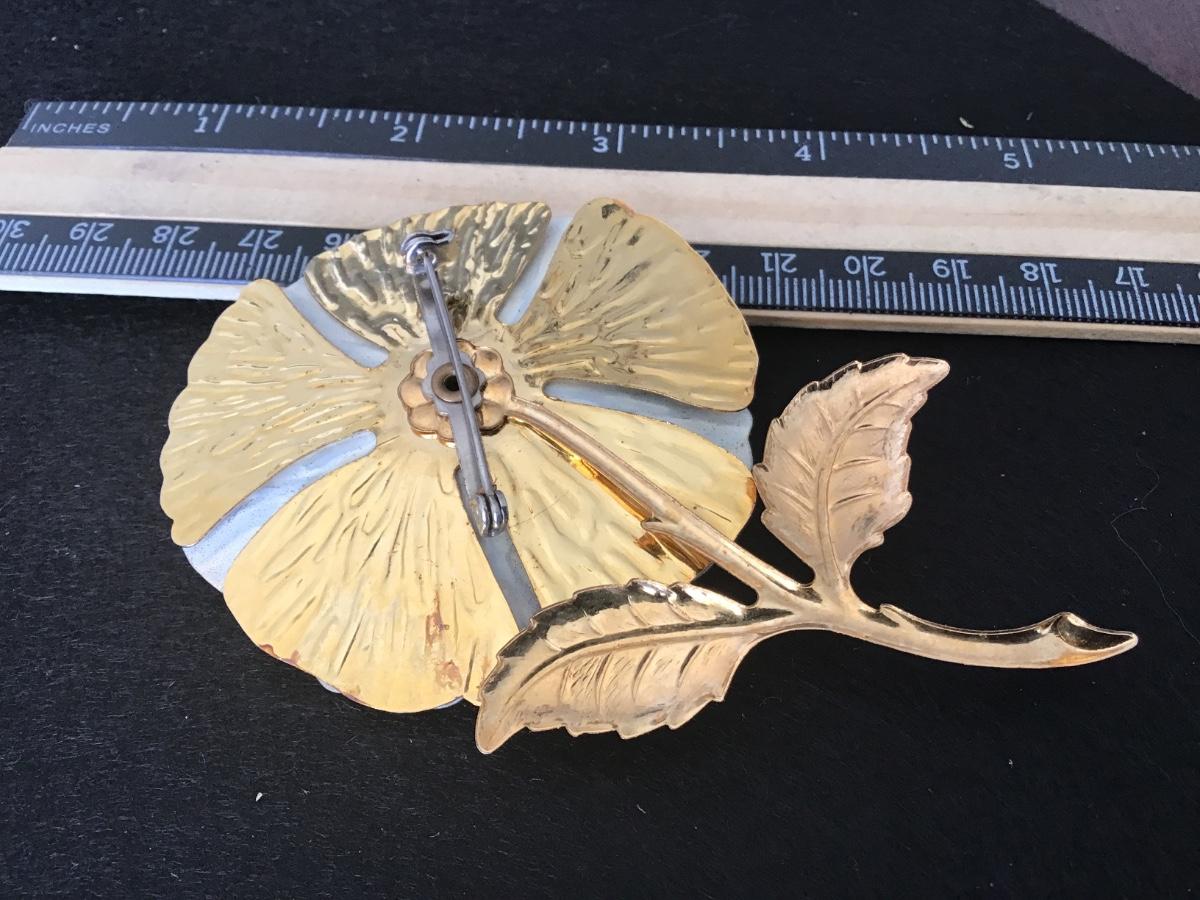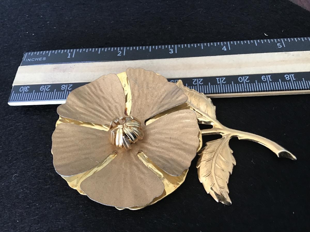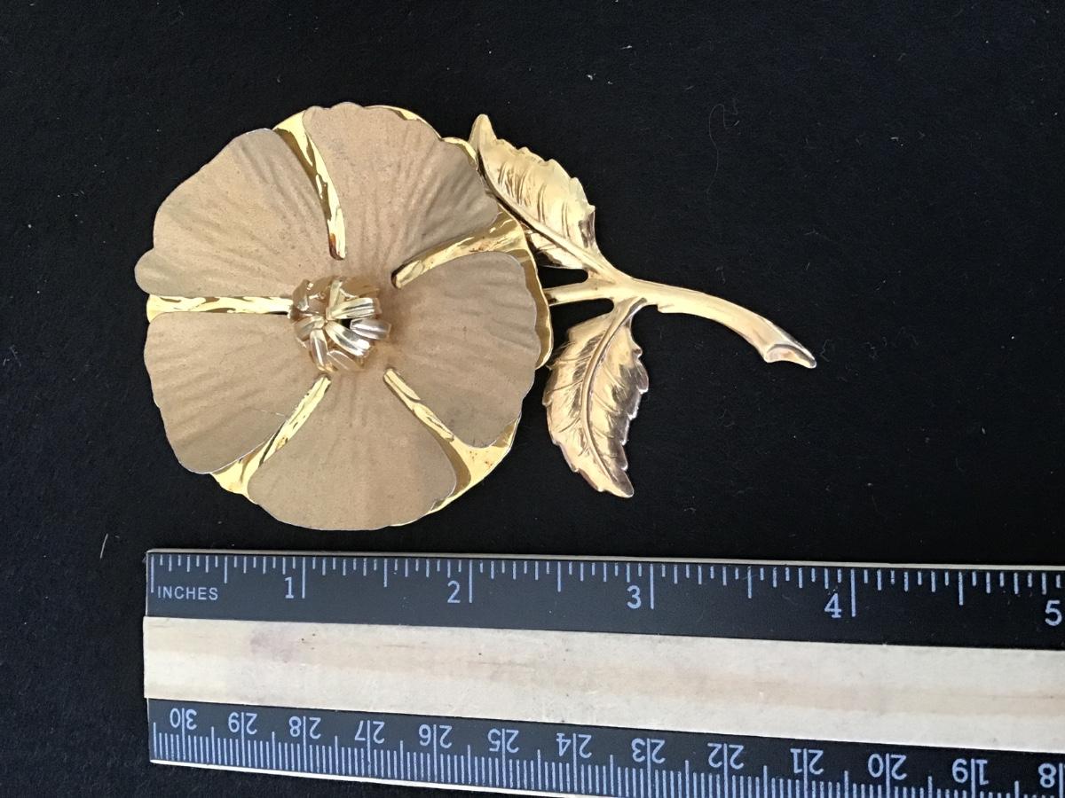 Large Vintage Flower Brooch Gold Tone