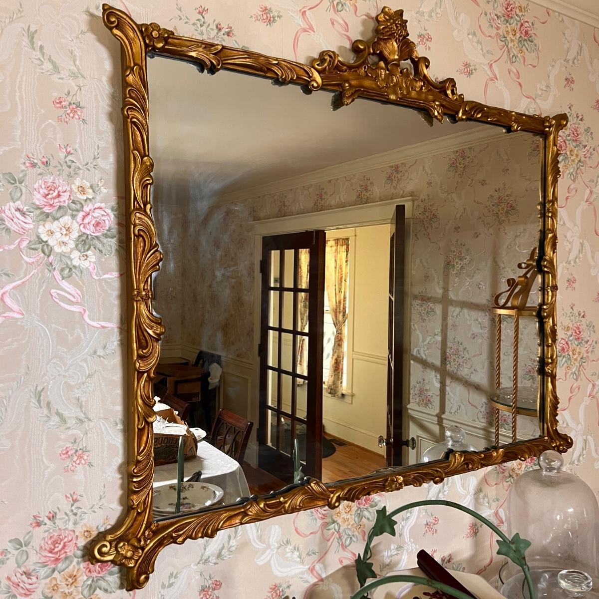 Beautiful vintage 32" x 46" gold gilt ornate framed mirror. In great condition.