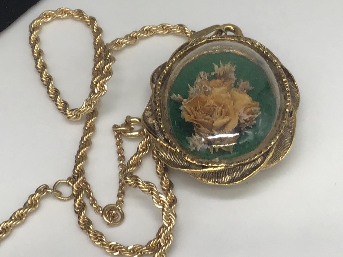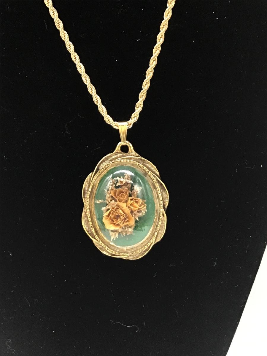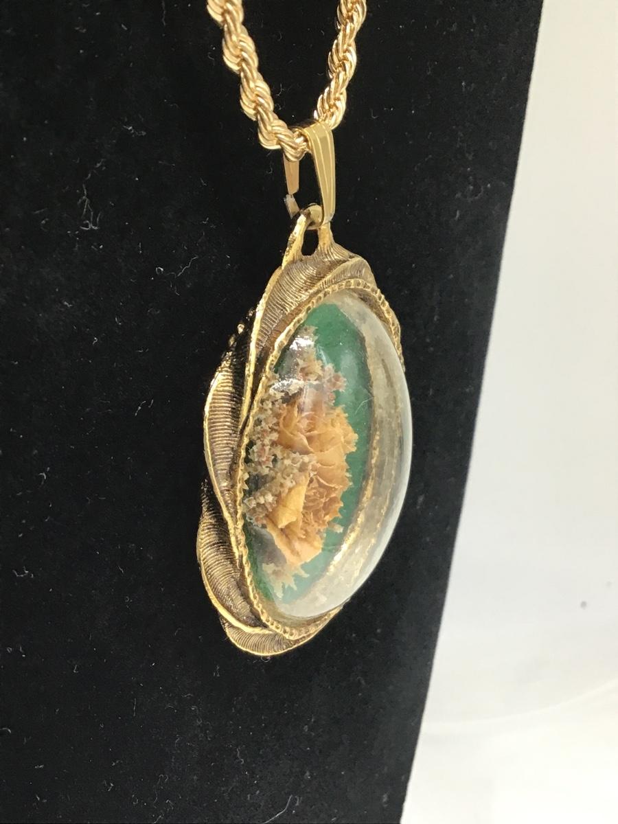 Large Vintage Glass Dome Floral Necklace