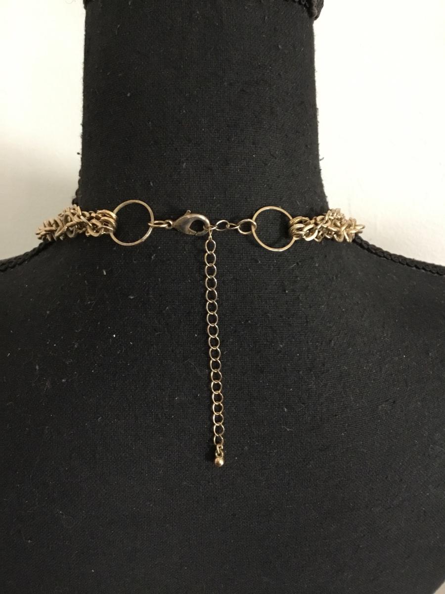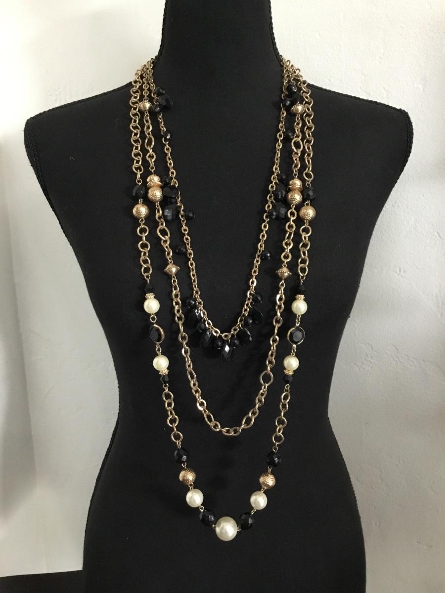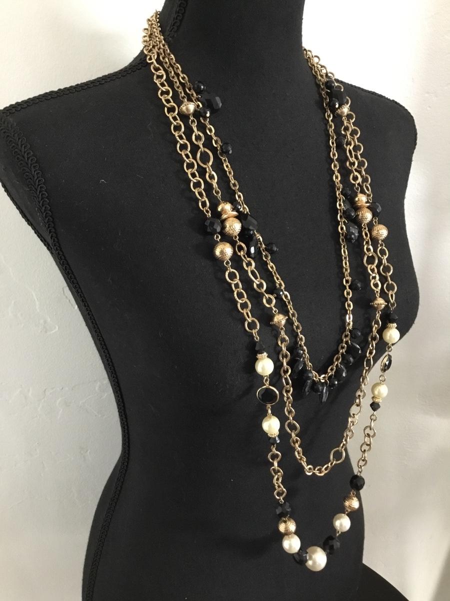 Large vintage, gold tone, faux pearl & faux black glass statement necklace