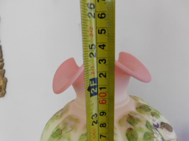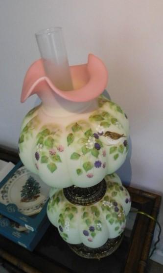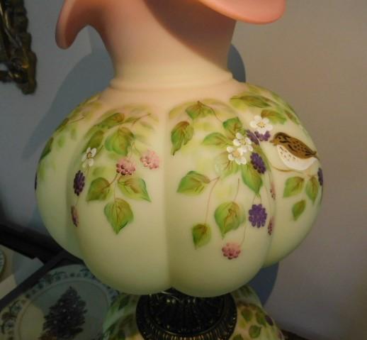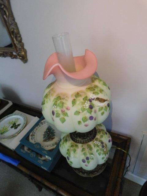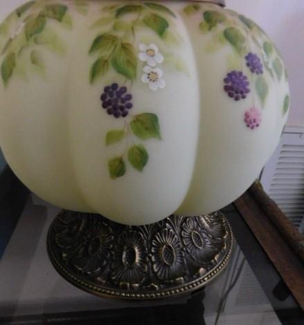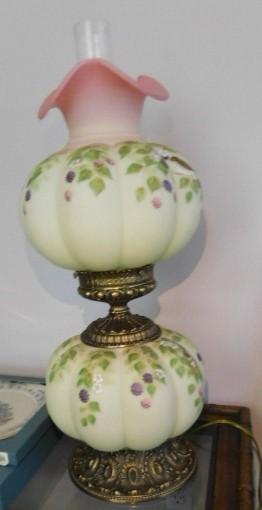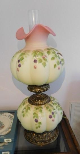 Large Vintage Hand Painted Fenton Electric Table Lamp Melon Globe with Ruffle Edge Top 25"