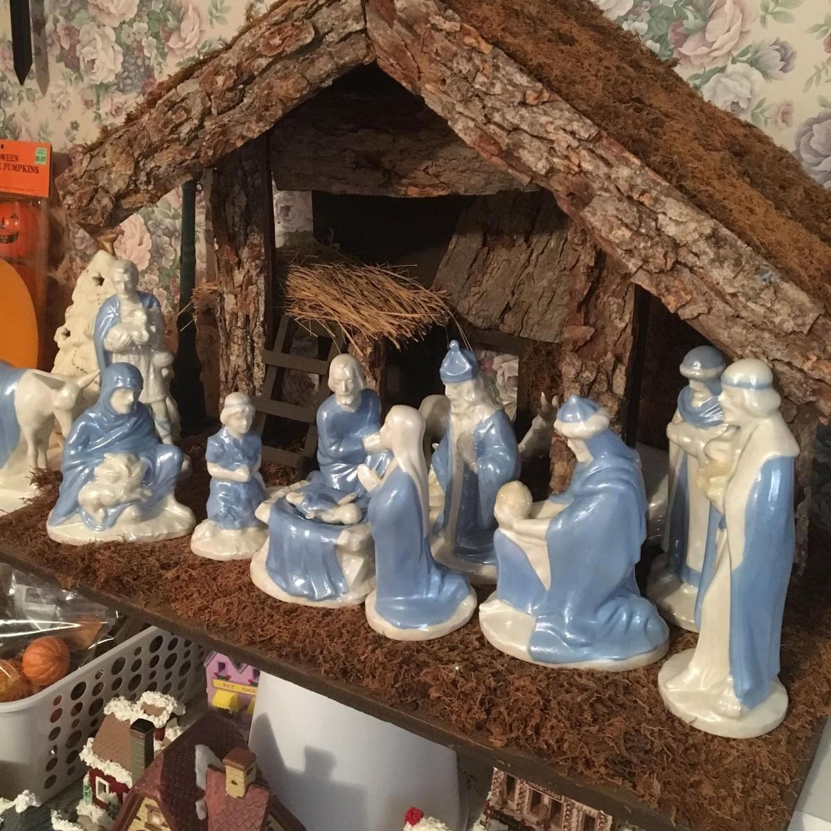 Large Vintage Homemade Nativity Manger Set