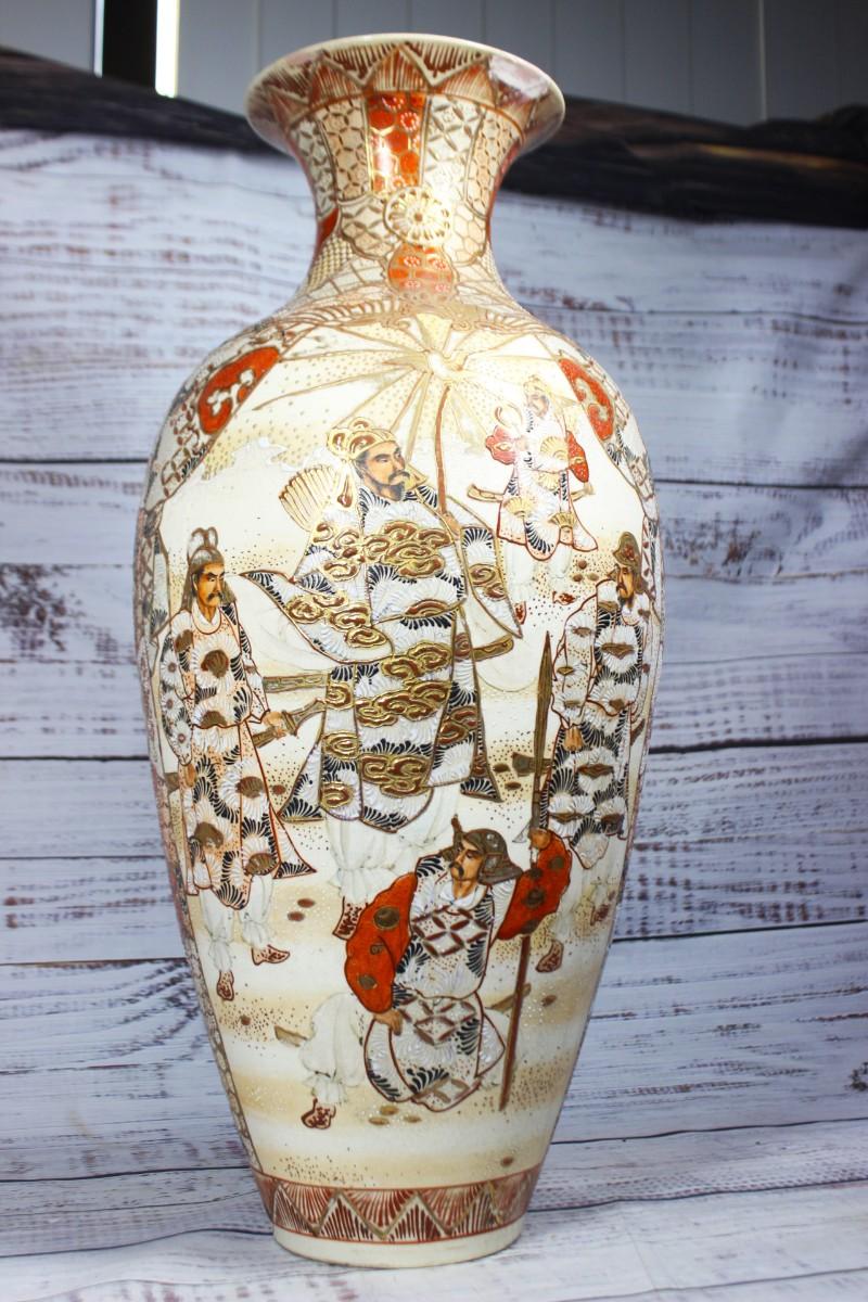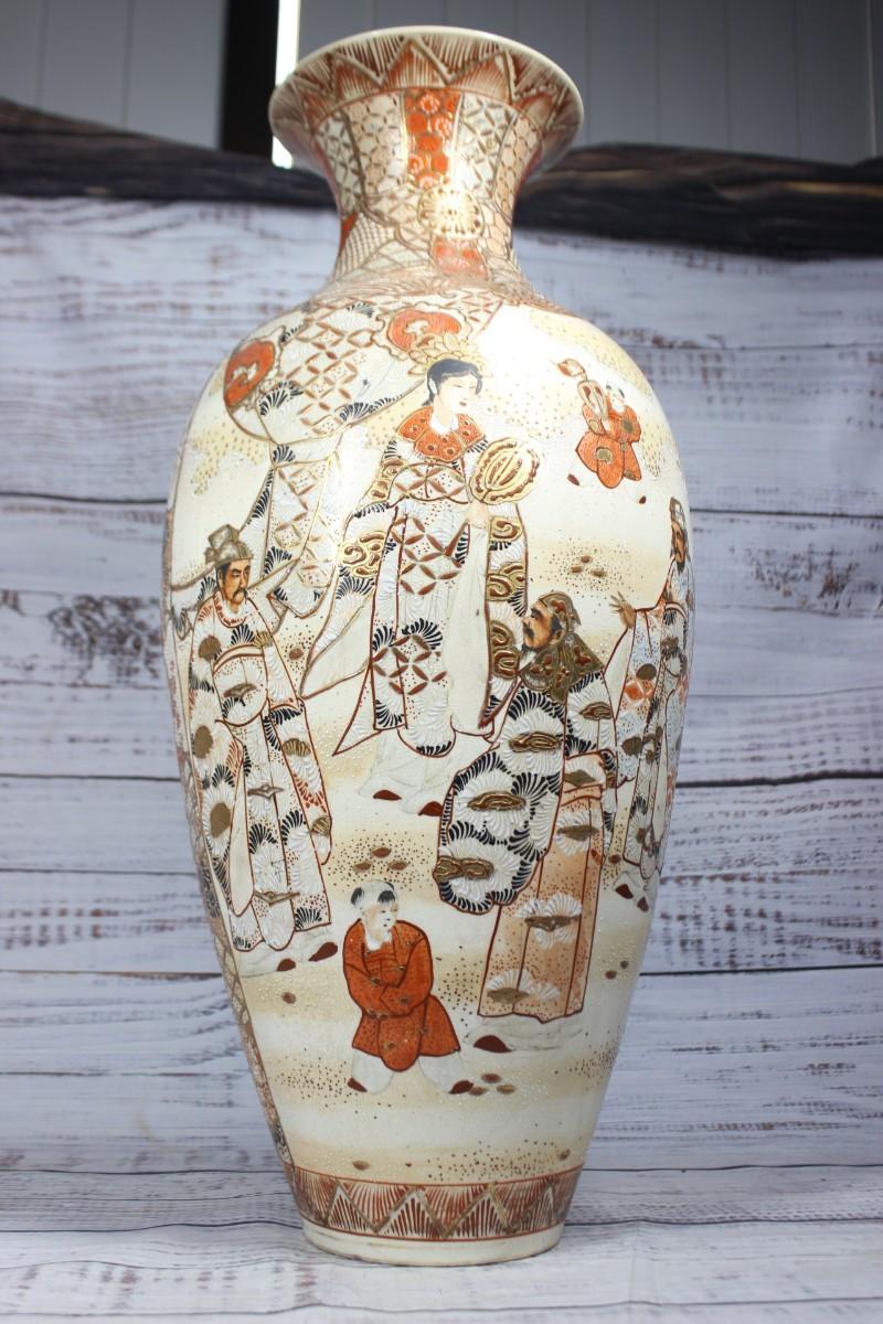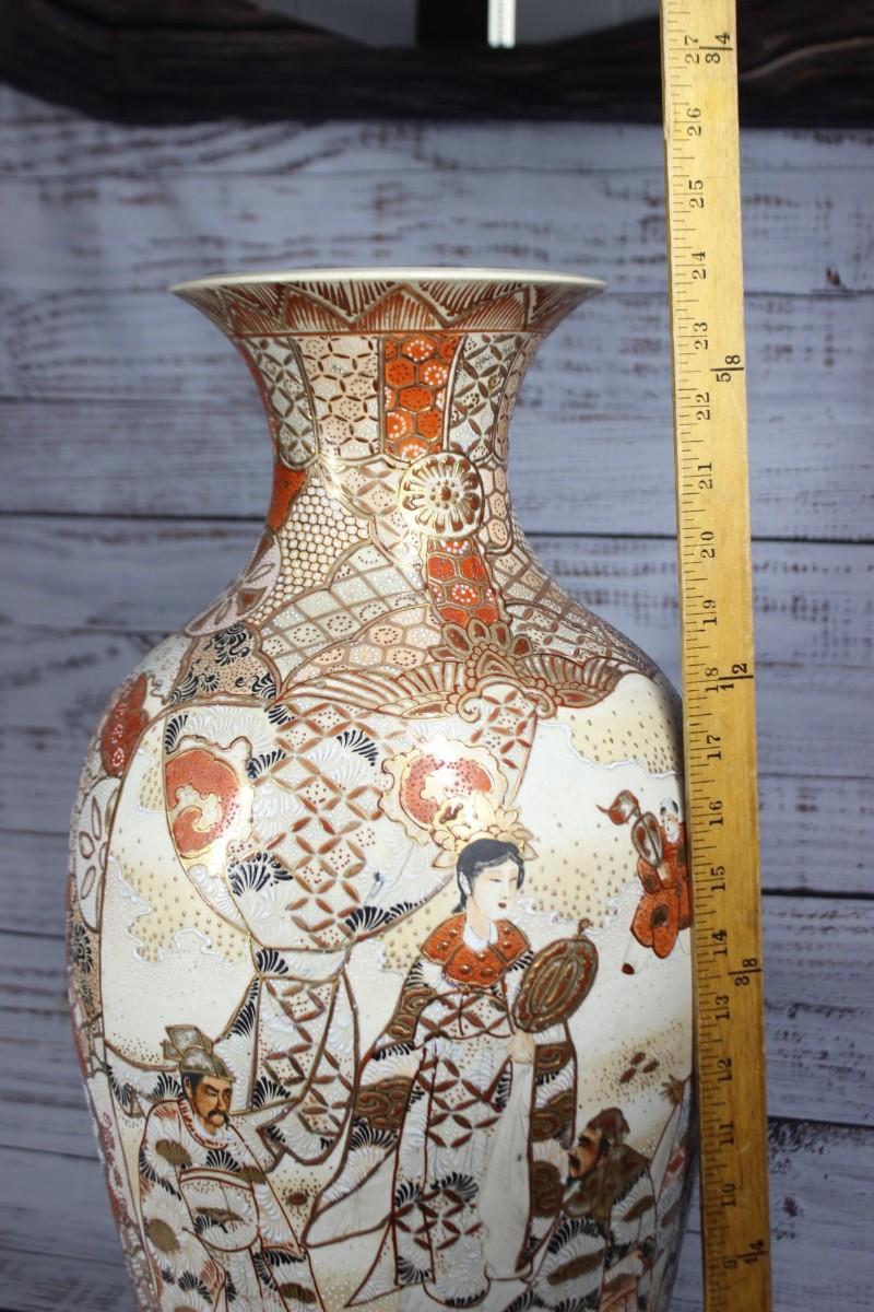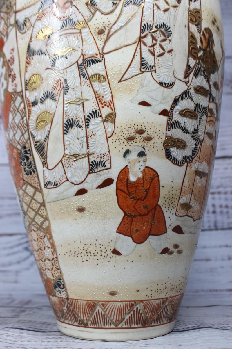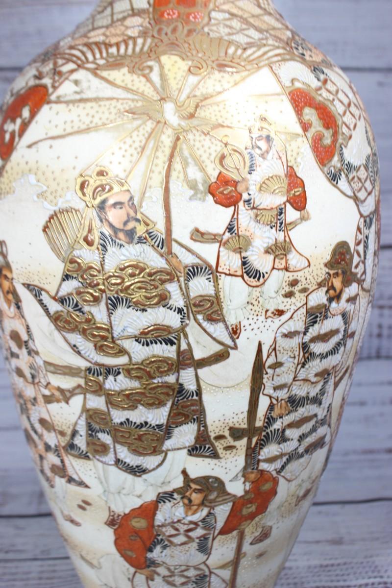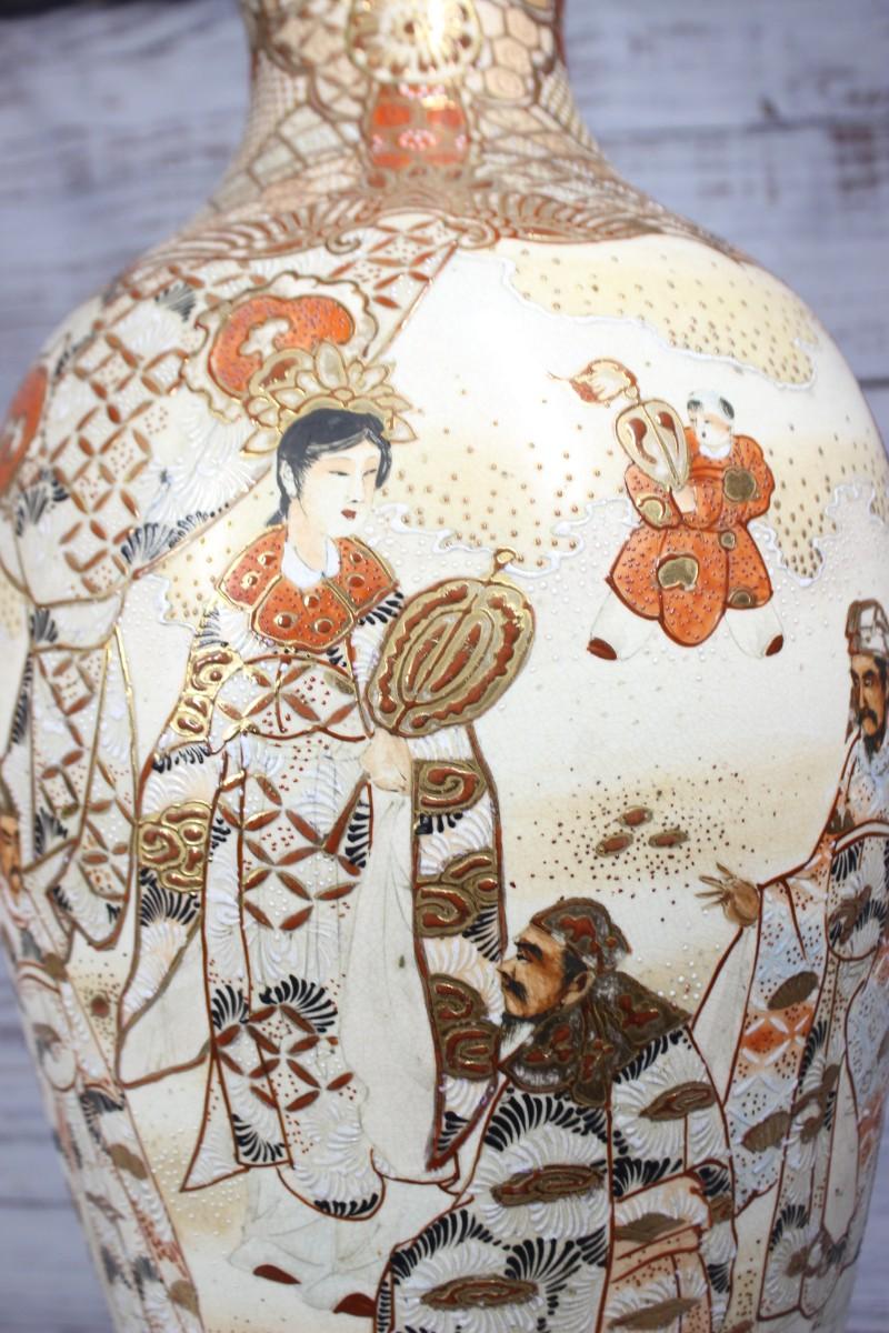 Large Vintage Japanese Satsuma Style Moriage Decorative Art Vase