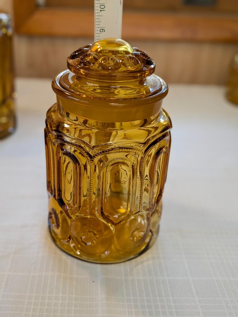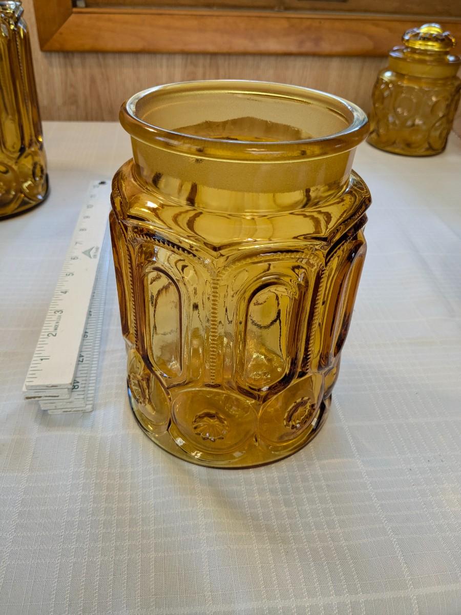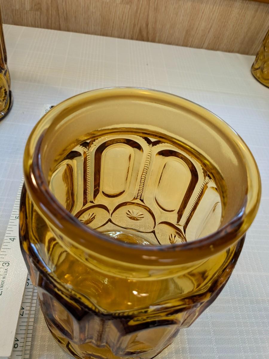 Large Vintage LE Smith Moon and Stars Amber Glass Canister Jar