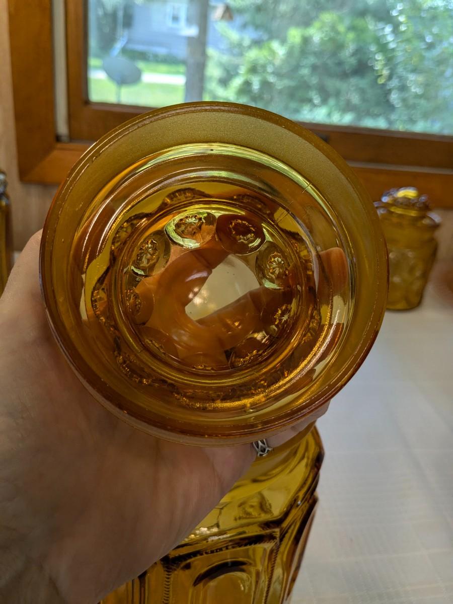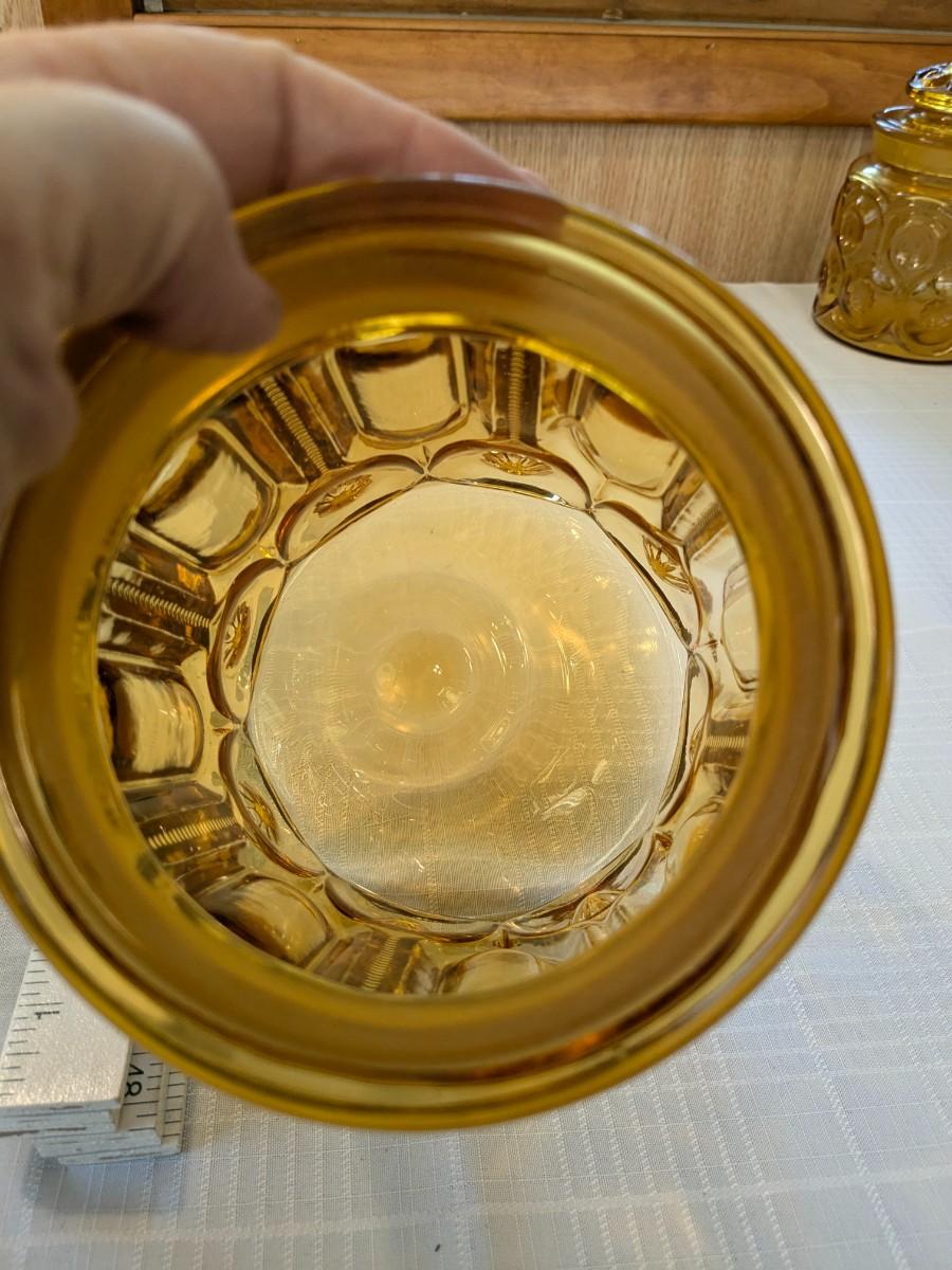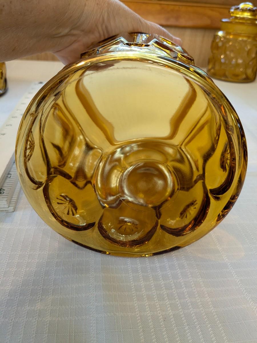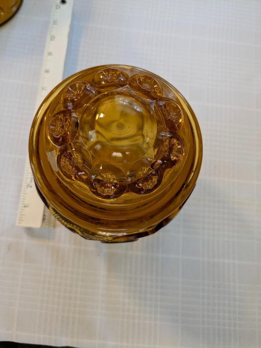 Large Vintage LE Smith Moon and Stars Amber Glass Canister Jar