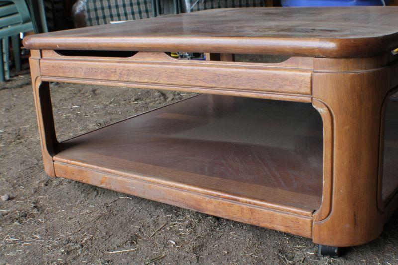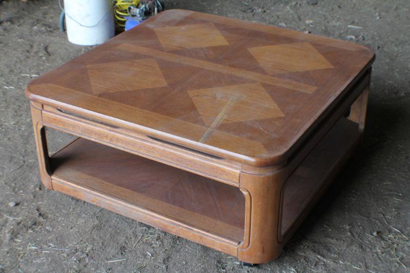 Lot #236: Large Vintage Light Oak Diamond Inlay Pattern Coffee Table