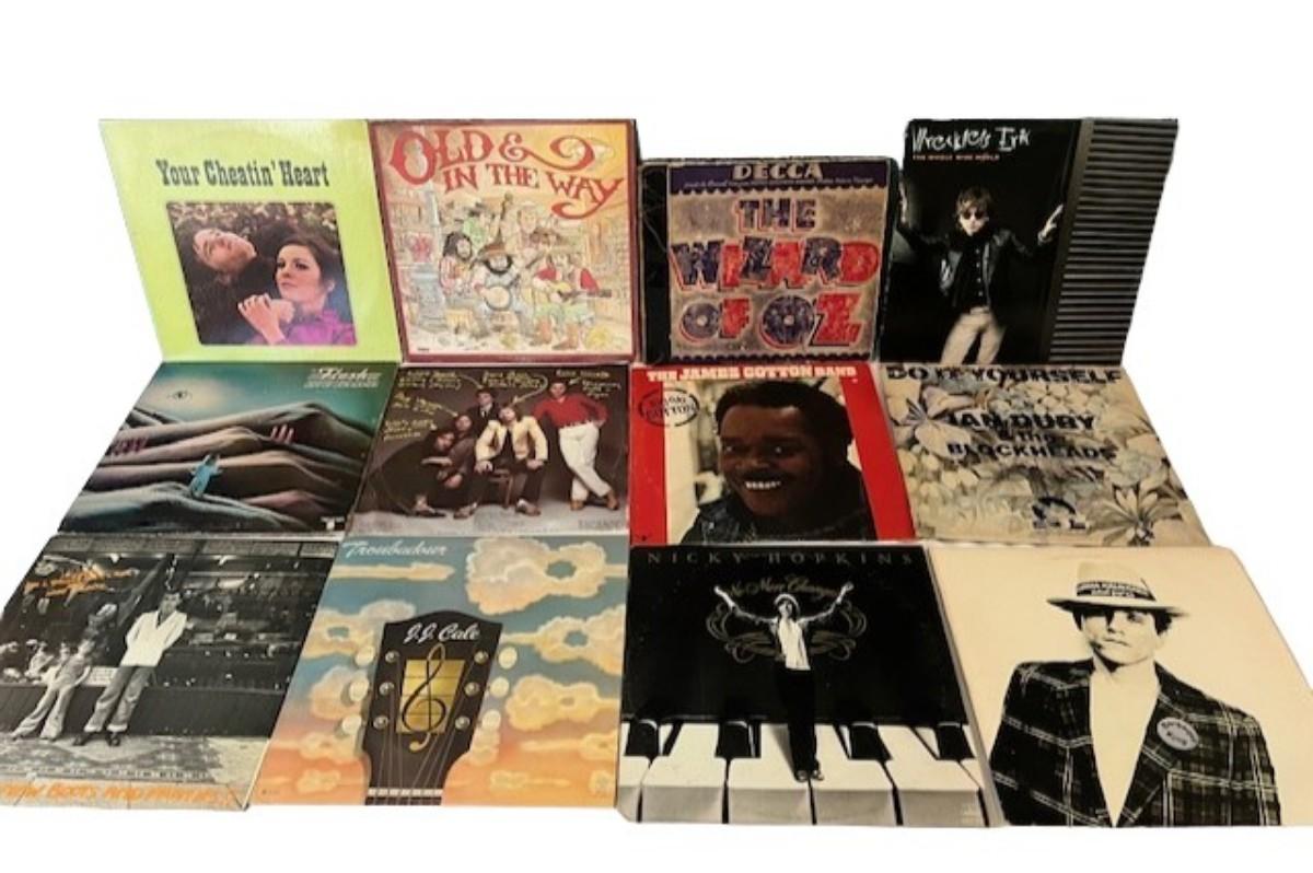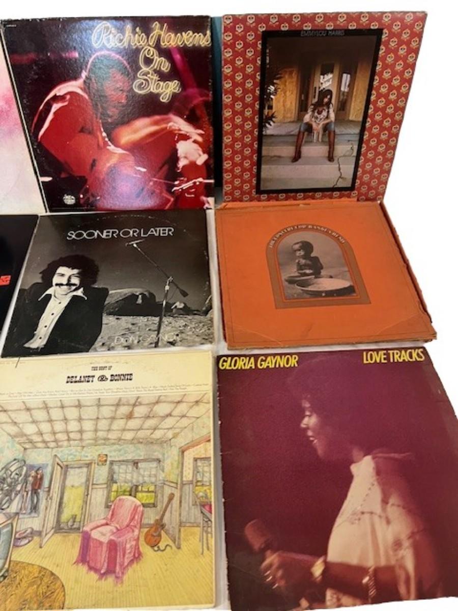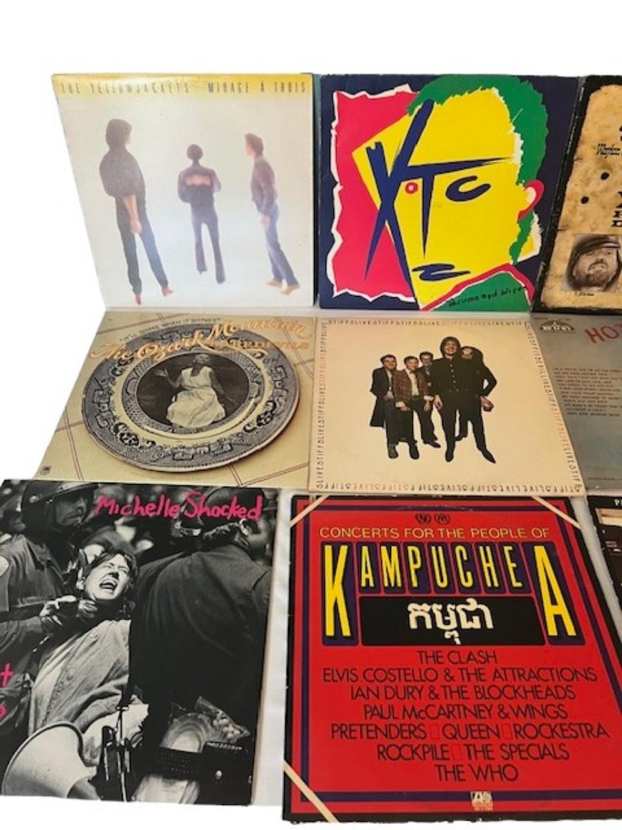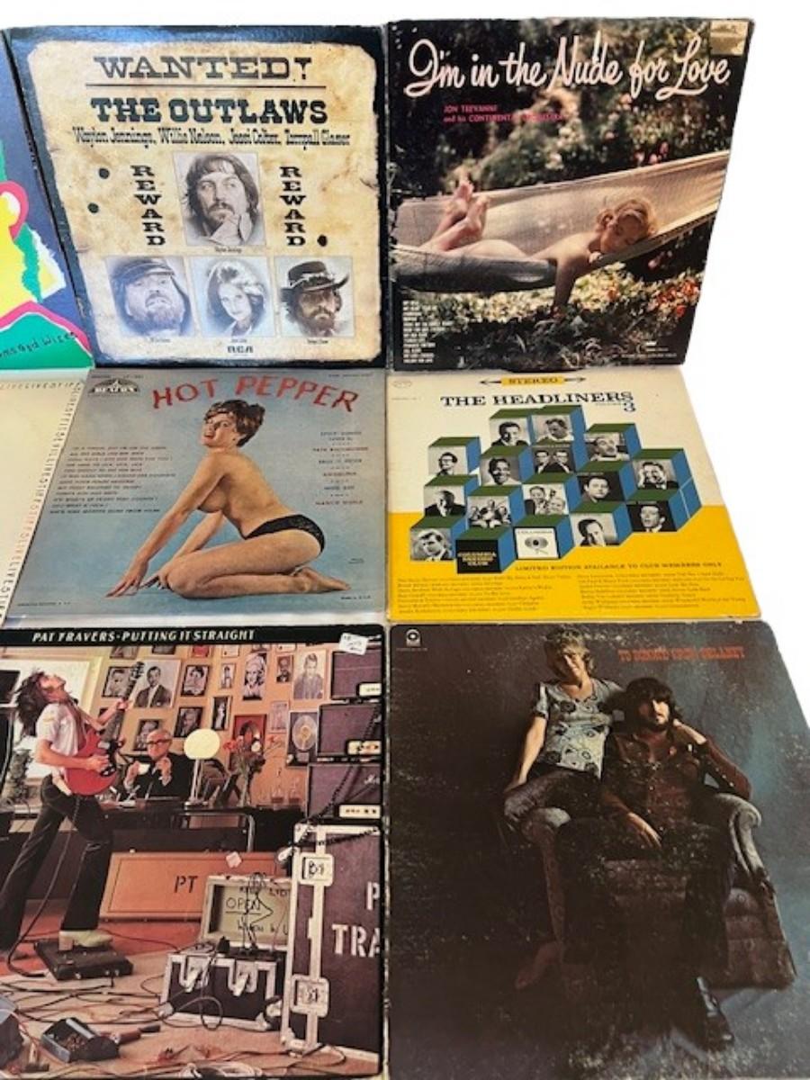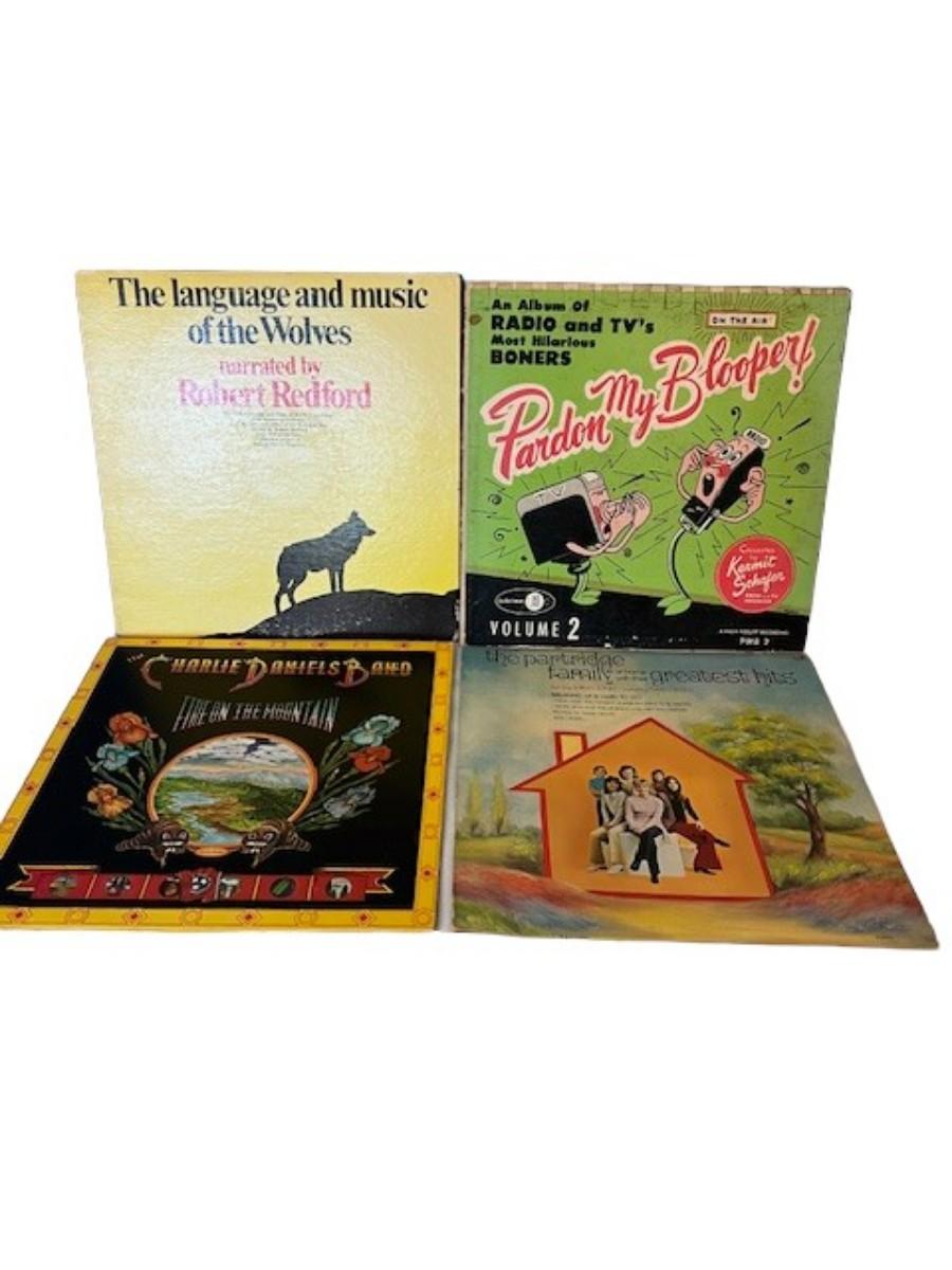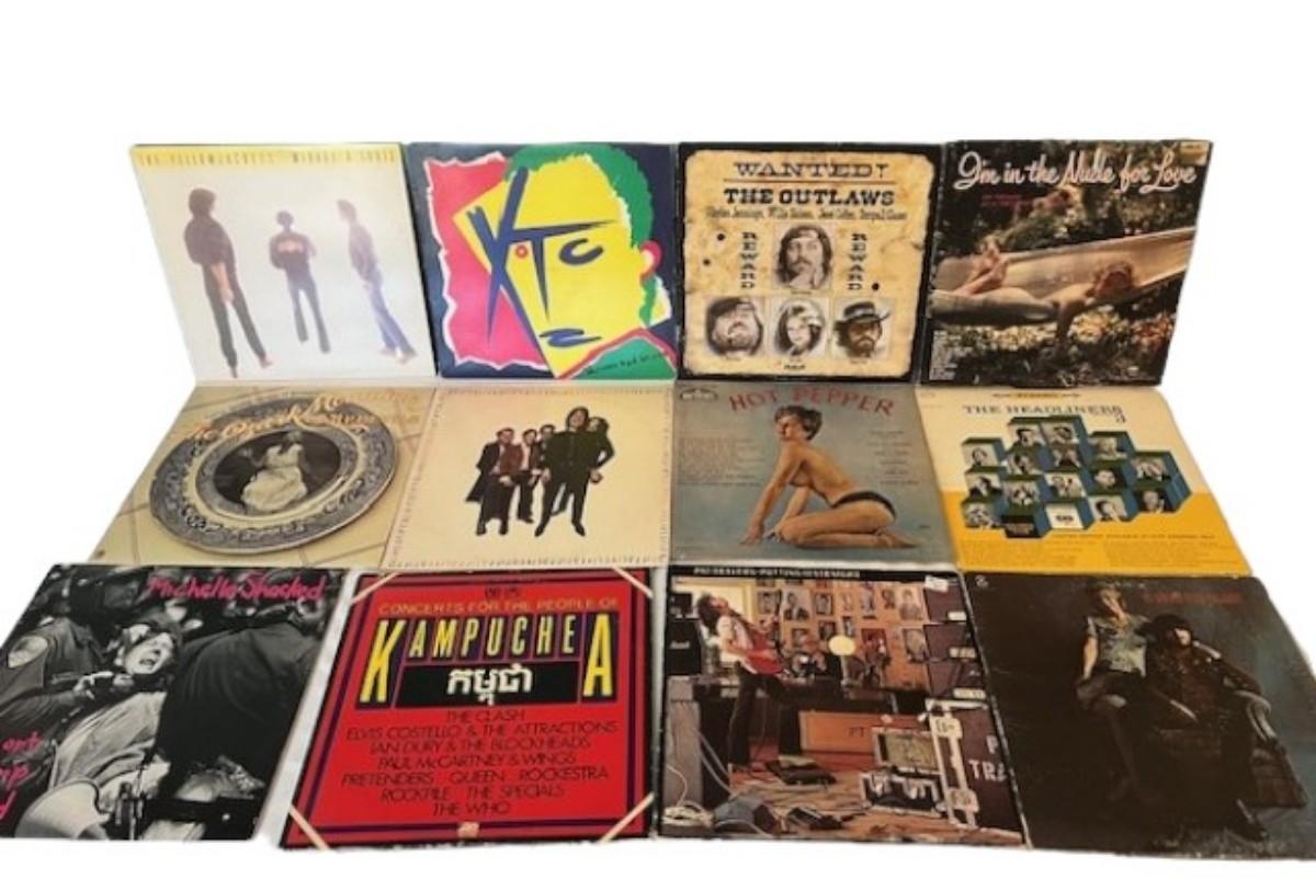 Includes The Outlaws, Ozark Mountain Daredevils, XTC, Charlie Daniels Band, The Partridge Family, Emmylou Harris, Richie Havens, and more. Total of 50+ pieces. Jackets and sleeves may have age related wear. This lot may or may not also include extra empty jackets, and/or records without jackets.