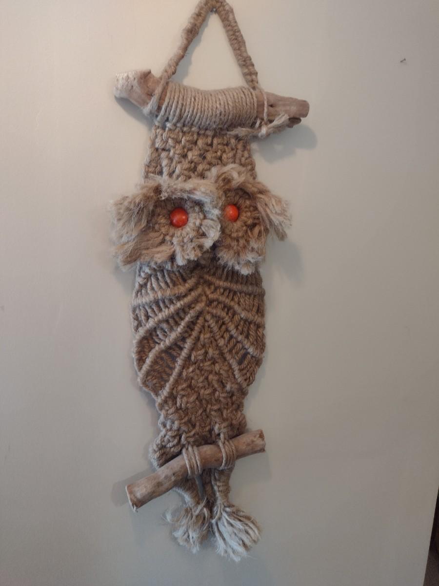 Large Vintage Macrame Owl Wall Hanging