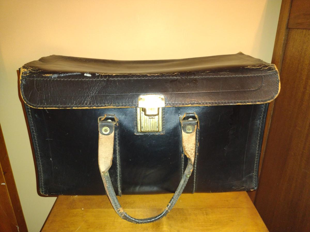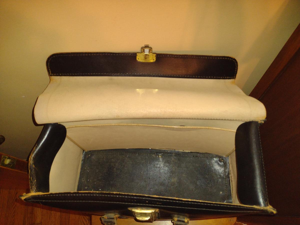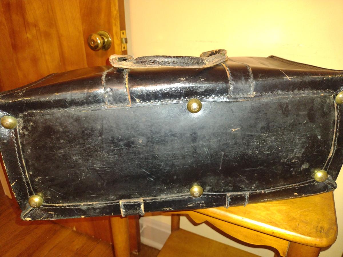 Large, Vintage Media Case- Approx 20" x 8" x 11 1/2" Tall. Appears to be leather. Please see all pictures- item has discoloration and wear.