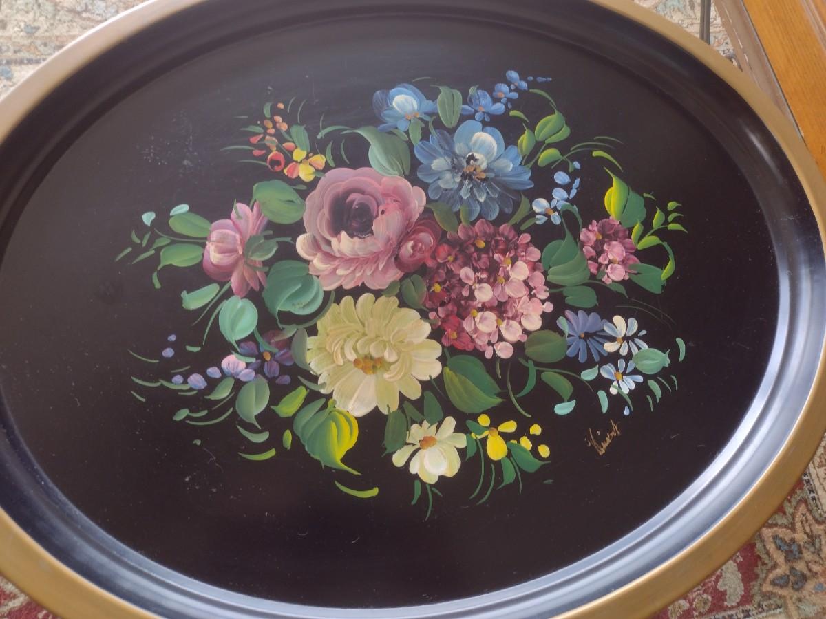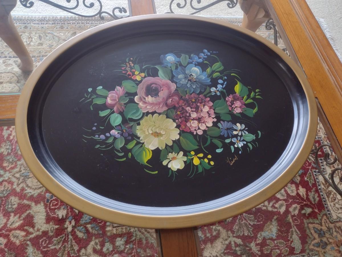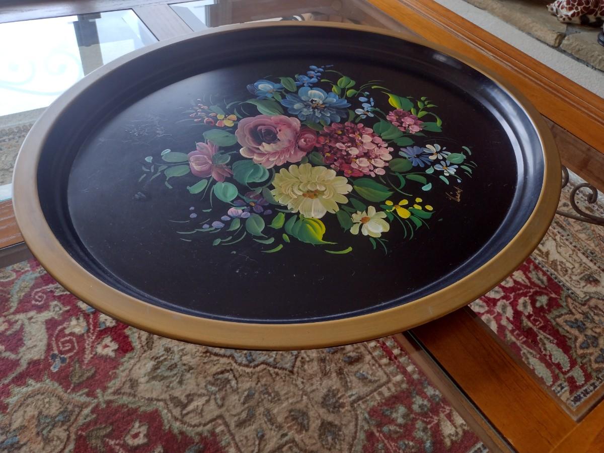 Large Vintage Nashco of NY Metal Hand Painted Serving Tray