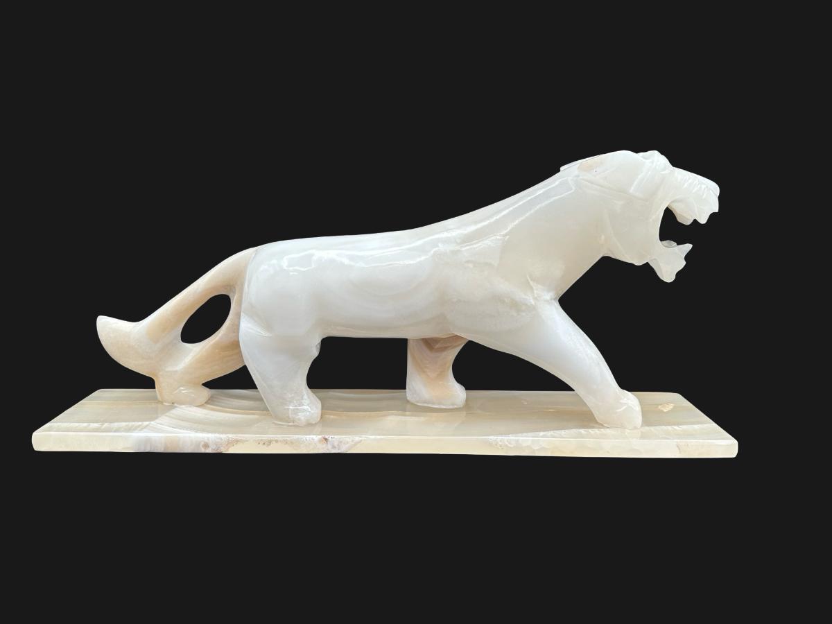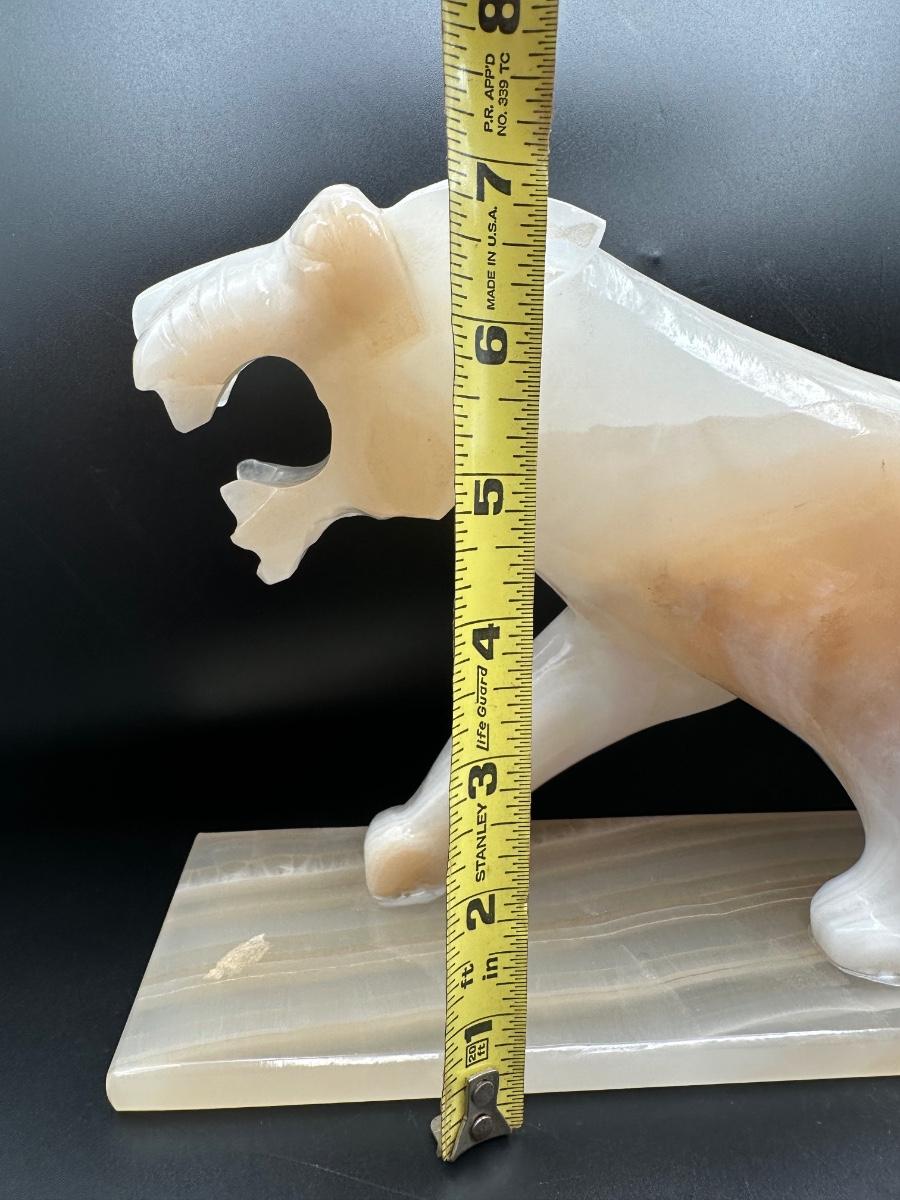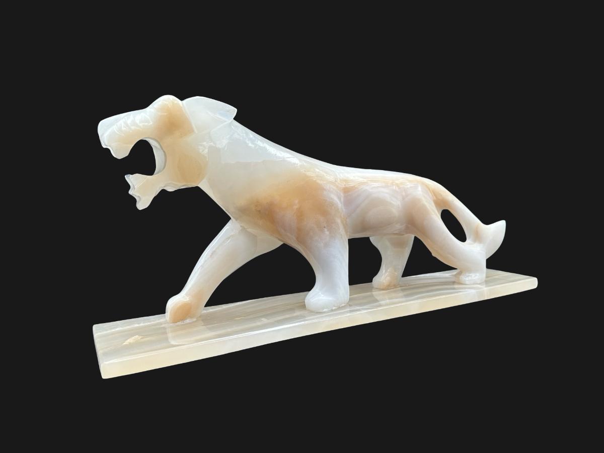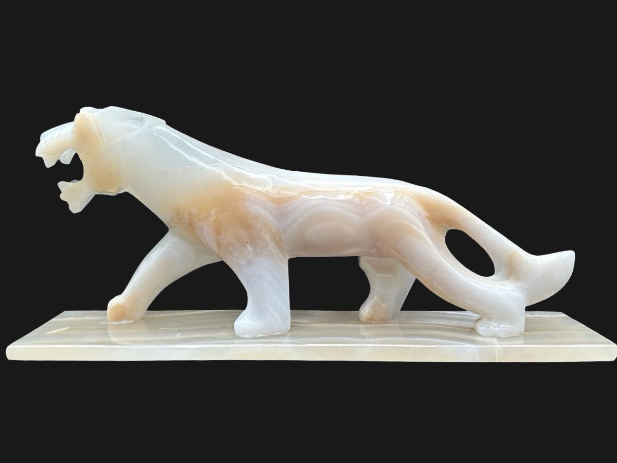 Large Vintage Onyx Stone Tiger Panther Statue on Base