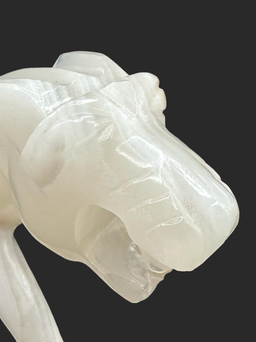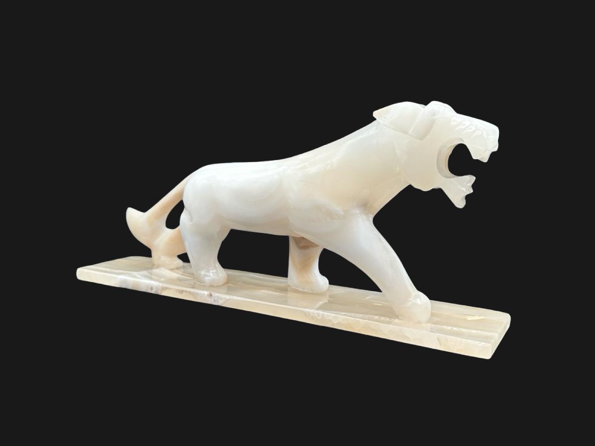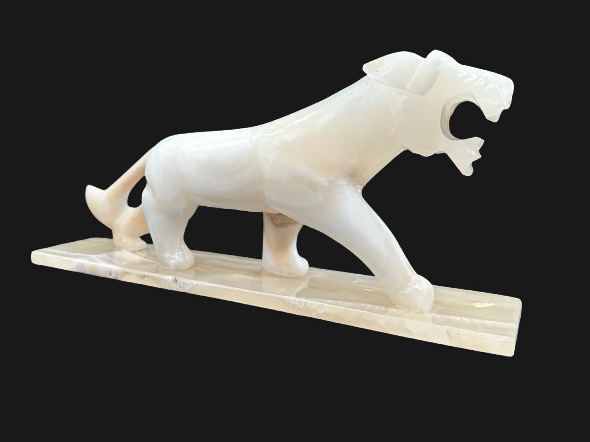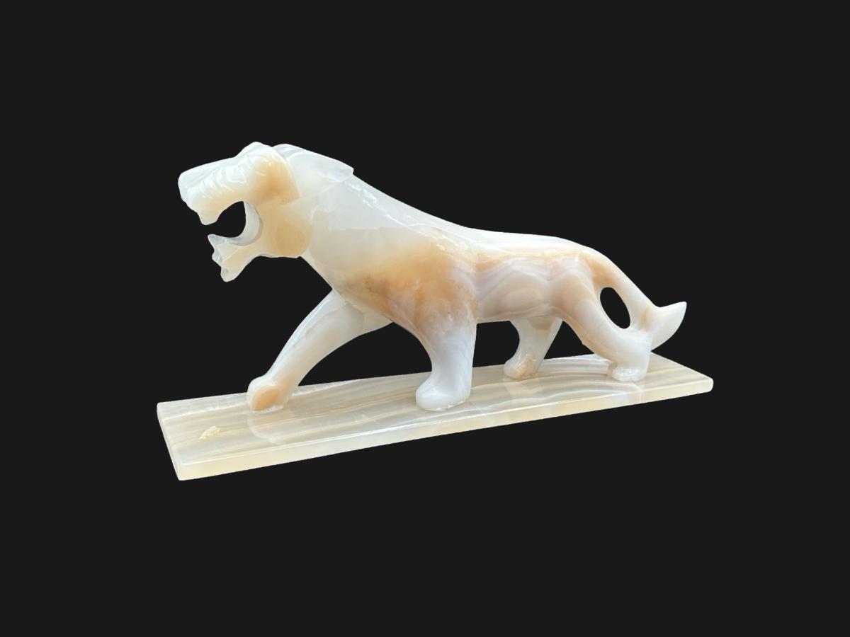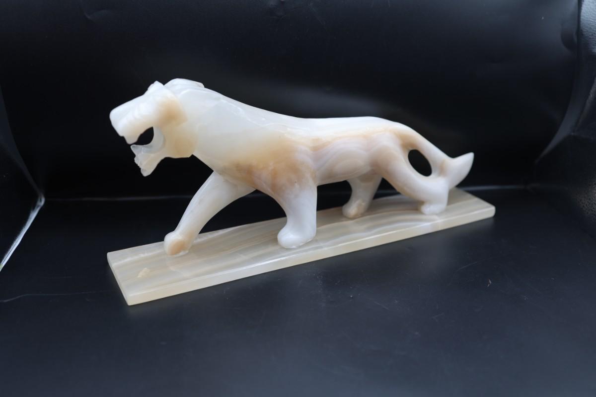 Large Vintage Onyx Stone Tiger Panther Statue on Base