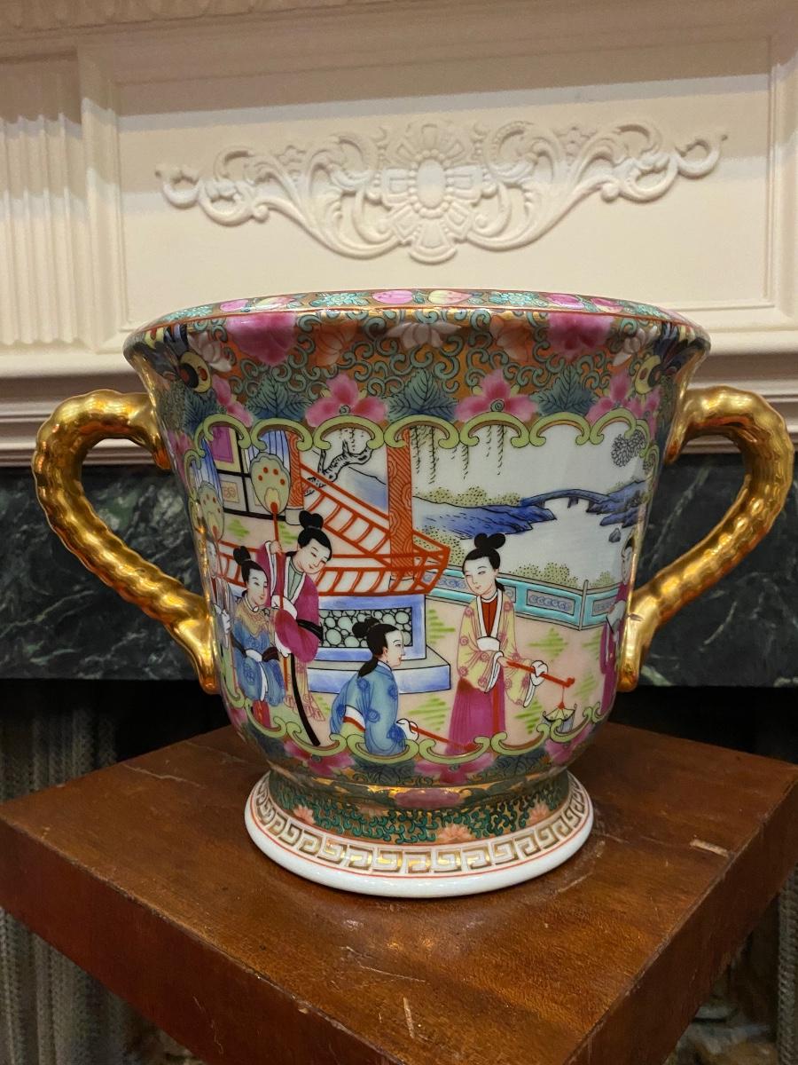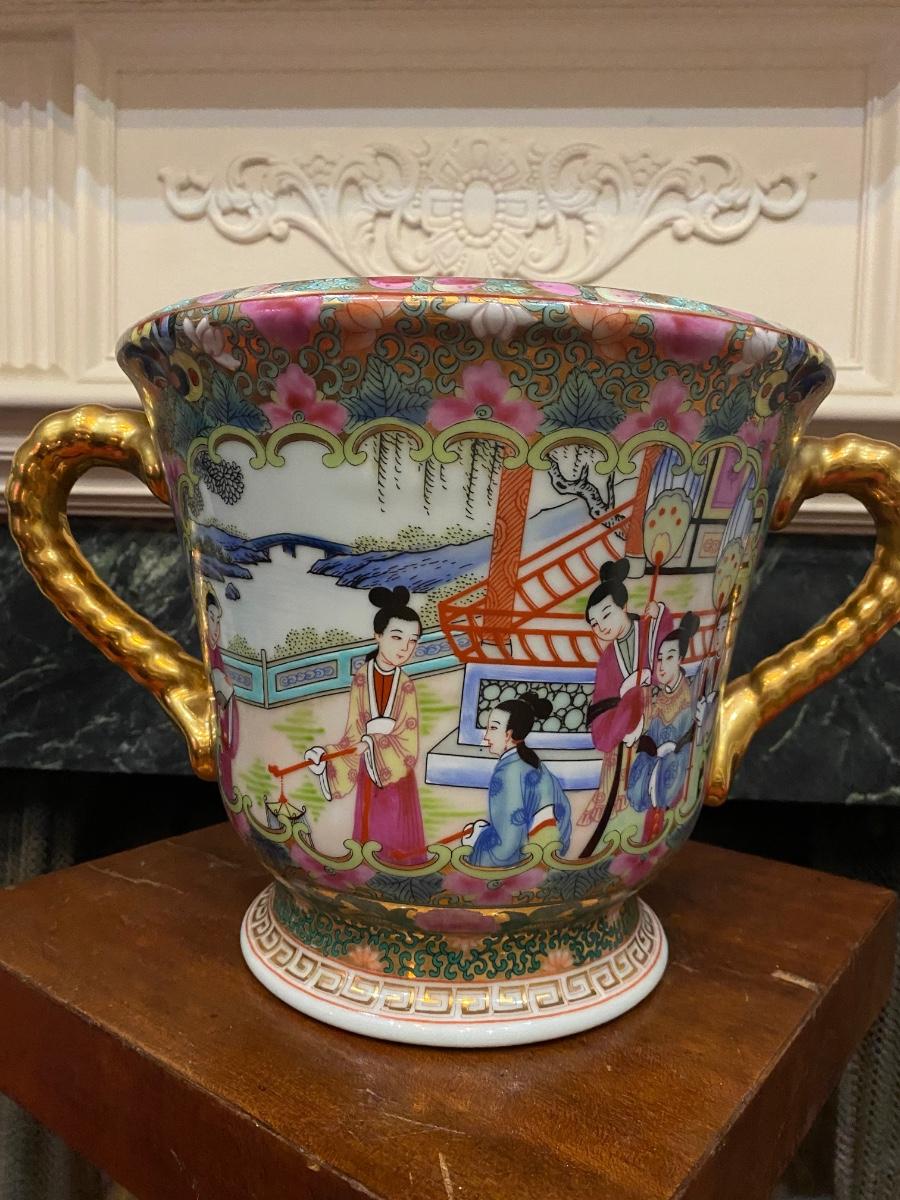 Large vintage oriental vase with handles. Approx 15W x 9-1/2H