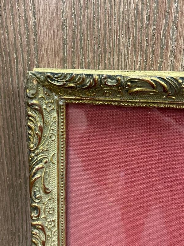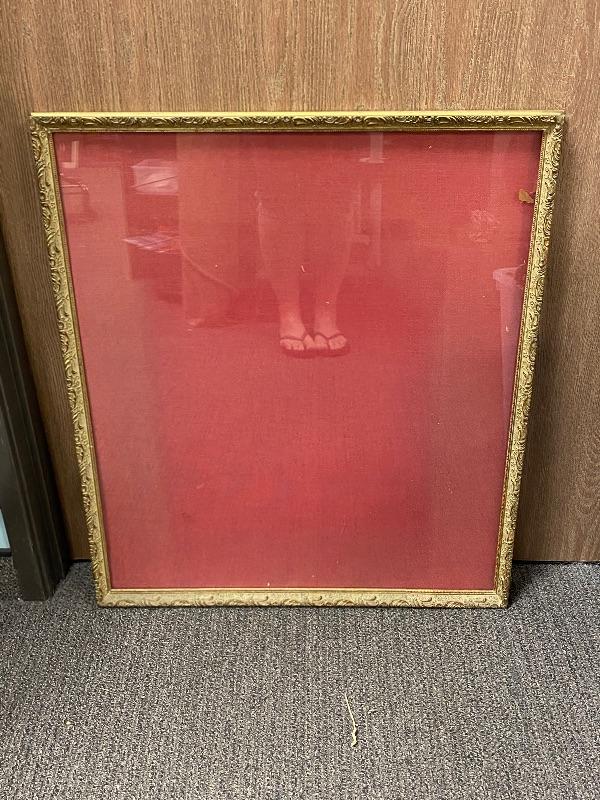 Vintage picture frame with glass. Roughly 24x29. Glass is loose, needs new brackets to hold in place. Delicate and slim with tons of details, Keep as is or freshin up with some paint.
