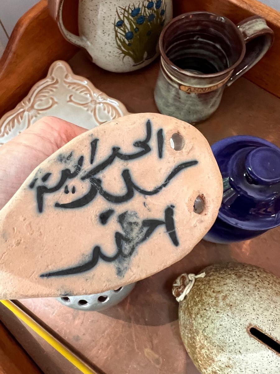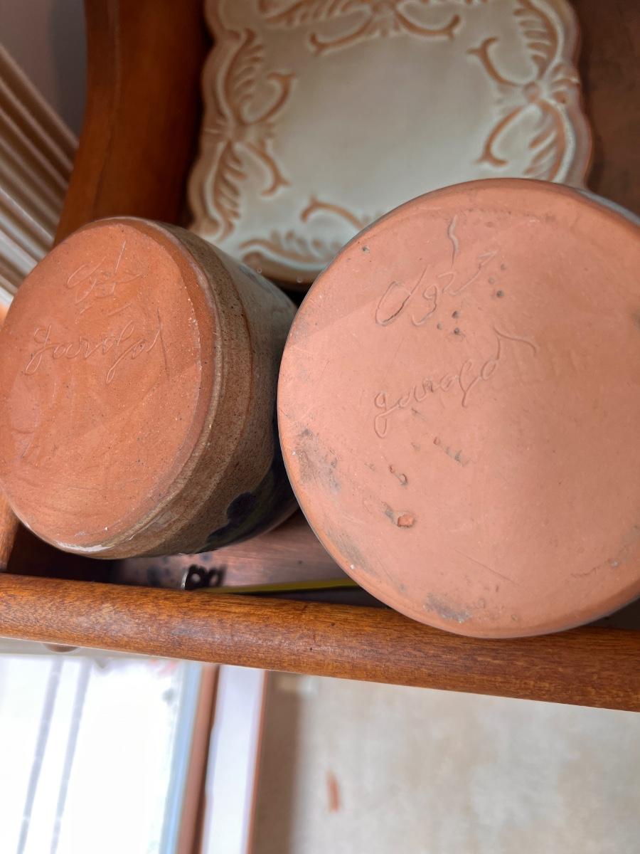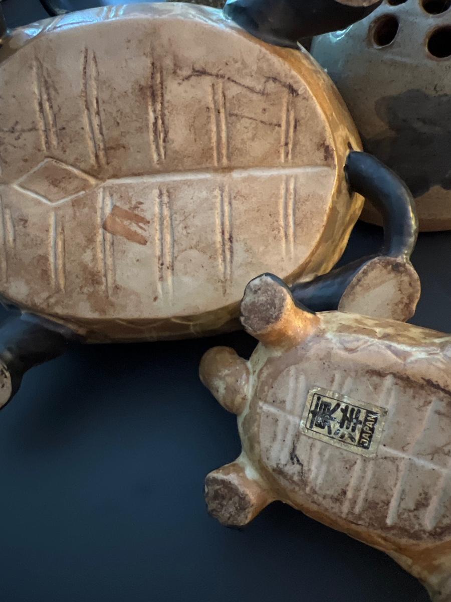 2 Garagos Egyptian pottery vases. Vintage Scottish Pottery Haggis Piggy Bank 6 inches. Arabic pottery camel hook, 2 Japanese pottery turtles and more.