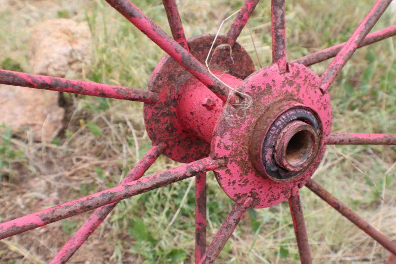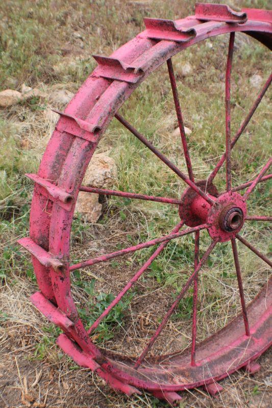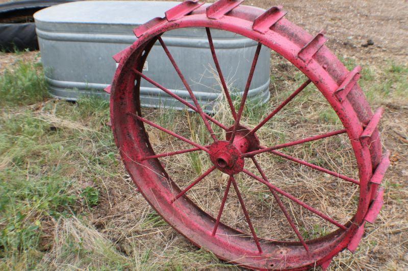 Lot #24: Large Vintage Red Chippy Paint Tractor Wheel (#4)