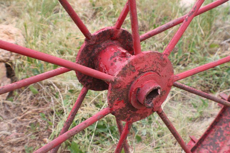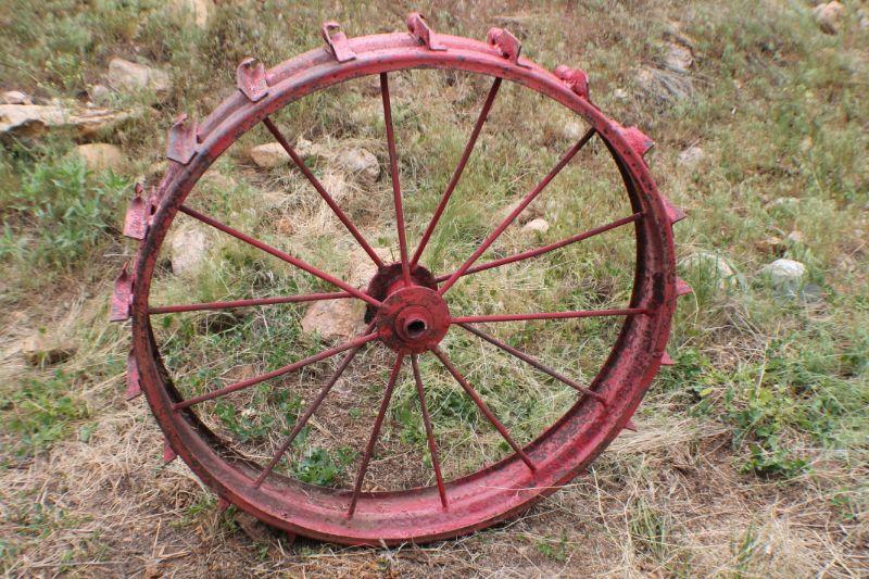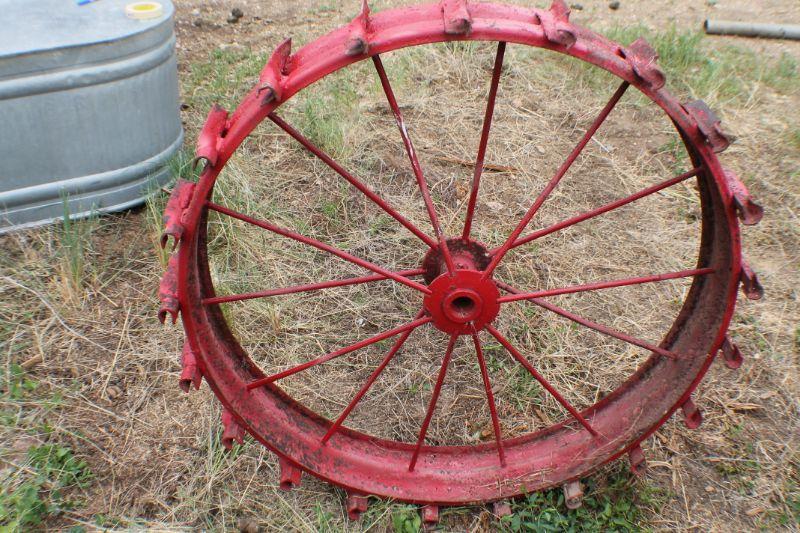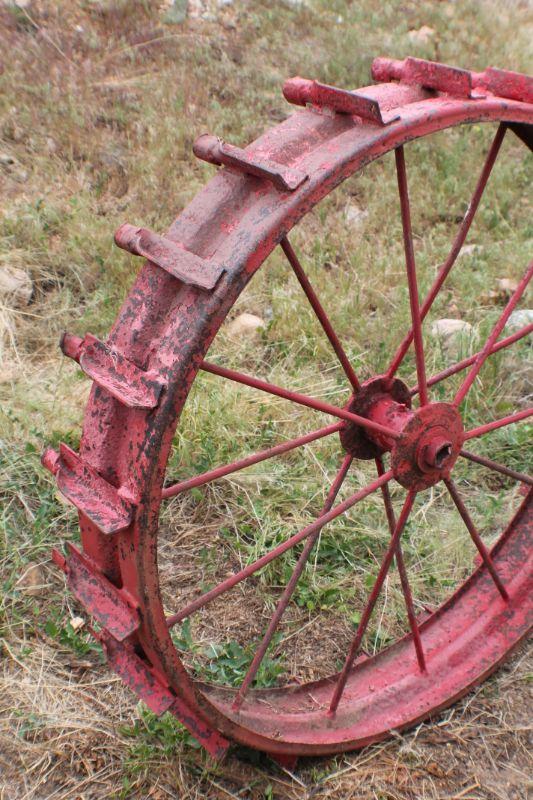 Lot #26: Large Vintage Red Chippy Paint Tractor Wheel (#6)