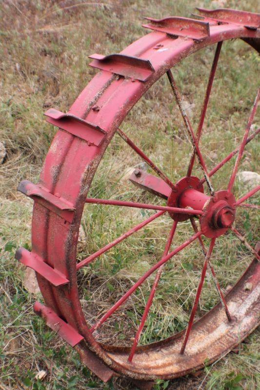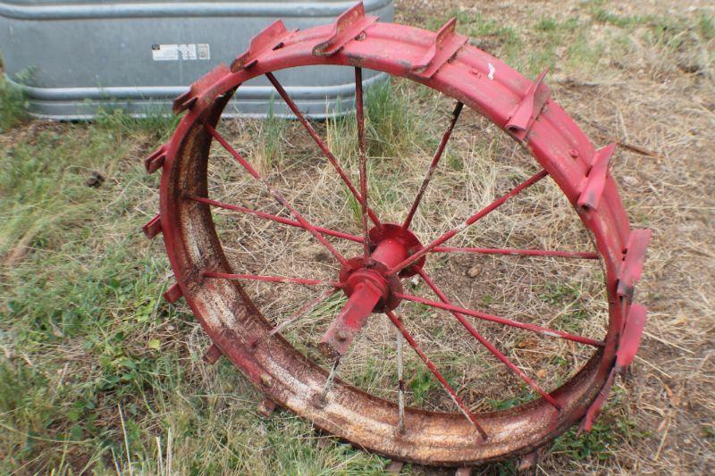 Lot #27: Large Vintage Red Chippy Paint Tractor Wheel (#7)