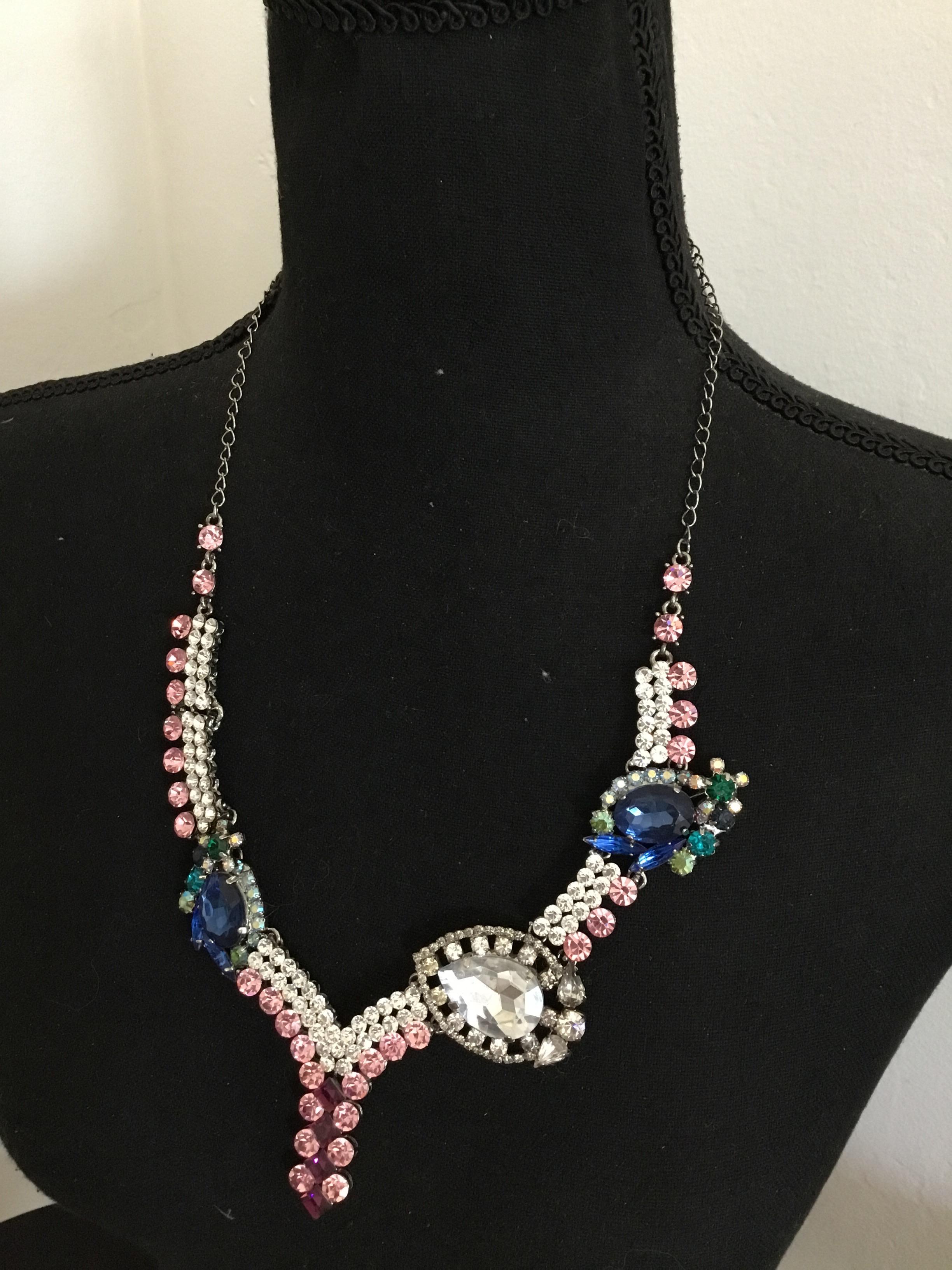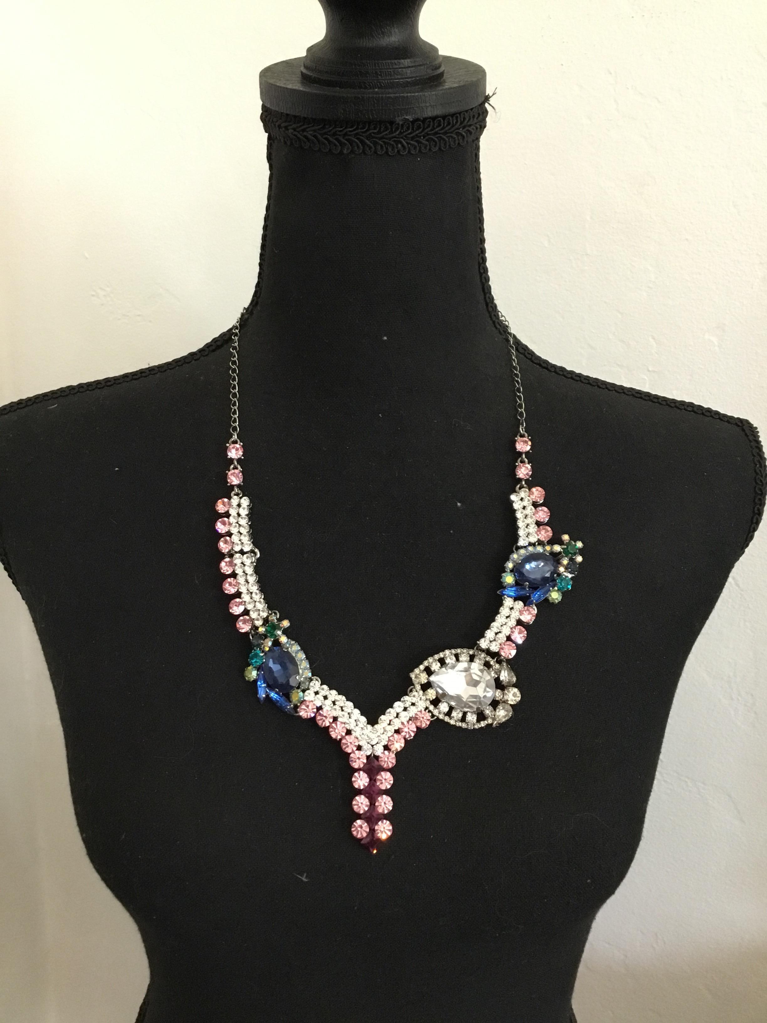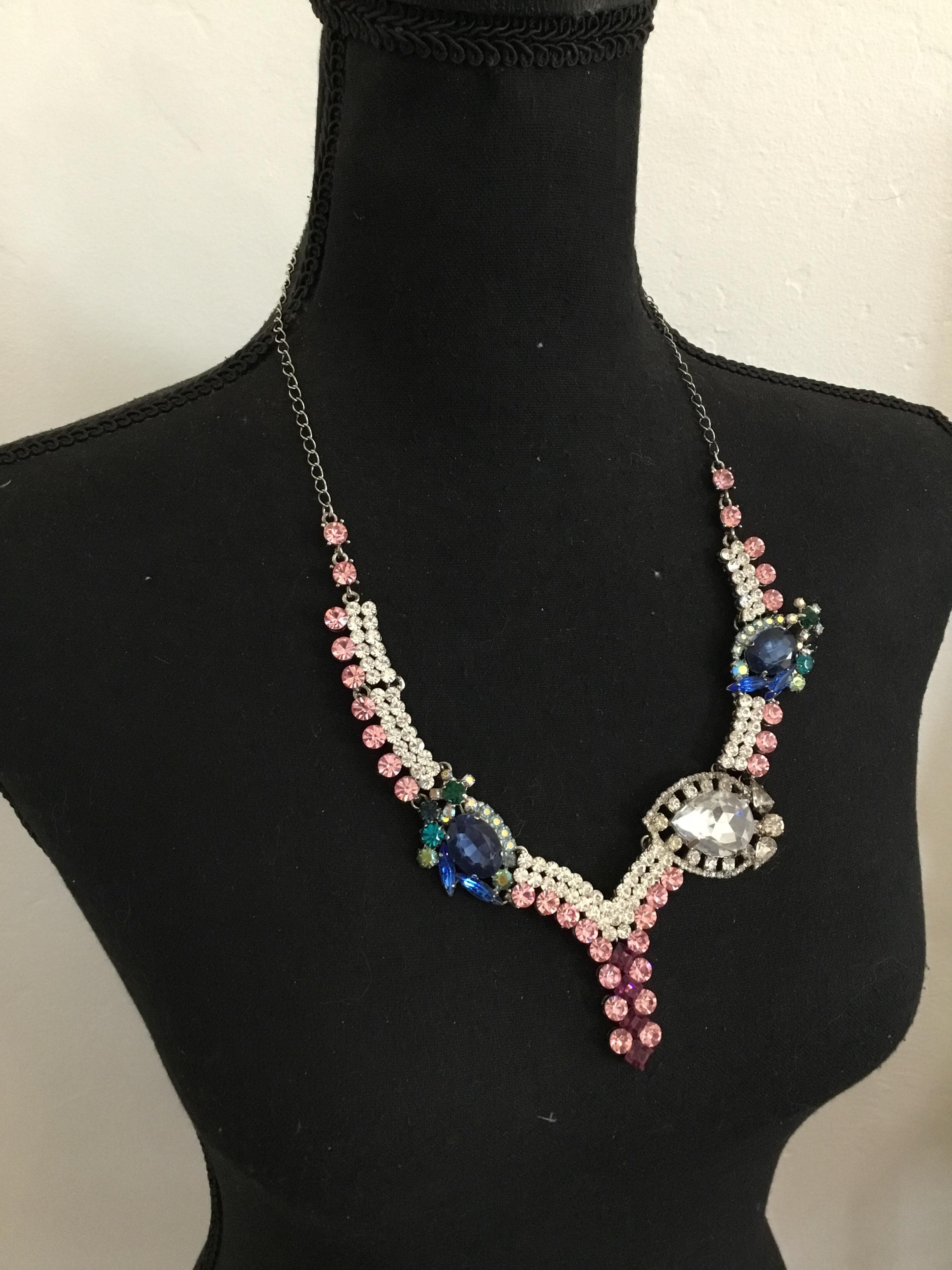 Large vintage, rhinestone statement, necklace, silver toned