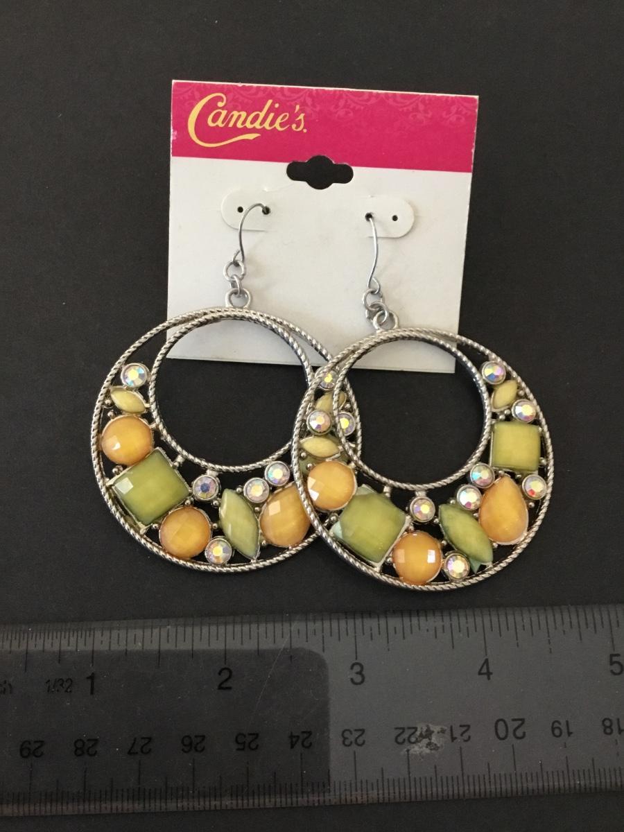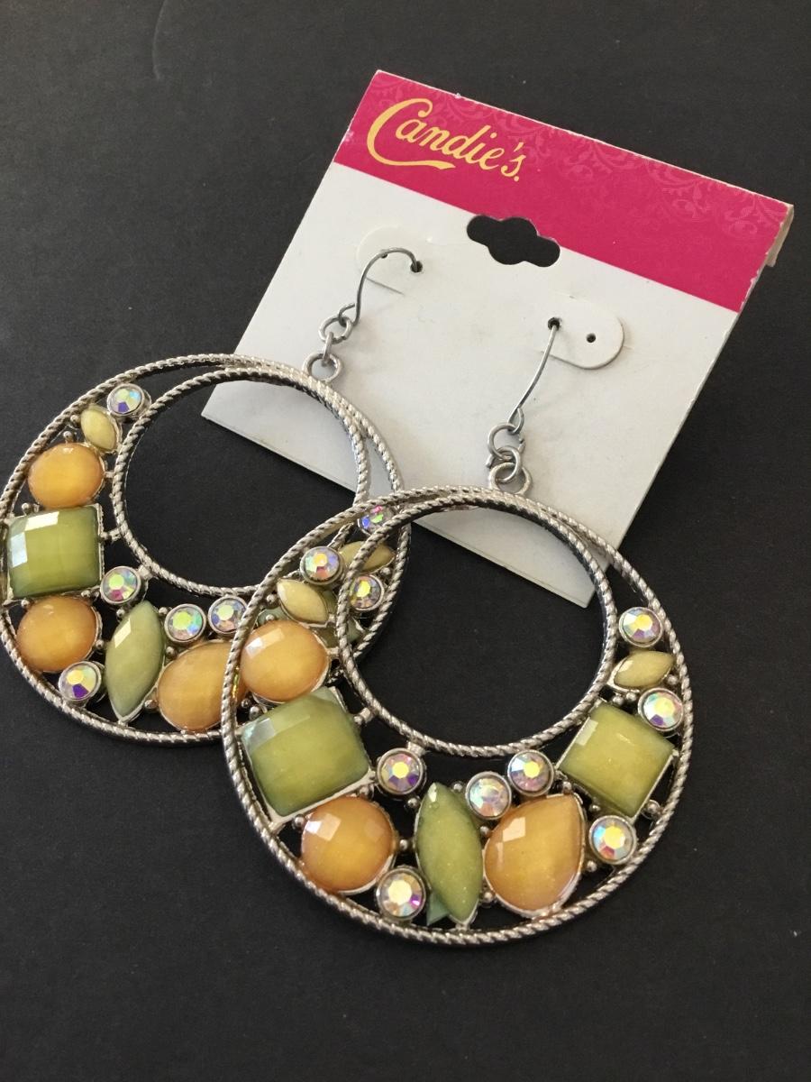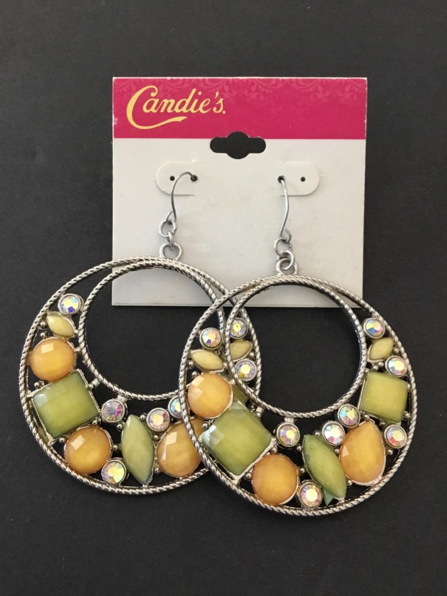 Large vintage, Silvertone, yellow and green, circular candies statement earrings