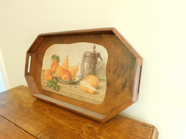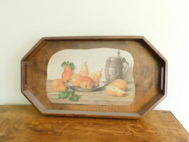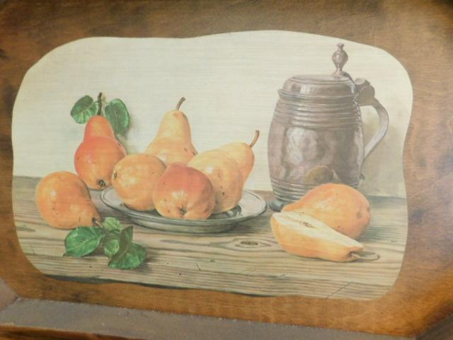 Large Vintage Solid Wood Serving Tray with Still Life Embellishment 24"x14"