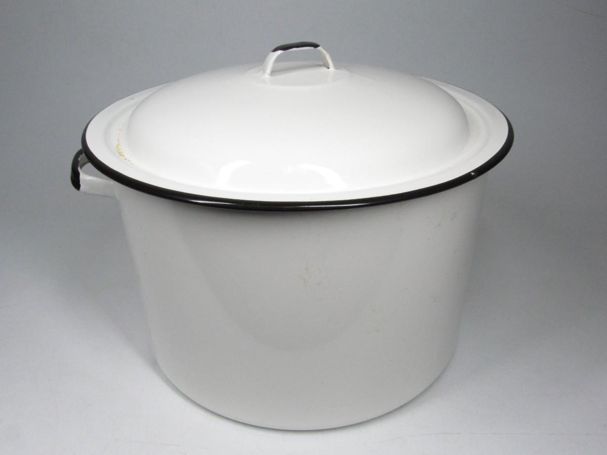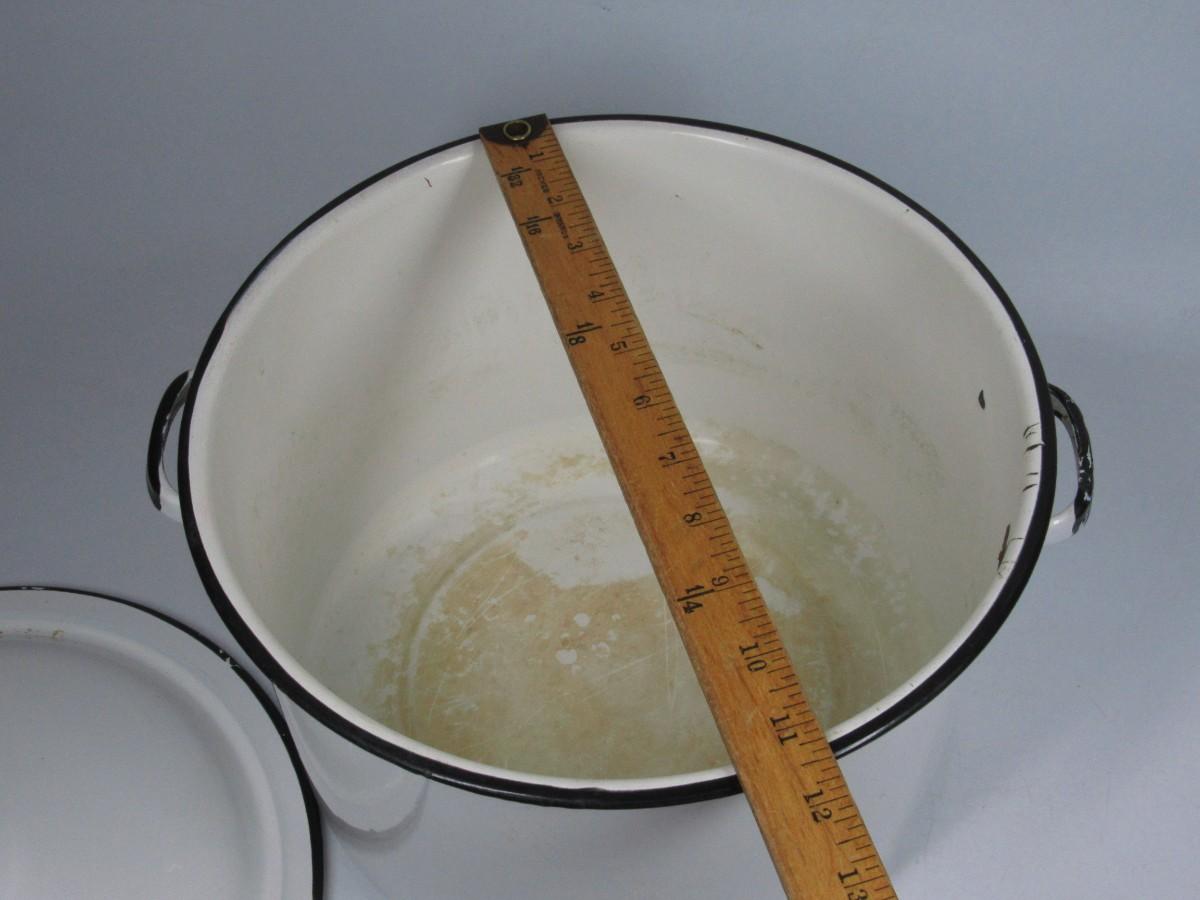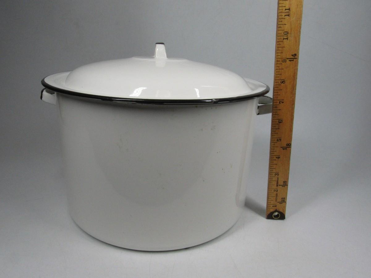 Large Vintage White Enamelware Stock Pot Dutch Oven with Lid