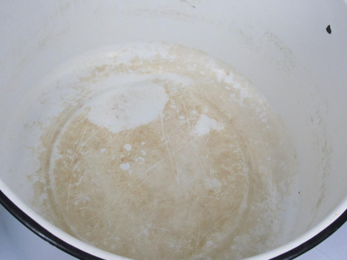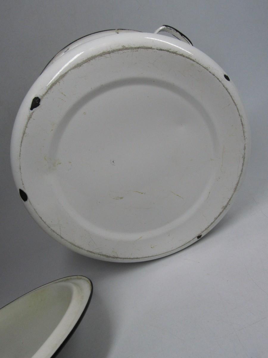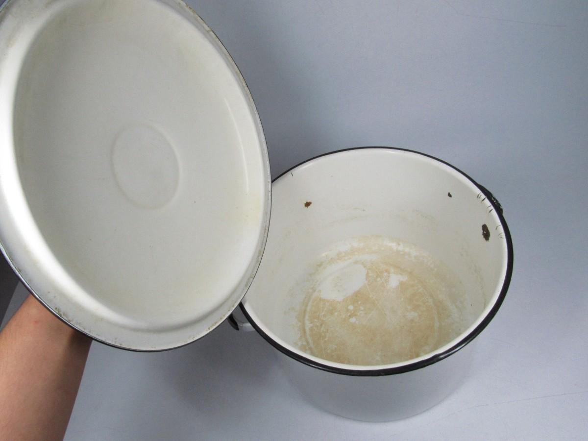 Large Vintage White Enamelware Stock Pot Dutch Oven with Lid